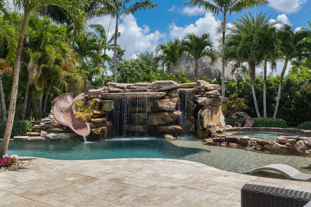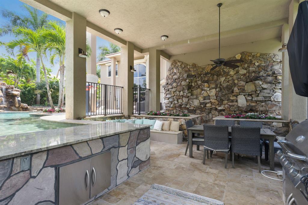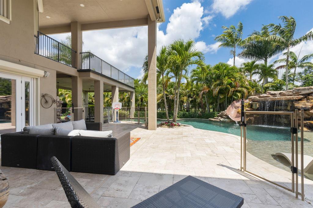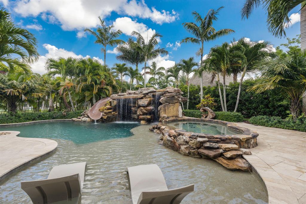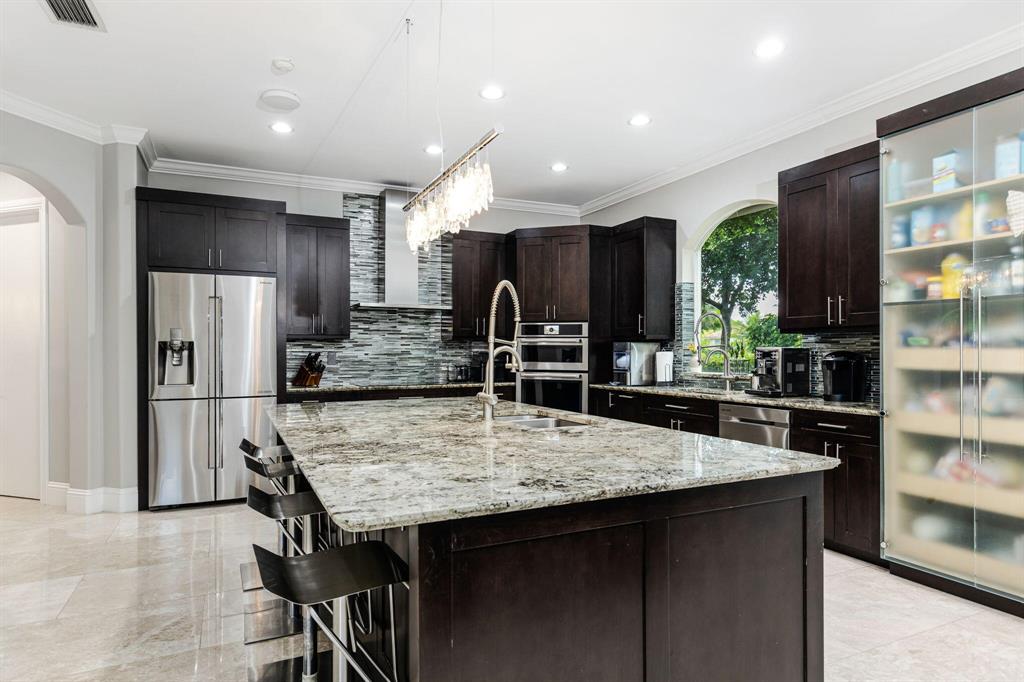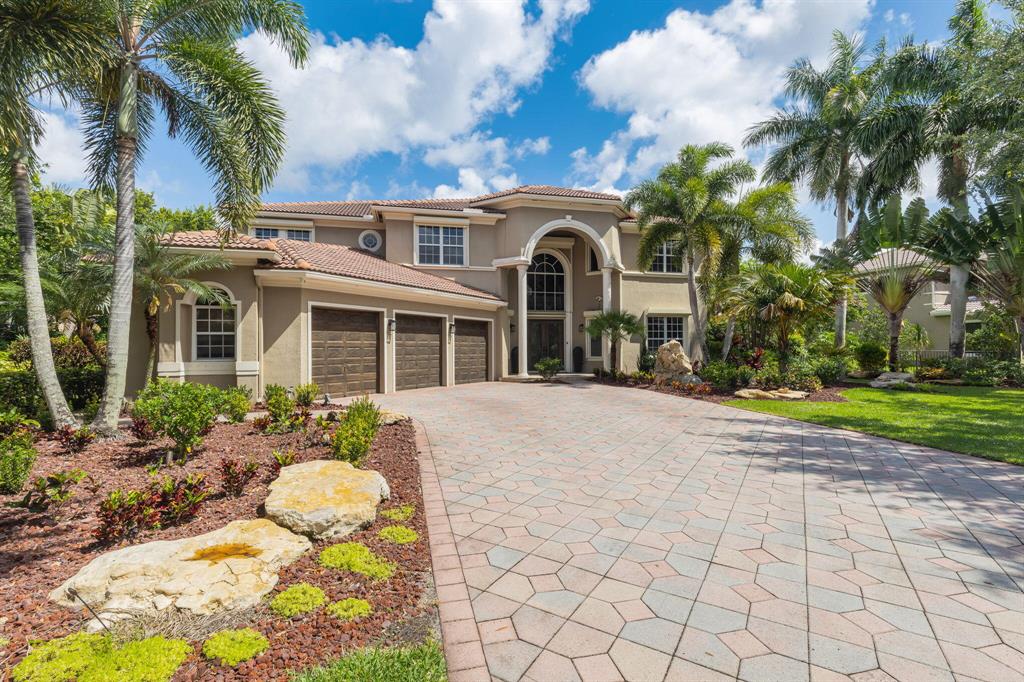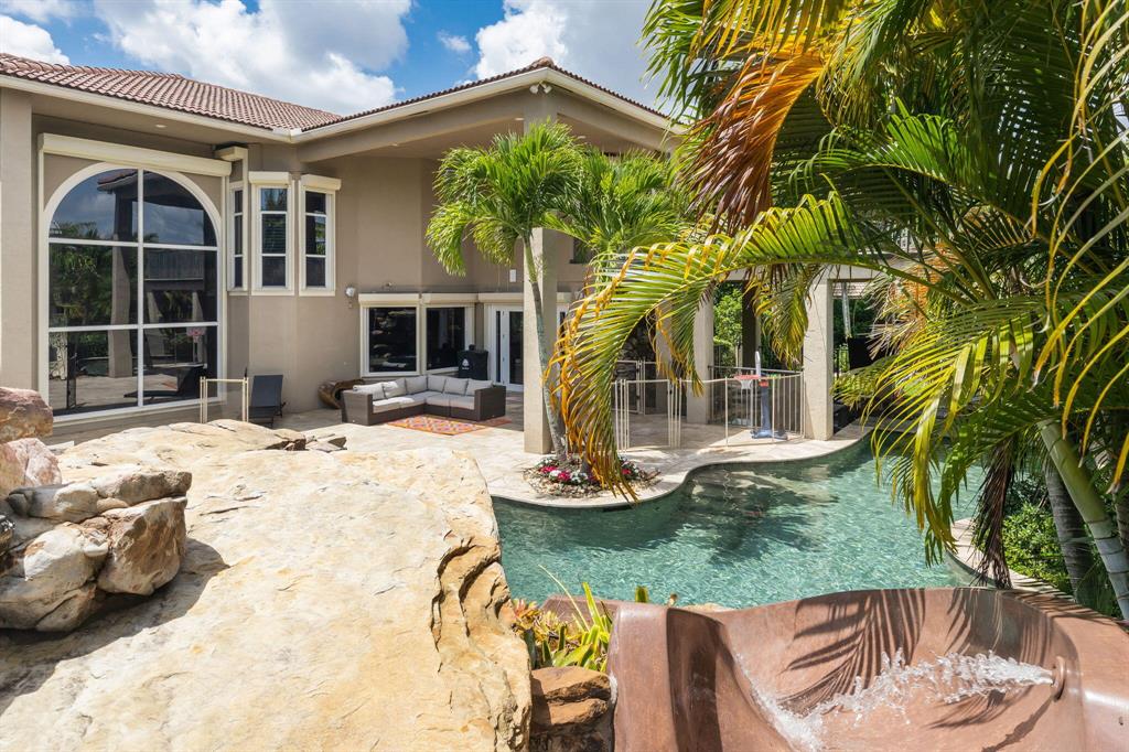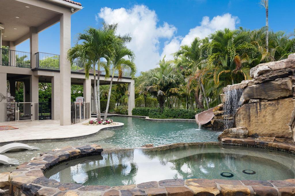 Immaculate waterfront estate on an oversized lot in the desirable guard gated community of Fox Ridge Estates. A large private fenced in backyard that's a true oasis with a resort style pool that was custom designed and built by Insane Pools (that was featured on their hit TV series show) that cost in upwards of $700k. Lush, upgraded landscaping with lighting throughout the property. An expansive covered outdoor kitchen where you will find everything needed with extras such as a pizza oven and a swim up bar. This estate features ample sized 6 bedrooms + office/den/playroom and 4 bathrooms & 1 half bath, guest suite with cabana bath located downstairs, gourmet kitchen with (2 sinks), butlers pantry, stainless steel appliances, double oven and a very functional island with built in beverage