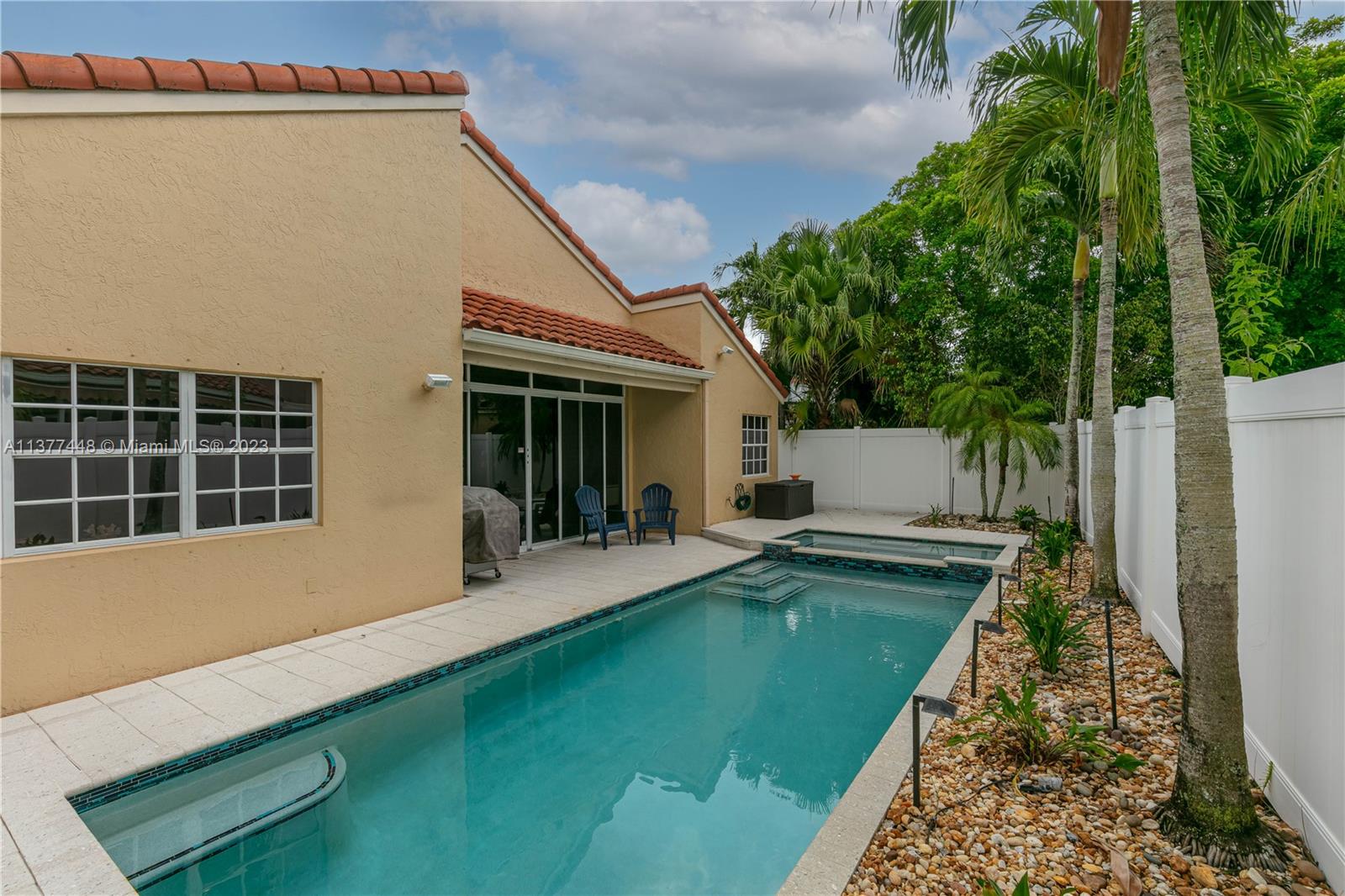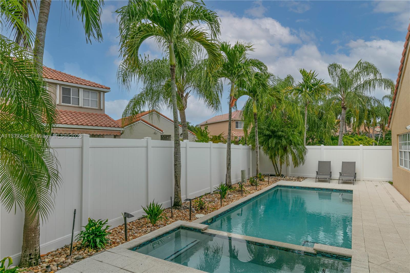 Beautiful 3/2.5 pool home situated on a cul-de-sac located in coveted community of North Lakes. This home features an updated modern kitchen with stainless steel appliances, updated bathrooms, freshly painted interior, neutral tiles throughout, high ceilings and plenty of natural light. You can relax in the tropical pool or enjoy your morning coffee in the covered patio area. *The ROOF is 2019*. The home also has hurricane shutters for your added protection. Washer and dryer and water heater are new. AC 2014. This home is move in ready and will not last!