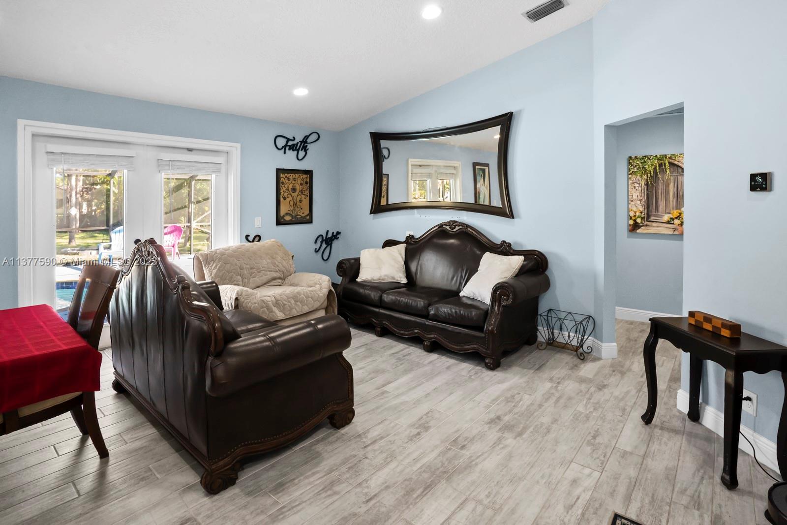 This beautiful home boasts a charming and spacious interior perfect for any family. The 3-bedroom, 2-bathroom property features a fully renovated kitchen with stainless steel appliances and ample counter space, ideal for those who love to cook and entertain. The bright and airy living room leads to a covered patio & screened in pool. The property sits on 1.15 acres allowing maximum privacy and space for family and entertaining. The master suite features a large walk-in closet and a master bathroom with dual vanities. Additional features include an attached 2-car garage that has been converted into additional living space, a separate 2-car garage & ample storage space. Conveniently located near shopping, dining, and entertainment, this property is a must-see!