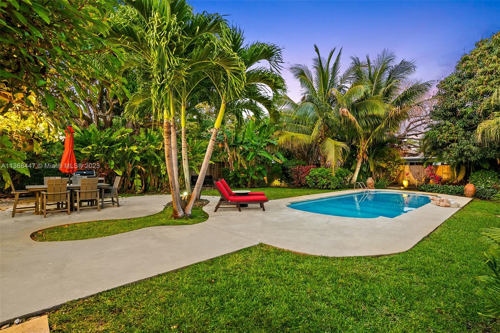 Welcome to your very own tropical oasis in Lake Ridge, Fort Lauderdale! This stunning mid-century modern single family home boasts 3 spacious bedrooms and 2 sleek bathrooms. As you step inside, you'll be greeted by an open-concept living space with an abundance of natural light, a perfect blend of mid-century style modern amenities including vaulted ceilings and tile flooring, accentuating the home's clean lines and retro charm. The living room seamlessly connects to the outdoor oasis, providing a seamless indoor-outdoor living experience. The backyard is like your own private retreat, surrounded by lush tropical landscaping that provides privacy and serenity. Don't miss out on this opportunity to own a piece of mid-century modern paradise in Fort Lauderdale!