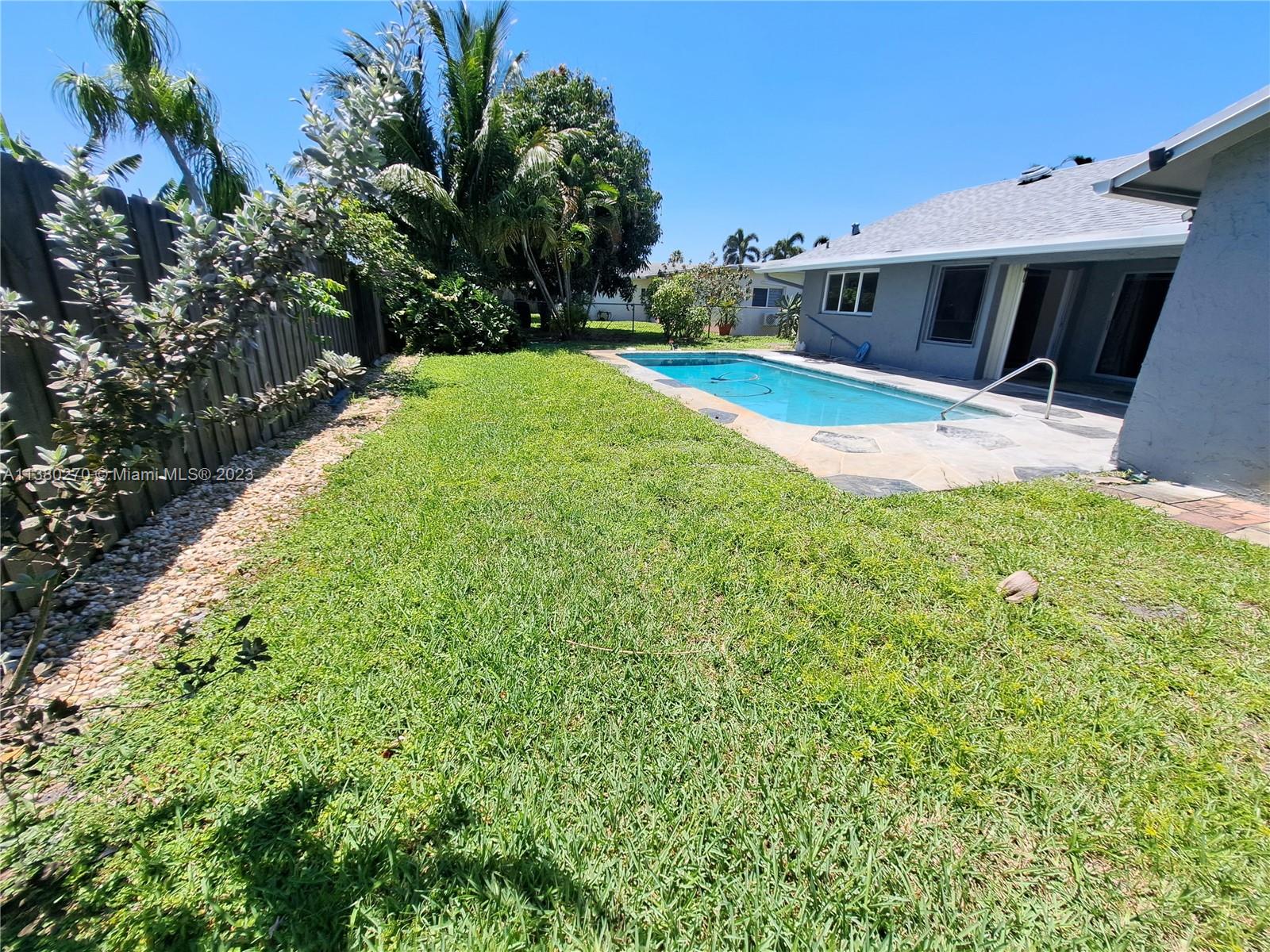 Charming 3 bed/ 2 bath with Pool and 1 car Garage. Large Lot (over 7,000 sqft). Beautifully remodeled kitchen and baths. Impact Windows (except the back doors, which have hurricane shutters). Roof from 2018. New A/C. The spacious, fenced backyard has a mango tree and coconut trees. There is space for a BOAT on the side yard. Lots of Storage, Lot of Light! Close to shopping and restaurants! Easy to Show!
