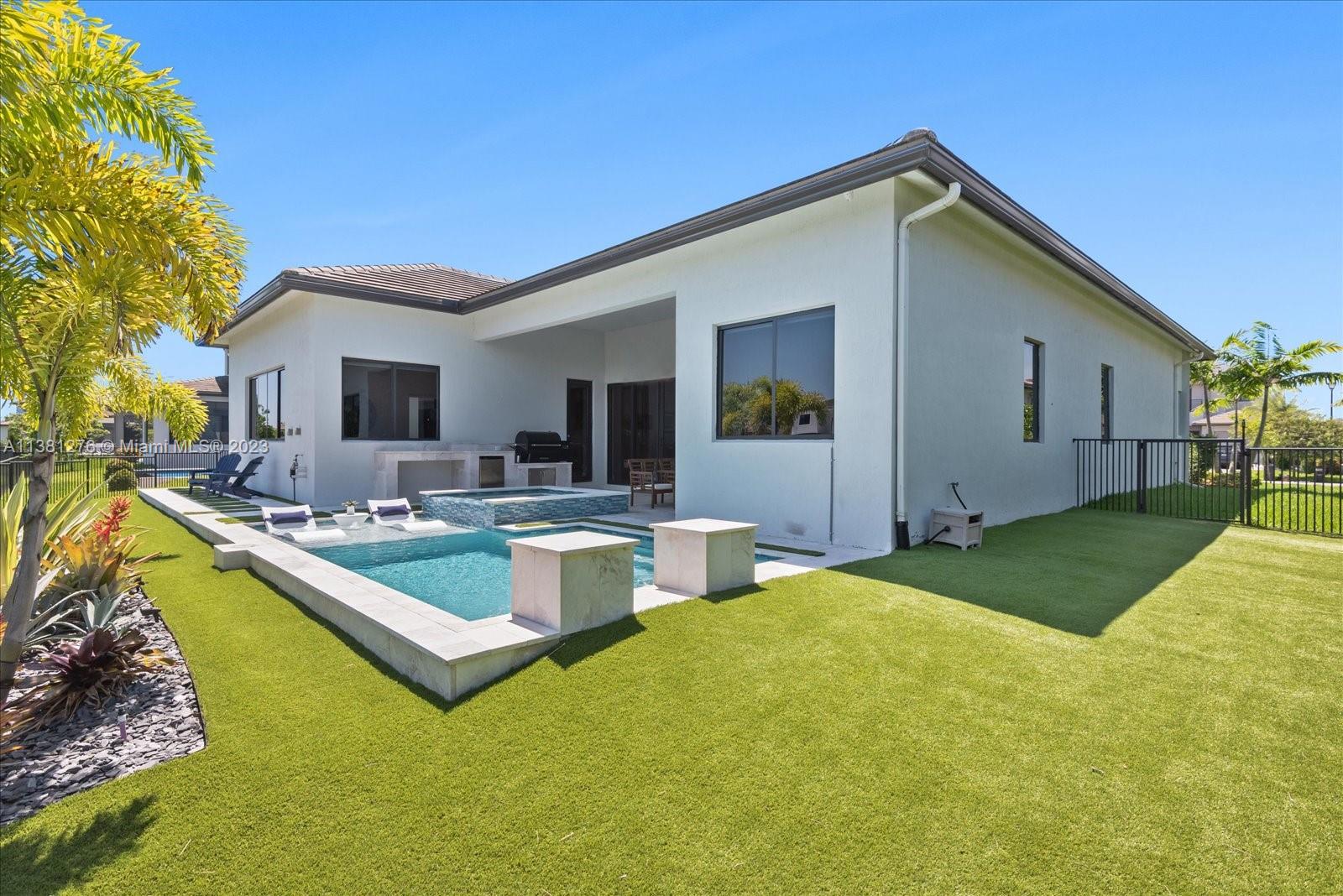 SHOWS LIKE A MODEL BUT FEELS LIKE A HOME. MAGNIFICENT CONTEMPORARY MASTERPIECE OPEN & AIRY TONS OF NATURAL LIGHT, THIS EXQUISITE ONE STORY ESTATE LOCATED ON ESTUARY DRIVE, BUILT BY CC HOMES FEATURES HIGHER END FINISHES & ELEGANT TOUCHES. CUSTOM CLOSET SYSTEMS, SPLIT FLOOR PLAN OFFERS THE UTMOST PRIVACY. THE NEWLY INSTALLED RESORT STYLE OUTDOOR TROPICAL OASIS FEATURING HEATED SALT SYSTEM POOL W/ BUILT IN FOUNTAINS, SPA, BAJA SHELF, OUTDOOR KITCHEN, LANDSCAPED WITH LUXURIOUS TURF. PRIMARY BEDROOM WITH DUAL WALK-IN CLOSETS & LOVELY SITTING AREA PERFECT FOR AN INTIMATE MEDIA CENTER OR PELOTON. CHEFS KITCHEN FEATURES NATURAL GAS, TOP OF THE LINE APPLIANCES, SLEEK MODERN CABINETRY & OVERSIZED ISLAND. ACCESS TO CASCATA & MIRALAGO AMENITIES MAKE YOU FEEL LIKE YOU LIVE AT A 5 STAR RESORT.
