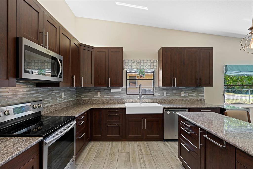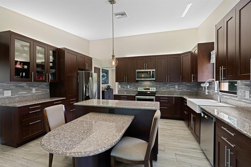 VERY IMPRESSIVE 5 BEDROOM, 2-STORY HOME with 2,704 SqFt in East Boca only minutes to Beach! GORGEOUS Eat-in Kitchen delights with Granite Counters, Center Island, 42' Custom Wood Cabinets & S/S Appliances! New Porcelain Tile Floors Throughout | Stunning Open Floor Plan | Soaring Vaulted Ceilings | Accent Lighting | Triple Glass Door Opens Living Room to Covered Patio! Magnificent Wood Burning Fireplace | Impressive Master Bedroom | Walk-In Closet | Ensuite with Dual Sink Vanity & Large Glass Shower | Beautiful Updated Bathrooms | Huge Fenced Backyard ready for a Pool | Office/Shed with AC & Electric | 2-Car GA | Circular Driveway | No HOA Fee | A+ Rated Schools | NEW AC 2022 | NEW WH 2021 | Roof 2010 | Hurricane Shutters Windows/Doors. Must See!