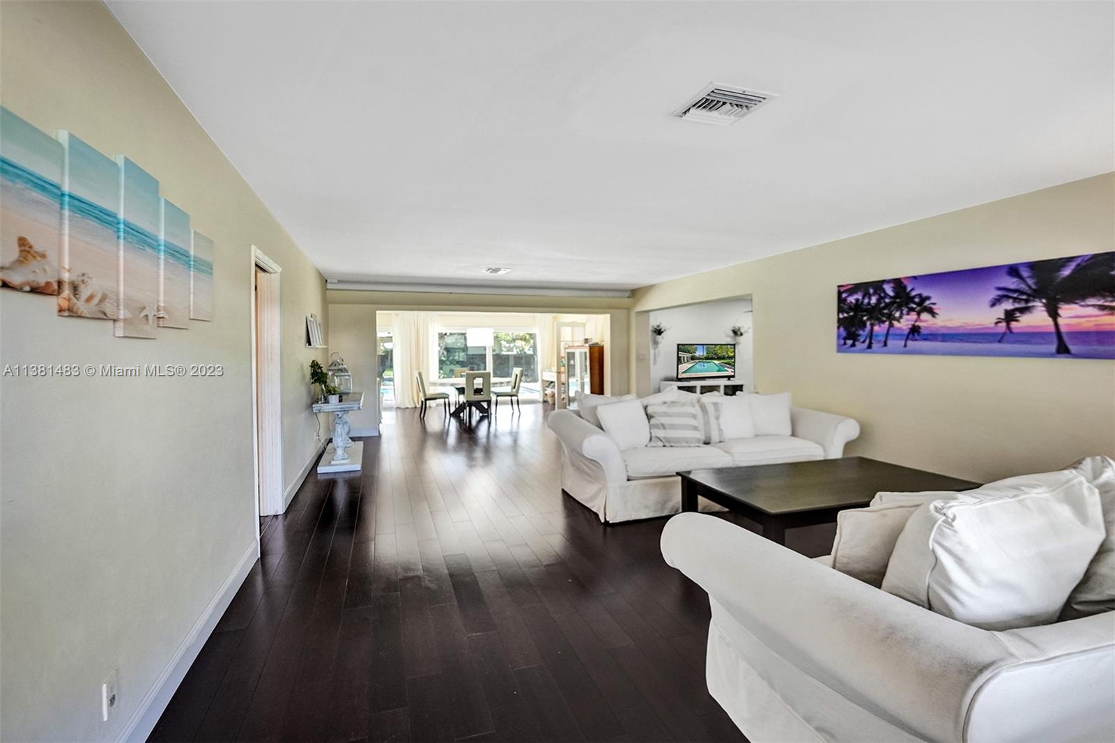 Spacious 3/2 home w/office or 4th bedroom presents spacious floor plan over 2700 total sf*All living areas open to beautiful views of huge pool & expansive paver patio, fire pit area, tree house w/ swings & plenty of green space*3 oversized impact glass doors across entire rear of home provide plenty of light & lead to 16,481 sf yard*Interior offers eat in kitchen, TV rm, living rm, family rm, office/bdrm, & laundry & storage rm w/generous pantry*Engineered wood flooring creates a seamless flow thru-out*2 car garage, tankless water heater, reverse osmosis water system, & roll down storm shutters*Situated on .38 acre oversized corner lot w/fenced yard & lots of trees provide plenty of shade & mangoes*Walk to Fig Tree & Heritage Park*Easy access to highways, shopping, schools & entertainment