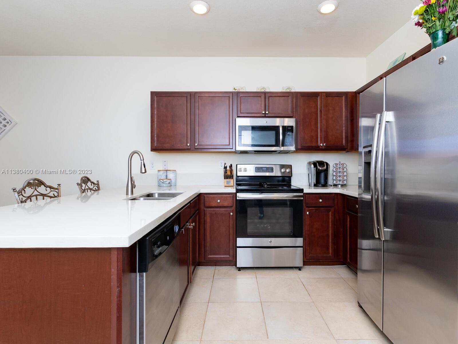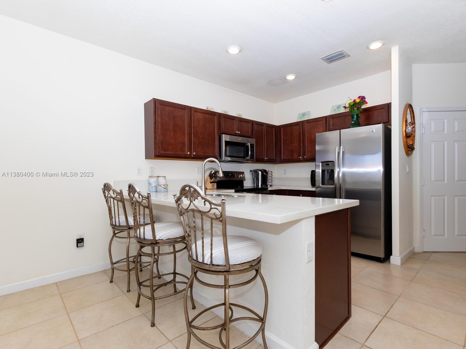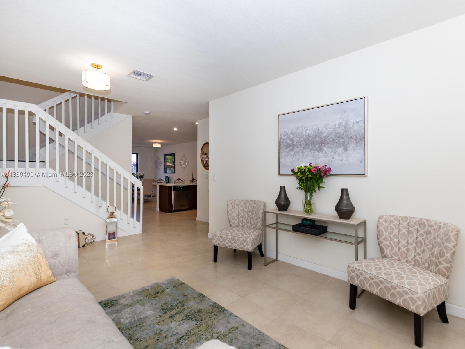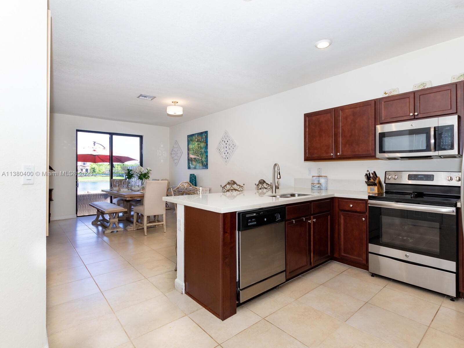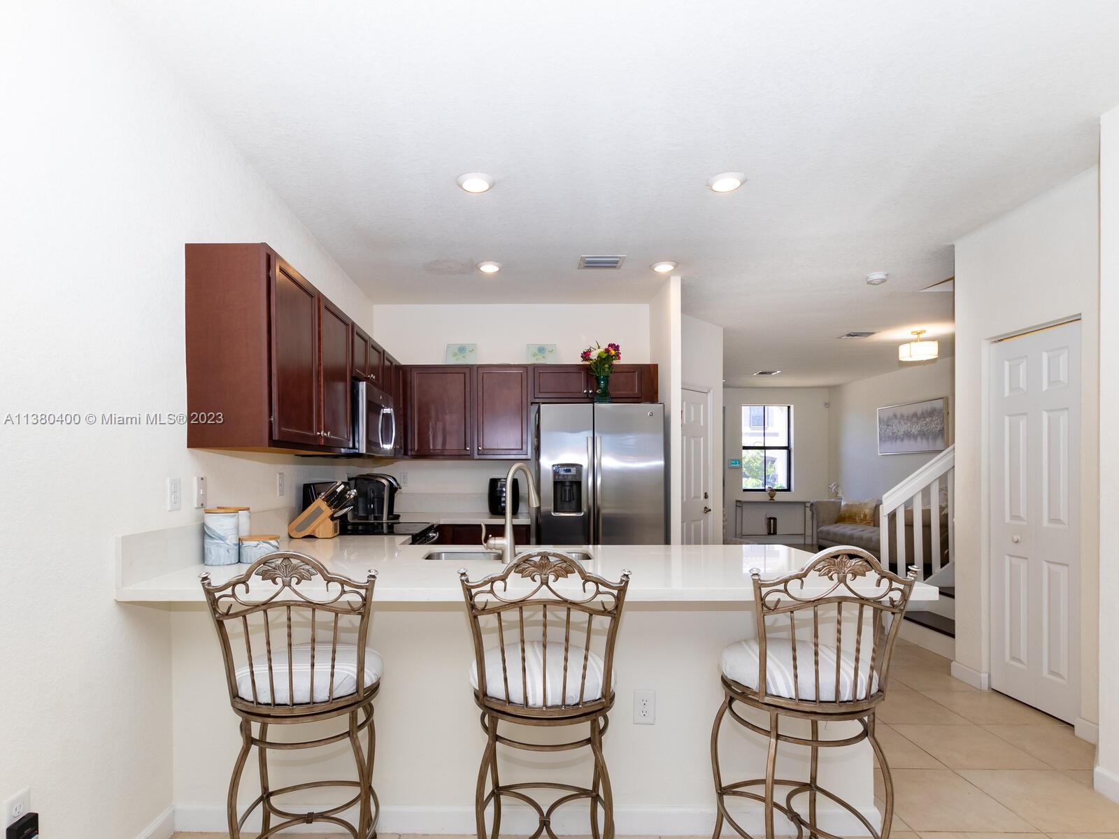 This immaculate lakefront townhome is a true gem located in the boutique community of Turquesa by Lennar. Its inviting atmosphere is evident from the moment you step through the door. Home features tile flooring, wood laminate flooring in staircase, spacious kitchen, refrigerator, dishwasher, disposal, microwave, range, tankless water heater, smart technology thermostat, accordion shutters, security cameras, large closets, washer & dryer conveniently located on second floor, ceiling storage in garage and paved backyard. Tranquil master suite boasts an ensuite bathroom with separate shower. Outdoor area is perfect for morning coffee and enjoying stunning views of the peaceful lake. This rare opportunity to own a lakefront home in a boutique community won’t last long!