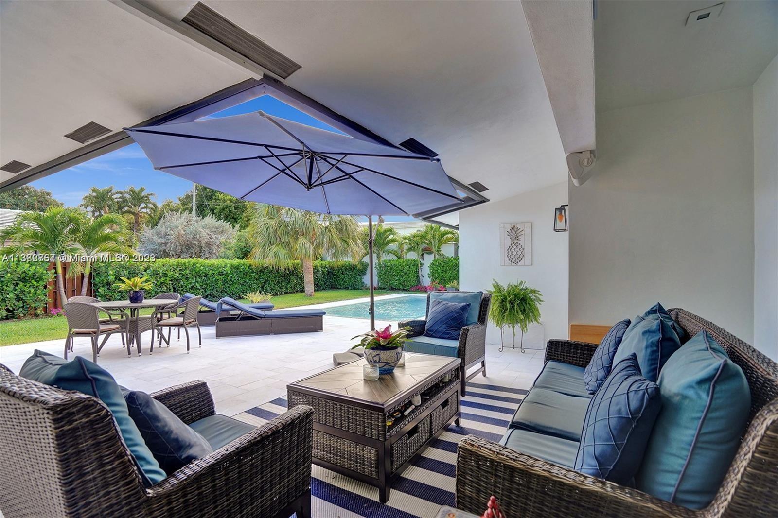 Too many upgrades to mention. This house has been completely remodeled from top to bottom. Located off the intracoastal just east of US-1, minutes from the beach, in Bal Harbour. Reconstructed in 2018 this 3 bed 2.5 bath house features a brand new outdoor oasis that includes new pool, patio & entertainment. Inside has an open floor plan throughout, all new high end impact windows & doors, european 48 inch wood tile flooring, designer kitchen with waterfall quartz countertops and built in wine cooler. In addition, all new appliances, electric, A/C, plumbing, ipe cladding, metal roof & security cameras throughout. The bathrooms boast Sahara Marble with top of the line vanities & LED mirrors. No expenses spared. Shops & restaurants minutes away. Easy to show. Furniture may convey.