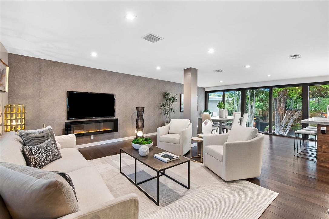 Location & Lifestyle define this one-of-a-kind residence in E. Ft Lauderdale's highly desirable guard house entry subdivision of Sunrise Intracoastal. Walking distance to restaurants, shopping, Publix, Starbucks, fitness centers, spas, the water taxi, parks & Ft Lauderdale beach. This enormous corner lot is completely enclosed creating a private compound for privacy. Inspired by Mid-Century design with extensive modern updates & finishes (completely renovated in 2016) that compliment today's lifestyle. The bright open flr plan is enhance by large floor to ceiling windows. The primary suite boast a large custom walk-in closet & lavish bathrm. Completely updated in 2016-2017, heated pool, mosquito misting system, tesla charging system & more. Interior Sq Ft from IMAPP & Lot Size from Owner