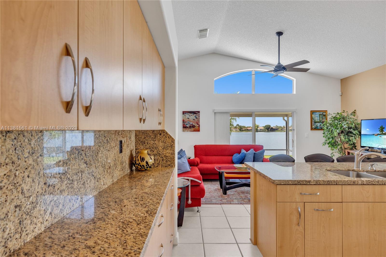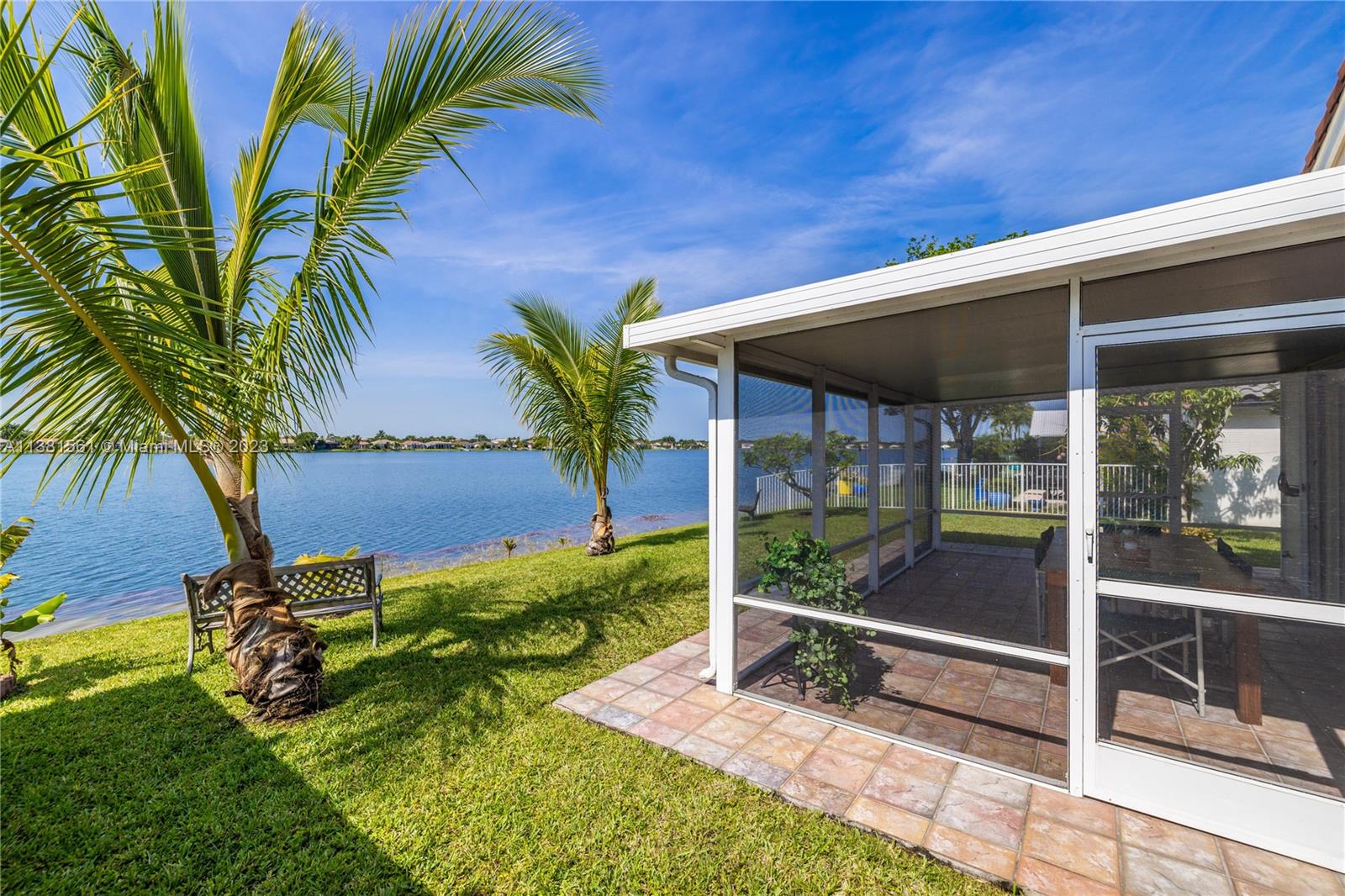 Expansive Waterfront. Impeccably maintained! Highly sought-after Keystone Lake. Nestled on an interior lot, this Copenhagen offers a spacious, open floor plan with vaulted ceiling. Renovated kitchen with large island and extended cabinets offer tons of storage and a great space to gather. Bathrooms have been tastefully renovated with unique special touches to maximize use of space. Sliding glass door off family room lead onto a screened and covered lanai. The sunsets are gorgeous here! Additional features included: laundry room, breakfast nook with bay window, accordion shutters, top rated schools, manned- gated community. Low HOA covers cable and internet. Rarely available. Do not miss this opportunity to make this one yours.