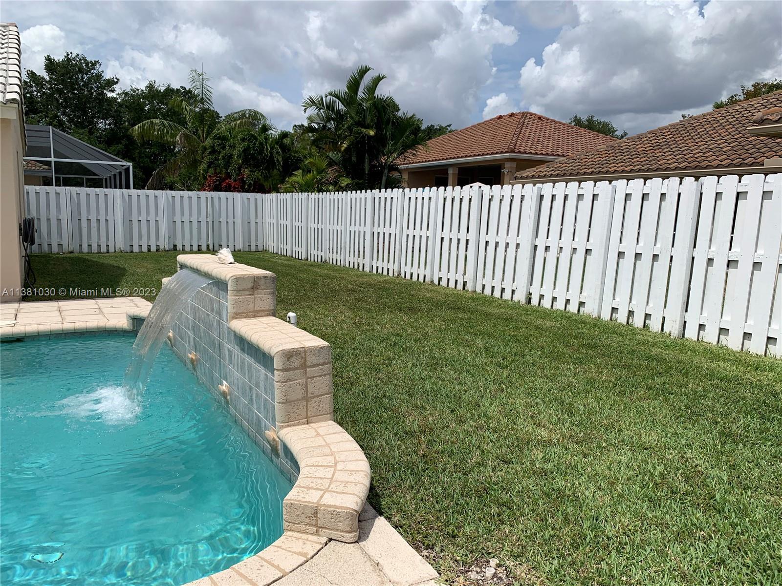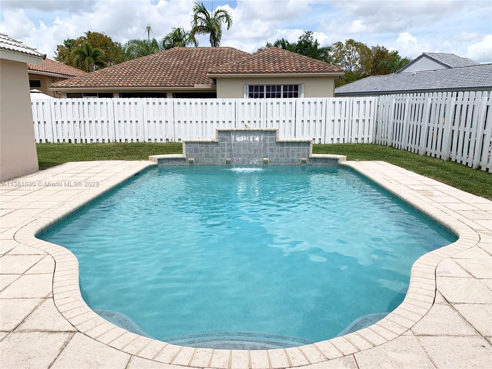 4/2.5 split floor plan with oversized family room. New roof April 2023. new AC August 2022, new water heater and new pool pump. Renovated kitchen. Wood laminate flooring. Beautiful huge custom pool with waterfall and non-slip deck. Fenced in yard accommodates both a swing set and a trampoline with plenty of room for dogs to run and play. Wonderful quiet family neighborhood, A+ rated public schools, and a 10 minute walk to The Lakes Shopping Plaza which includes Publix, Starbucks, McDonalds, CVS and more. A 2 minute walk to community pool, playground, picnic/party area and soccer field. Extremely well maintained 24-hour gated/guarded community. Original owner and owner agent. Tenant occupied through end of July.