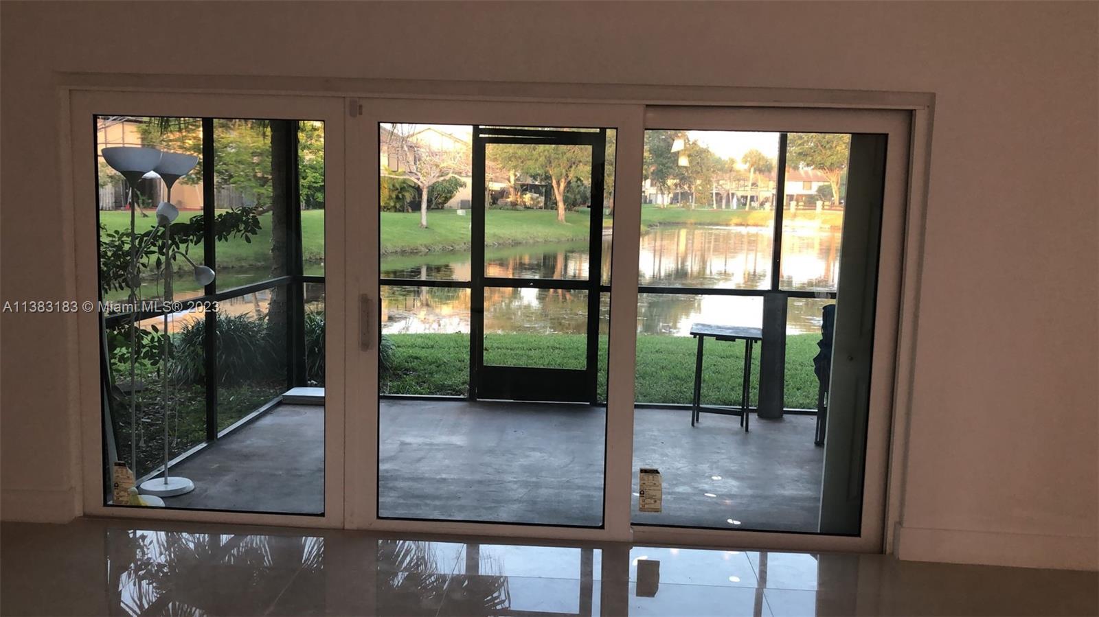 BREATHLESS LAKE VIEW and ALL READY TO MOVE !! 3 Bedroom 2 Bath home in Sunrise. This beautiful home offers white porcelanatto and flooring throughout, a large living/dining area with vaulted ceilings, and a spacious screened-in lanai. You'll love the kitchen with its white cabinets, granite counters & backsplash, and NEW appliances. You're Primary Suite is large and features an ensuite bath along with a walk-in closet. The fenced-in yard offers security in a gated comunity .