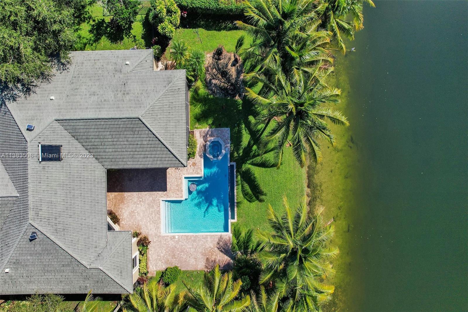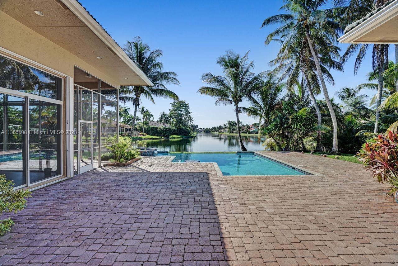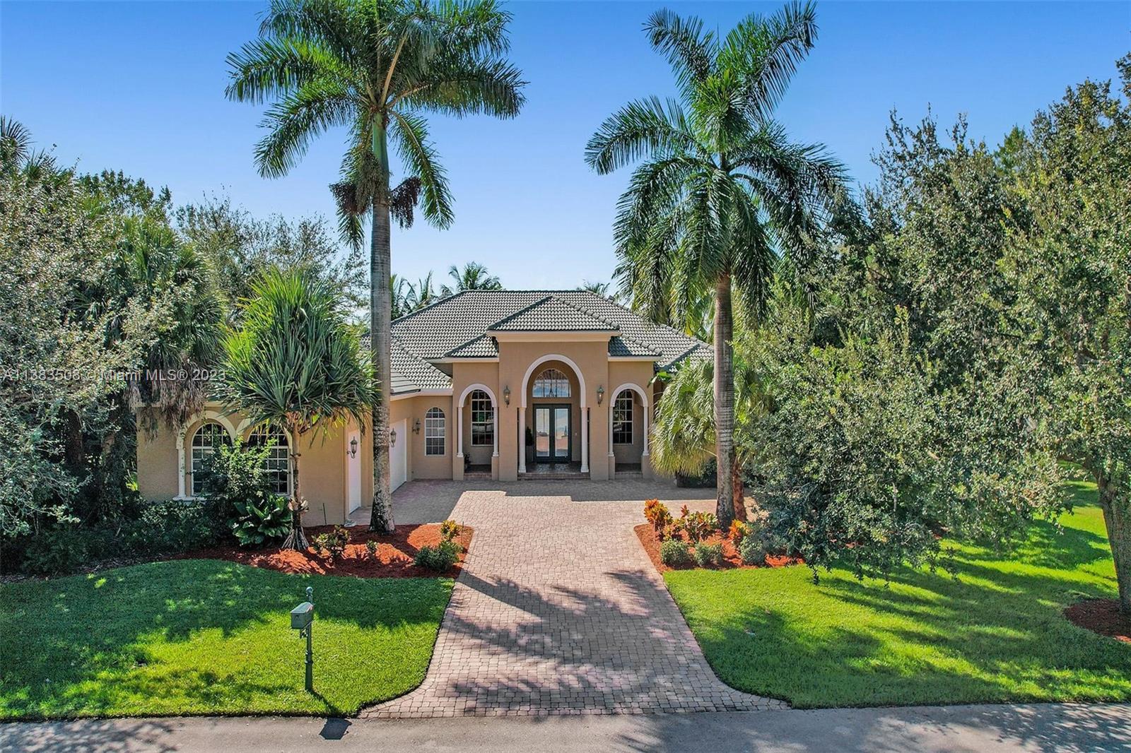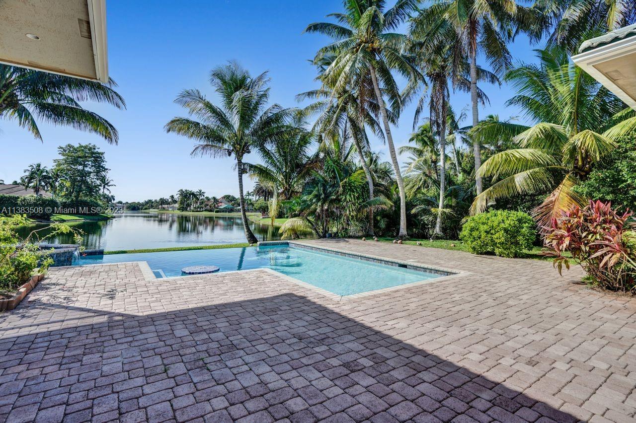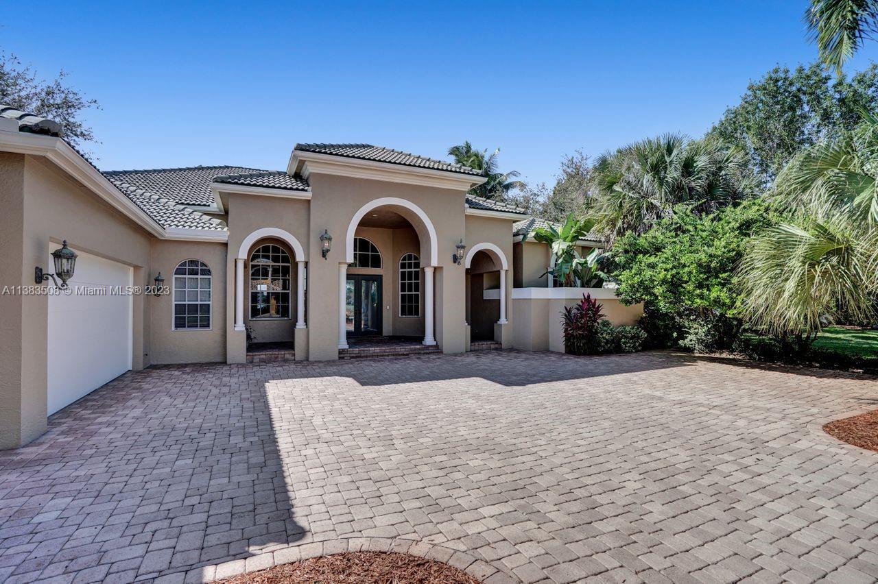 Simply stunning half acre waterfront lot in Exclusive Stonebrook Estates community in the equestrian Town of Davie. Home is located on the best lakefront lpoint ot in the community with long tranquil lakeviews from the moment you enter home with gorgeous remodeled infinity edge pool and jacuzzi. Fantastic one-story split floor plan with 5 bedrooms PLUS office,4 bathrooms,3 car garage and 18 foot ceilings. Beautiful chef's kitchen with Sub Zero refrigerator, gas stove, wood cabinets and granite counter tops. Huge master suite with adjacent sitting/gym area and large walk-in closets. Grand master bath with granite and double shower heads. Freshly painted inside and outside. Solar water heater. Accordion shutters.True pleasure to show and you will be impressed!