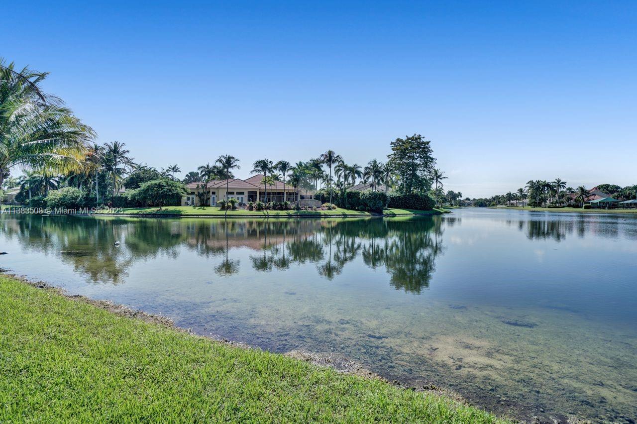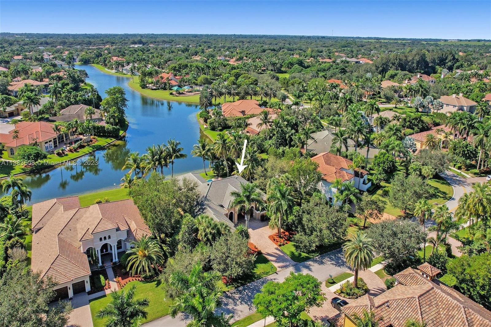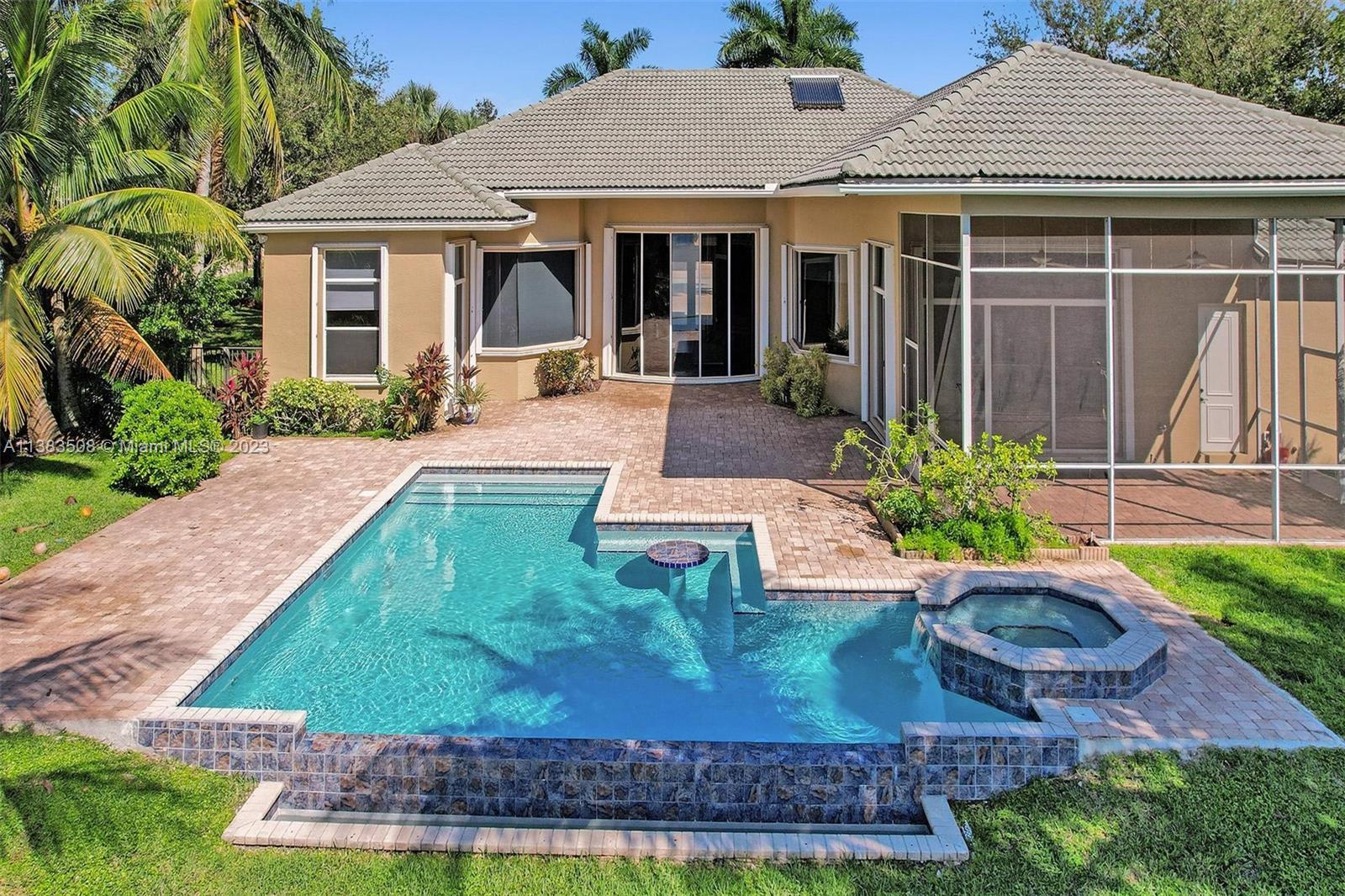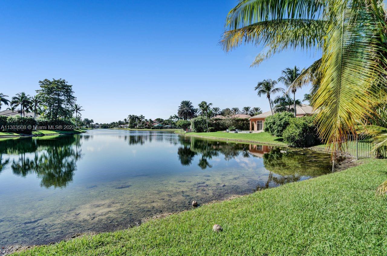 Simply stunning half acre waterfront lot in Exclusive Stonebrook Estates community in the equestrian Town of Davie. Home is located on the best lakefront lpoint ot in the community with long tranquil lakeviews from the moment you enter home with gorgeous remodeled infinity edge pool and jacuzzi. Fantastic one-story split floor plan with 5 bedrooms PLUS office,4 bathrooms,3 car garage and 18 foot ceilings. Beautiful chef's kitchen with Sub Zero refrigerator, gas stove, wood cabinets and granite counter tops. Huge master suite with adjacent sitting/gym area and large walk-in closets. Grand master bath with granite and double shower heads. Freshly painted inside and outside. Solar water heater. Accordion shutters.True pleasure to show and you will be impressed!