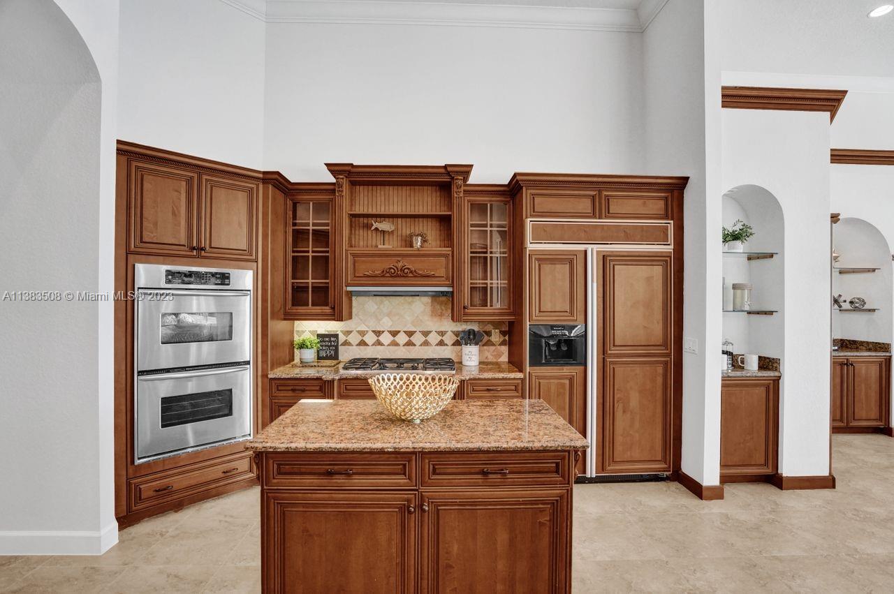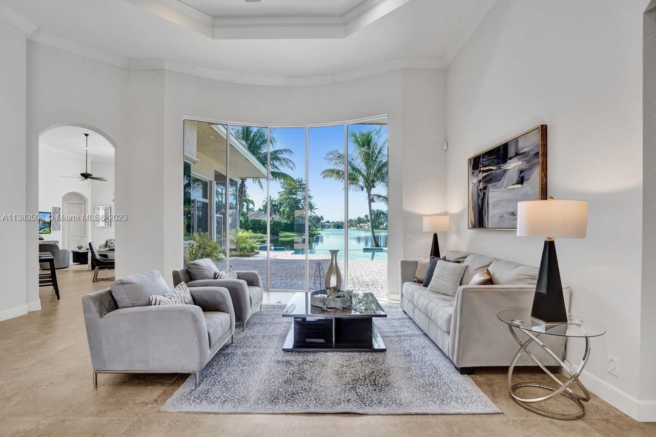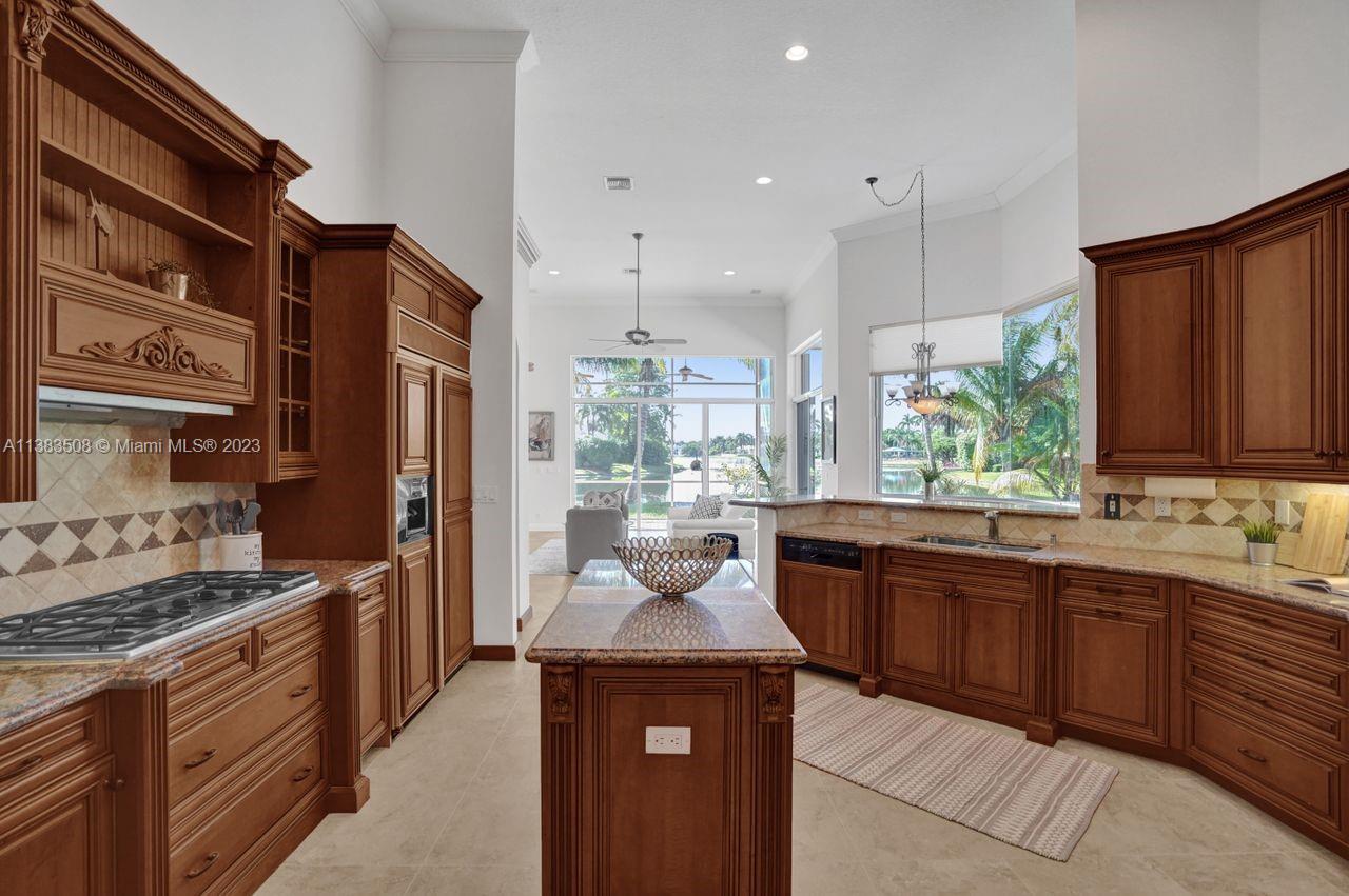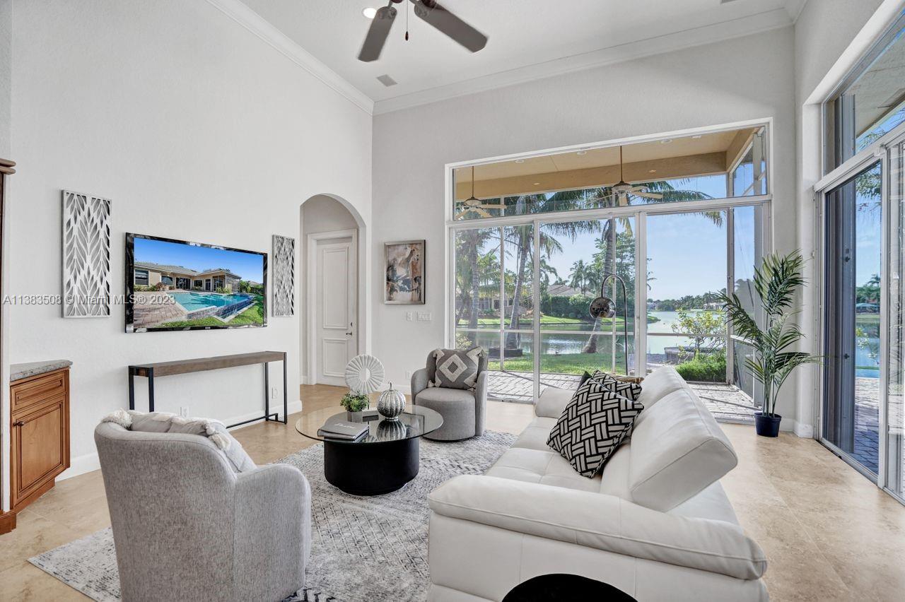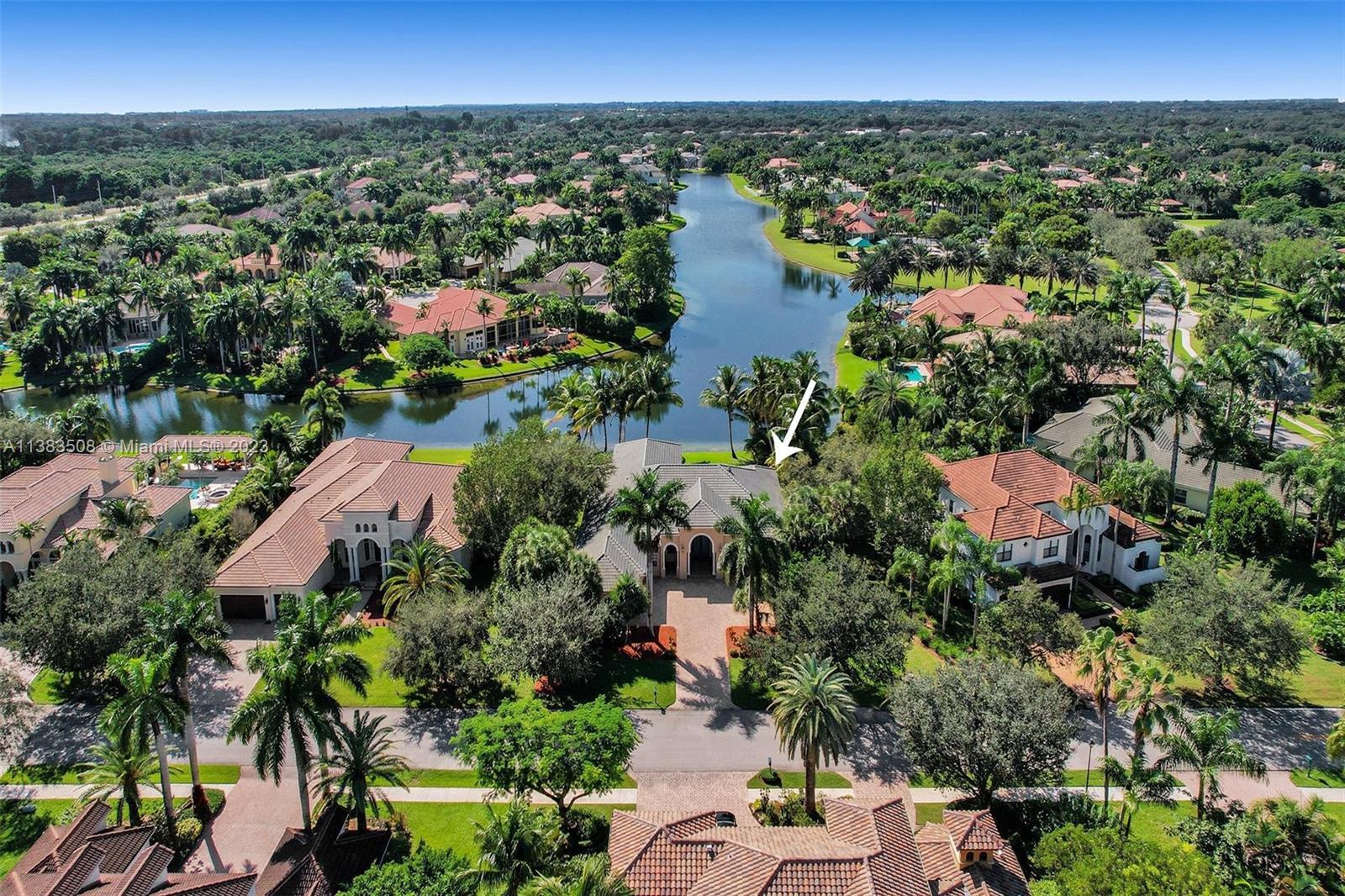 Simply stunning half acre waterfront lot in Exclusive Stonebrook Estates community in the equestrian Town of Davie. Home is located on the best lakefront lpoint ot in the community with long tranquil lakeviews from the moment you enter home with gorgeous remodeled infinity edge pool and jacuzzi. Fantastic one-story split floor plan with 5 bedrooms PLUS office,4 bathrooms,3 car garage and 18 foot ceilings. Beautiful chef's kitchen with Sub Zero refrigerator, gas stove, wood cabinets and granite counter tops. Huge master suite with adjacent sitting/gym area and large walk-in closets. Grand master bath with granite and double shower heads. Freshly painted inside and outside. Solar water heater. Accordion shutters.True pleasure to show and you will be impressed!