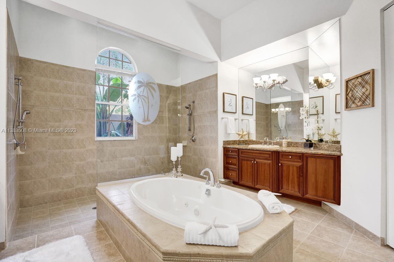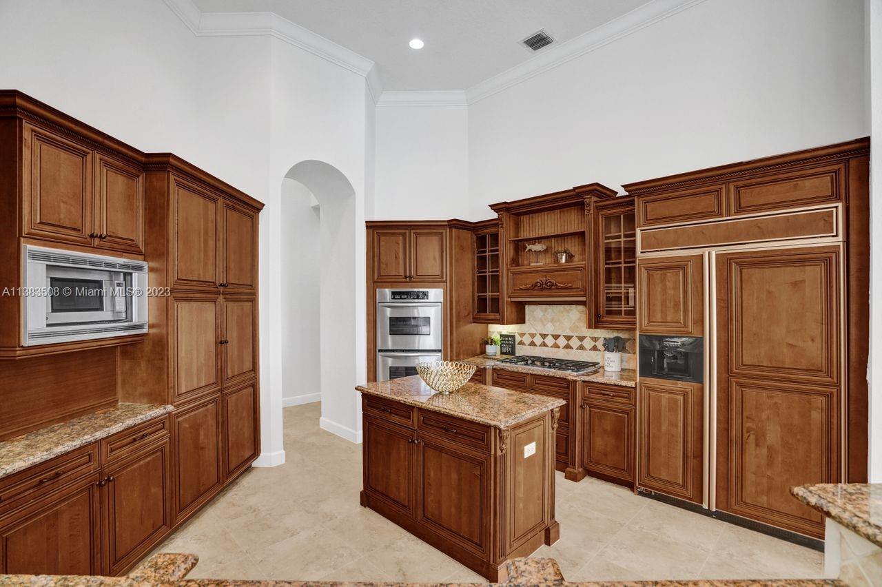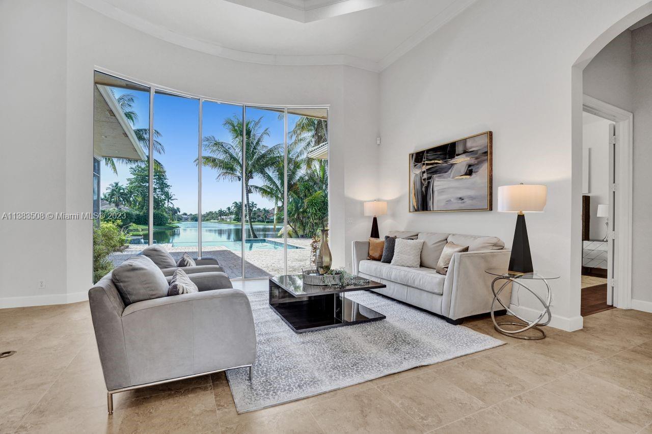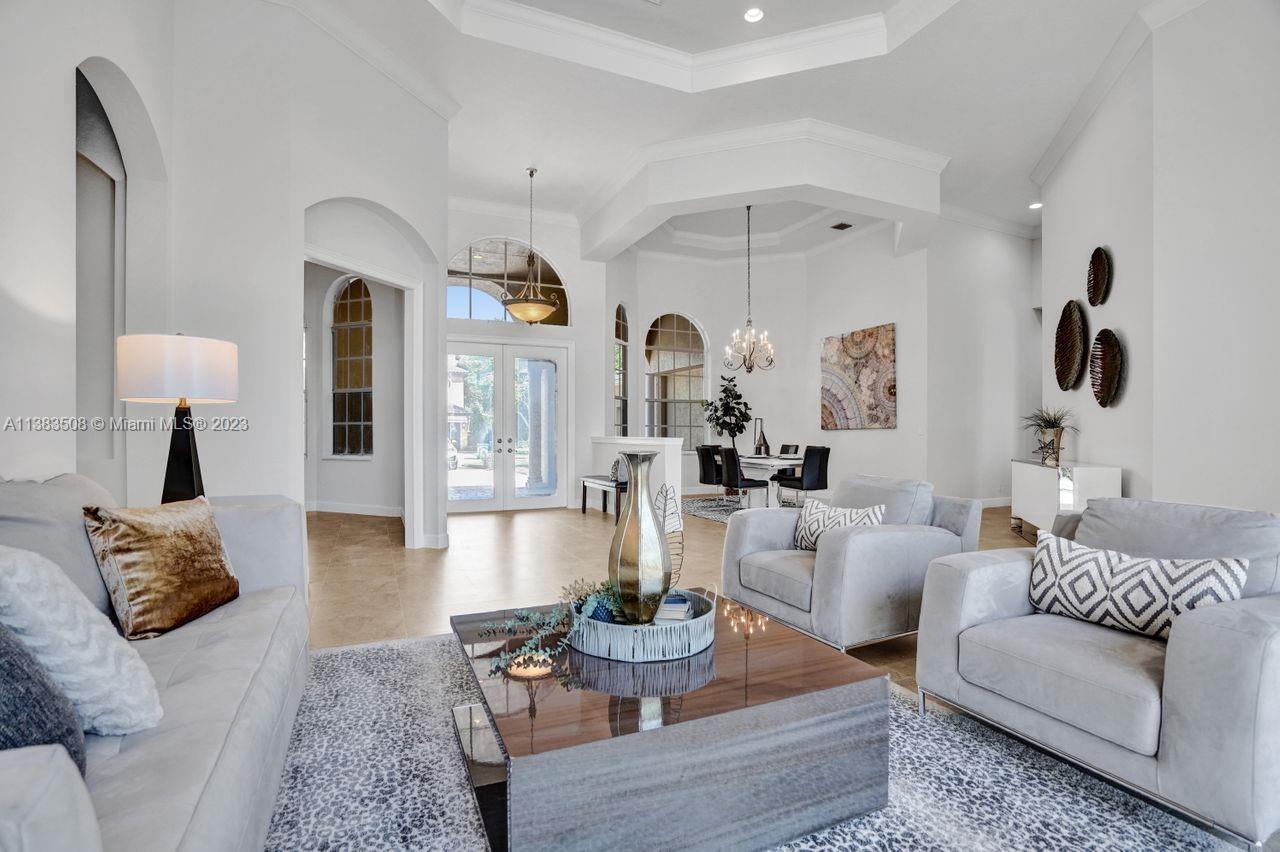 Simply stunning half acre waterfront lot in Exclusive Stonebrook Estates community in the equestrian Town of Davie. Home is located on the best lakefront lpoint ot in the community with long tranquil lakeviews from the moment you enter home with gorgeous remodeled infinity edge pool and jacuzzi. Fantastic one-story split floor plan with 5 bedrooms PLUS office,4 bathrooms,3 car garage and 18 foot ceilings. Beautiful chef's kitchen with Sub Zero refrigerator, gas stove, wood cabinets and granite counter tops. Huge master suite with adjacent sitting/gym area and large walk-in closets. Grand master bath with granite and double shower heads. Freshly painted inside and outside. Solar water heater. Accordion shutters.True pleasure to show and you will be impressed!