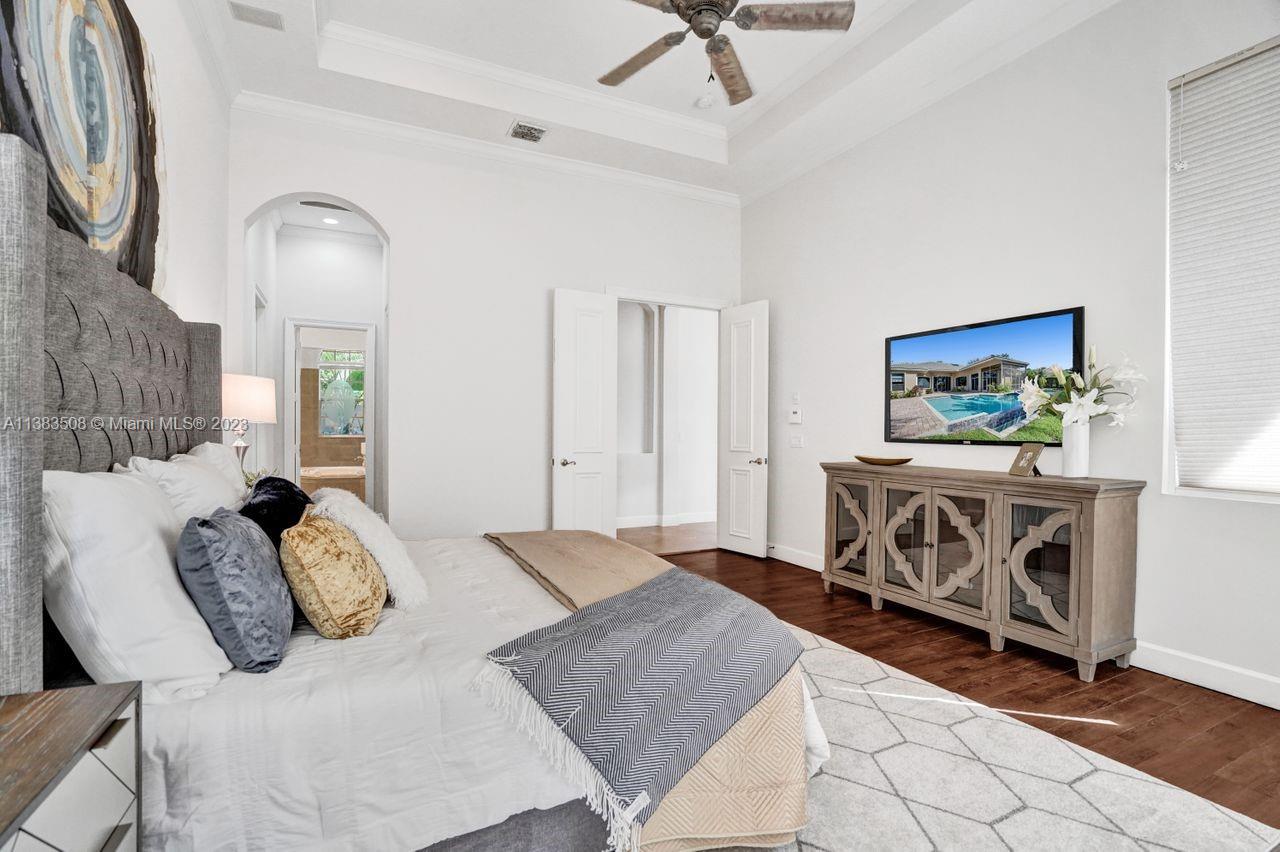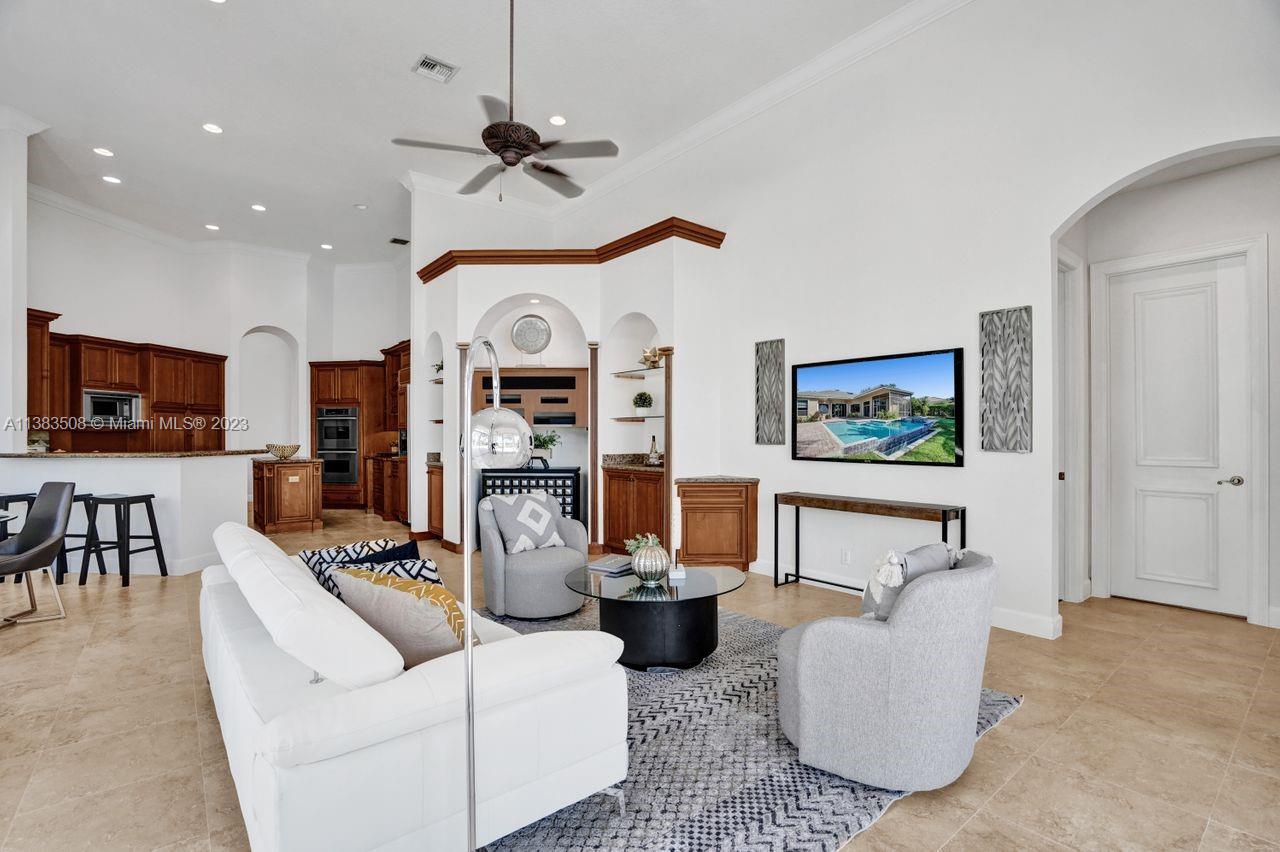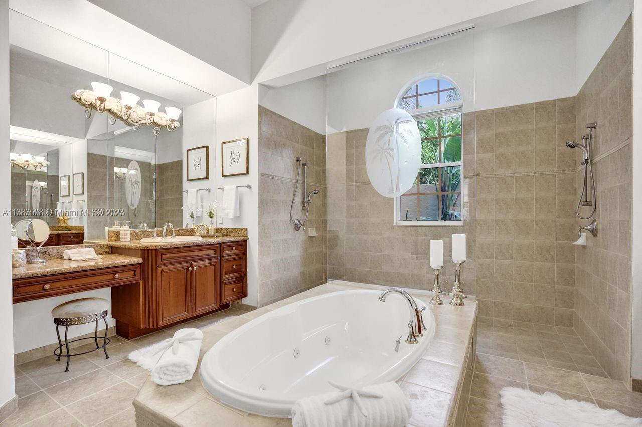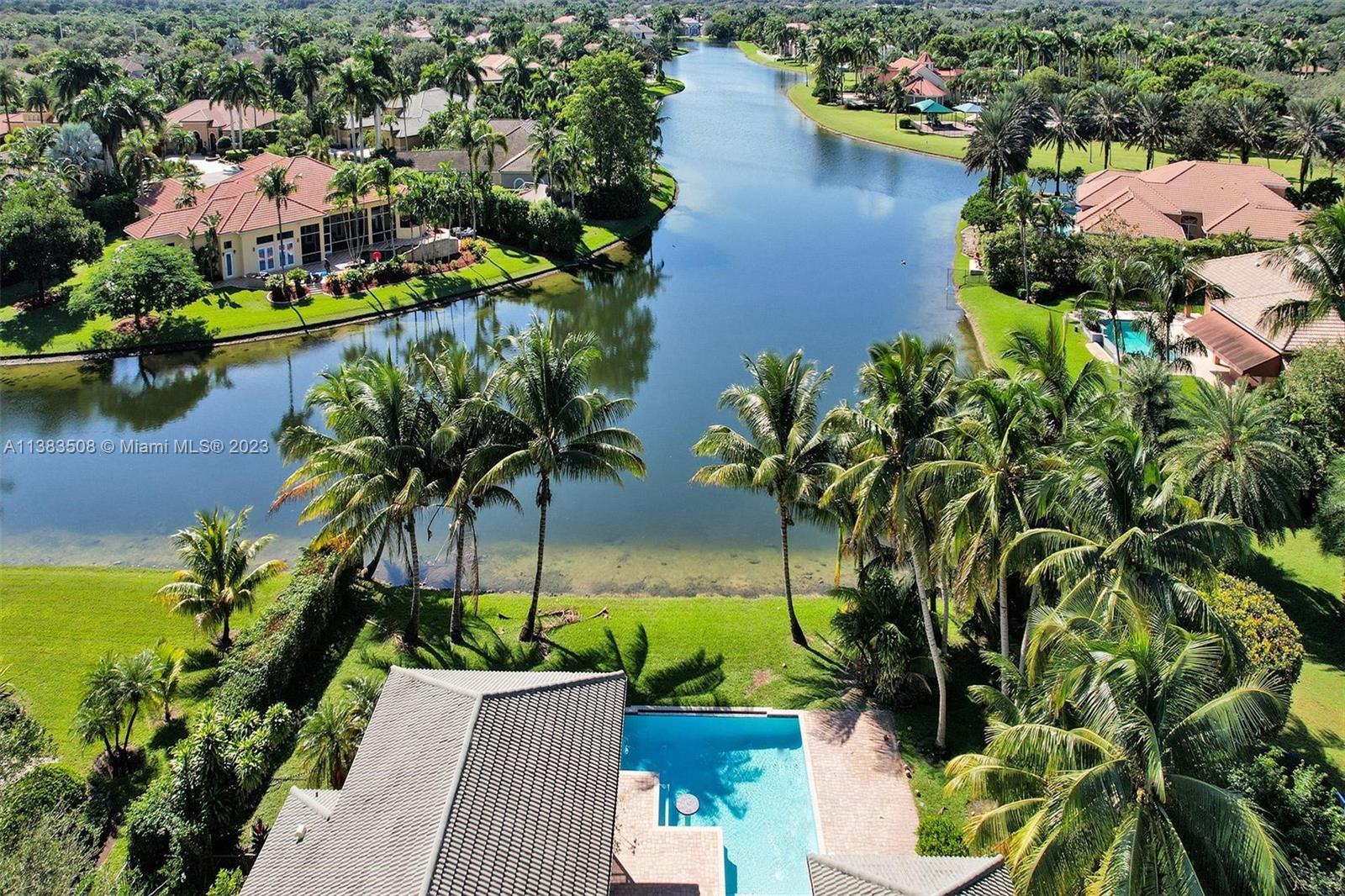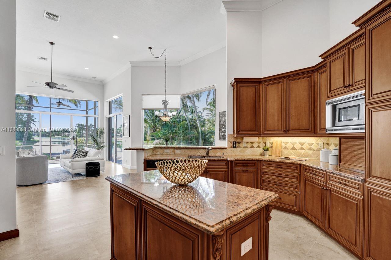 Simply stunning half acre waterfront lot in Exclusive Stonebrook Estates community in the equestrian Town of Davie. Home is located on the best lakefront lpoint ot in the community with long tranquil lakeviews from the moment you enter home with gorgeous remodeled infinity edge pool and jacuzzi. Fantastic one-story split floor plan with 5 bedrooms PLUS office,4 bathrooms,3 car garage and 18 foot ceilings. Beautiful chef's kitchen with Sub Zero refrigerator, gas stove, wood cabinets and granite counter tops. Huge master suite with adjacent sitting/gym area and large walk-in closets. Grand master bath with granite and double shower heads. Freshly painted inside and outside. Solar water heater. Accordion shutters.True pleasure to show and you will be impressed!