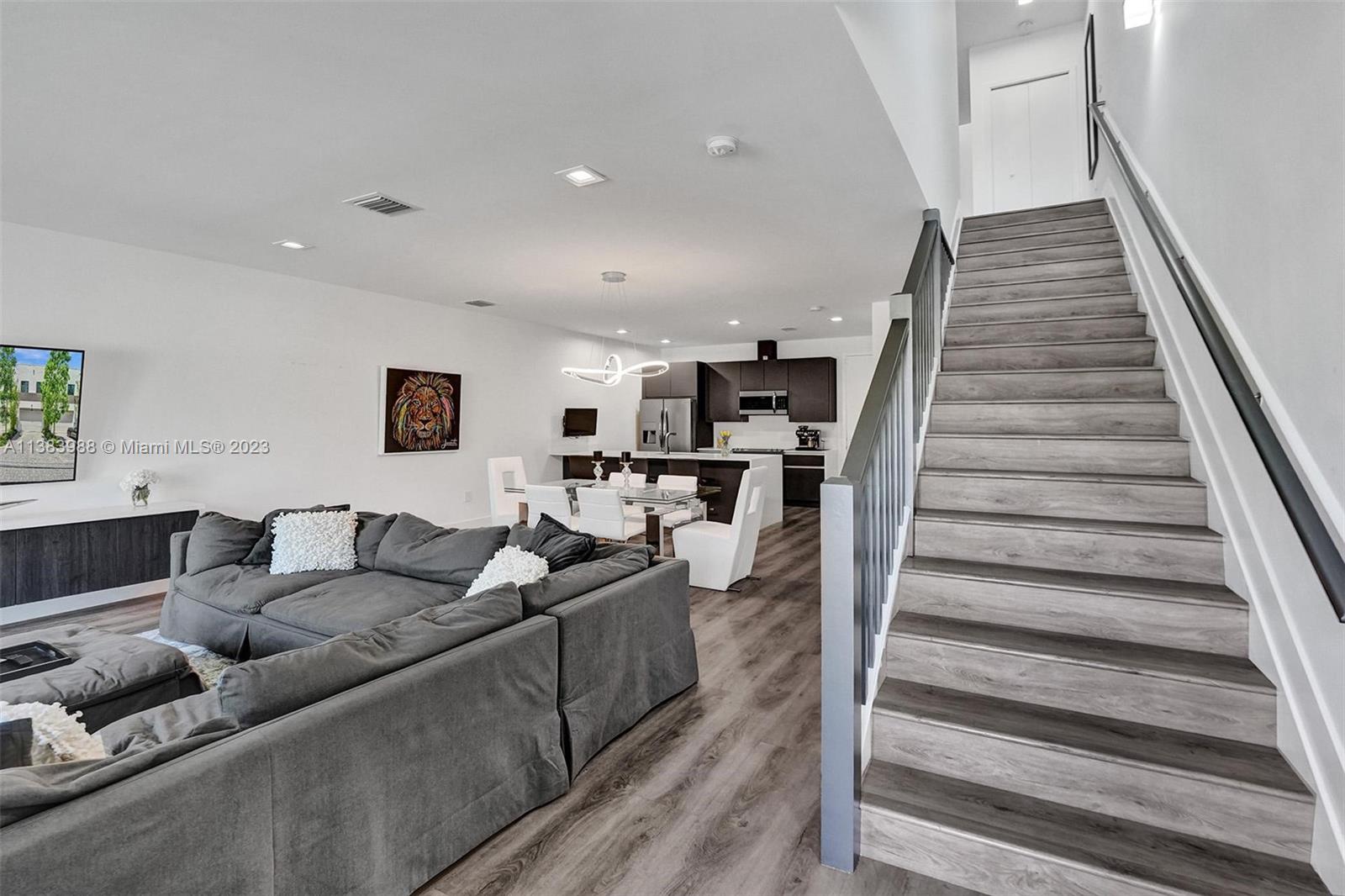 Looking for a home in heart of Croissant Park? Luxurious 2-level townhouse boasts 3BR/2.5BA&2-car garage & 1745SF. Inside you'll be struck by attention to detail & custom updates unlike others. 1stFLr has open-concept living/dining area, perfect for entertaining guests. Chef's kitchen w/SS appliances, white quartz counters & big pantry. Living room has custom built-in cabinet & DR has built-in bar w/wine fridge, shelves & cabinets. All BRs on 2ndFL. Spacious primary suite w/stunning astroturf balcony & sunset views, custom walk-in closet & en-suite bath w/2-sinks, water closet & frameless shower. Impact windows-porcelain tile-motorized blinds-custom lights-SmartHome features-high ceilings-fenced & gated. Say yes to this serene oasis-Portofino Townhomes-quaint complex of 12, built in 2019