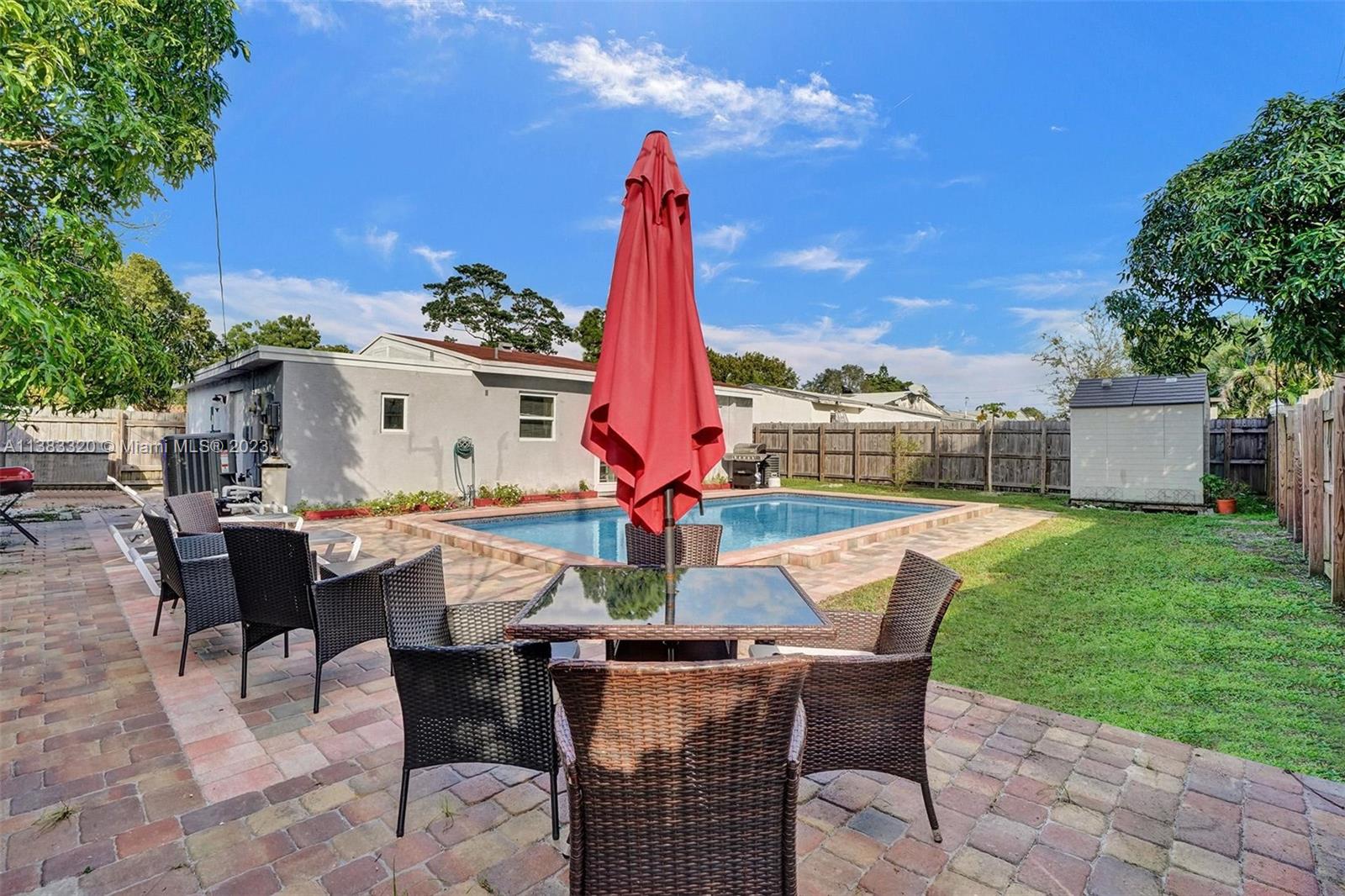 Beautiful 3 bedroom, 2 bathroom home with a pool located in the heart of Hollywood. This home boasts gorgeous wood tile throughout along with a newewly remodeled kitchen with granite counter tops and stainless steal appliances. Roof was also redone in 2019. There is also an additional bonus room which can be used as a den, office, or play room! Fully fenced in backyard with a pool is perfect for entertaining.