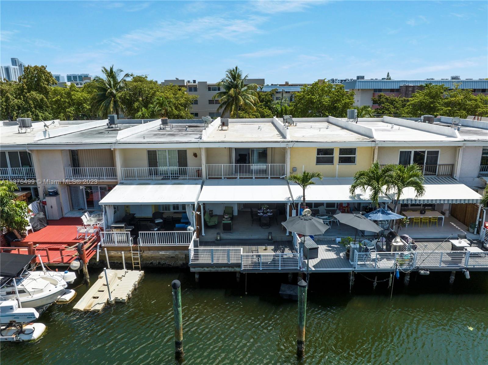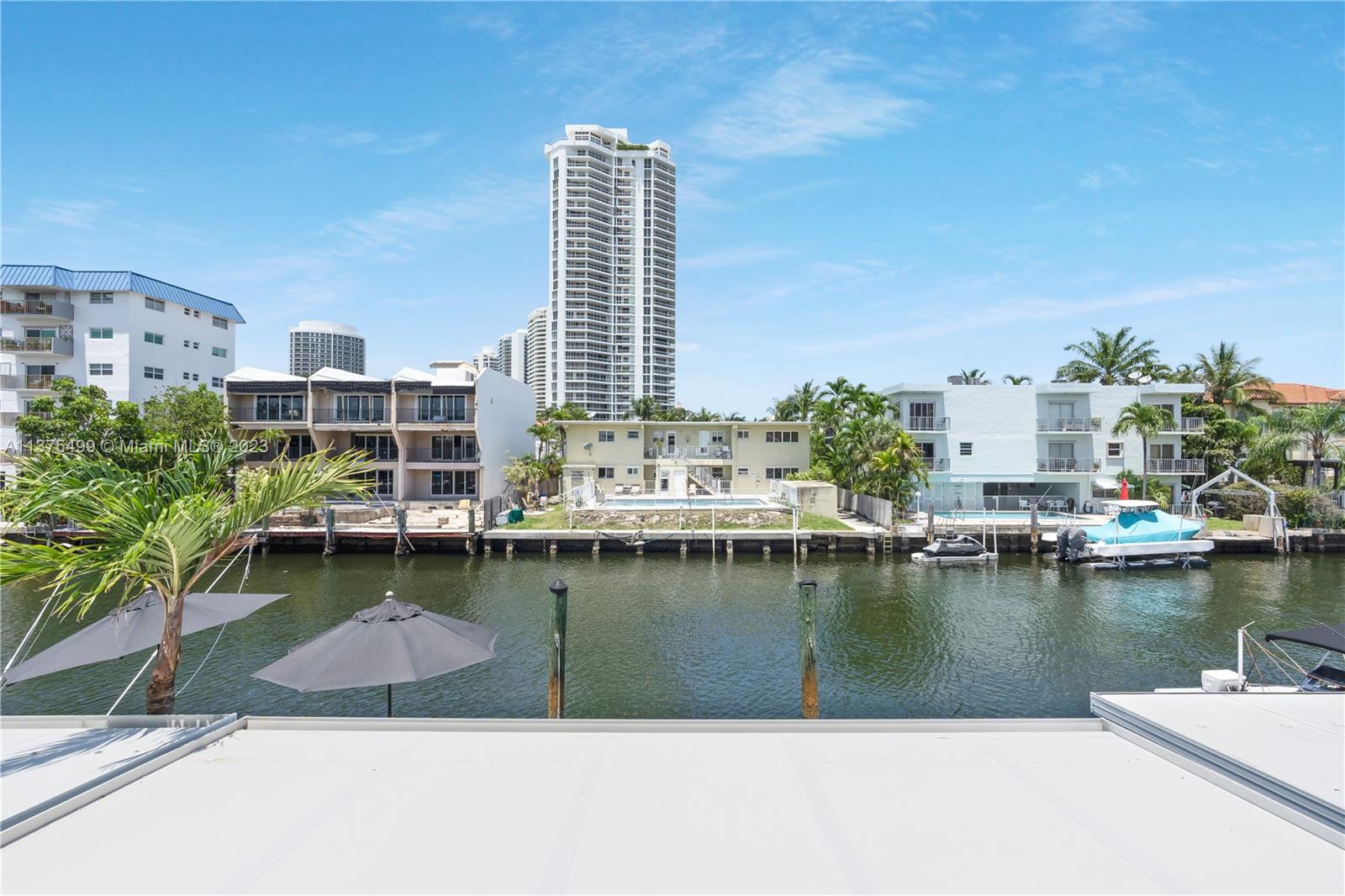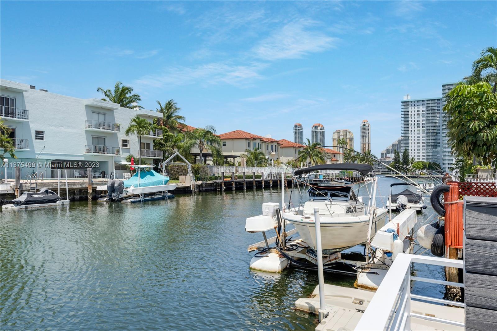 Boat Lovers!!! An amazing townhouse in the canal with a dock for boat up to 25 feet right behind the unit, with a beautiful and ample deck for entertaining, is a dream! There is open access to the ocean without fixed bridges. This townhouse is very spacious and was substantially remodeled leaving a cozy and contemporary look, with an open floor plan, 1st level with tiles on the floor, stainless steel appliances and large quartz countertop in the kitchen. There are 2 master suites in the upper level(vinyl floor), plenty of storage spaces, 2 assigned parking spaces and the location is prime. Close to the beach, restaurants, Aventura Mall, and much more. VACANT!