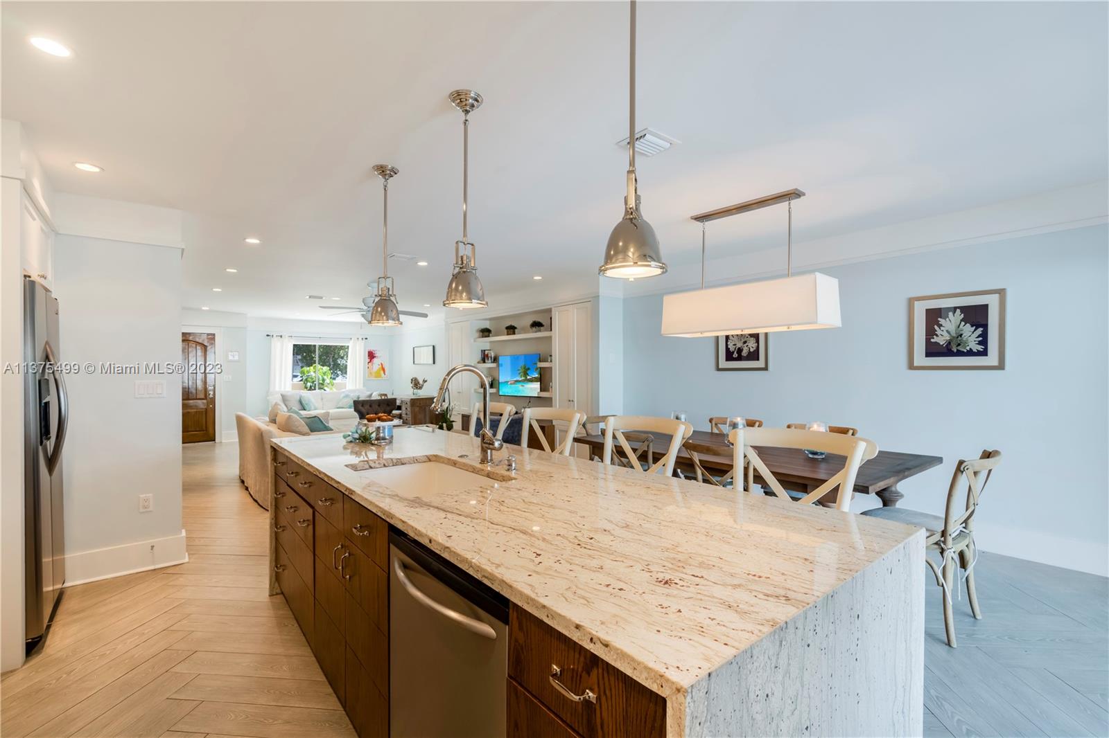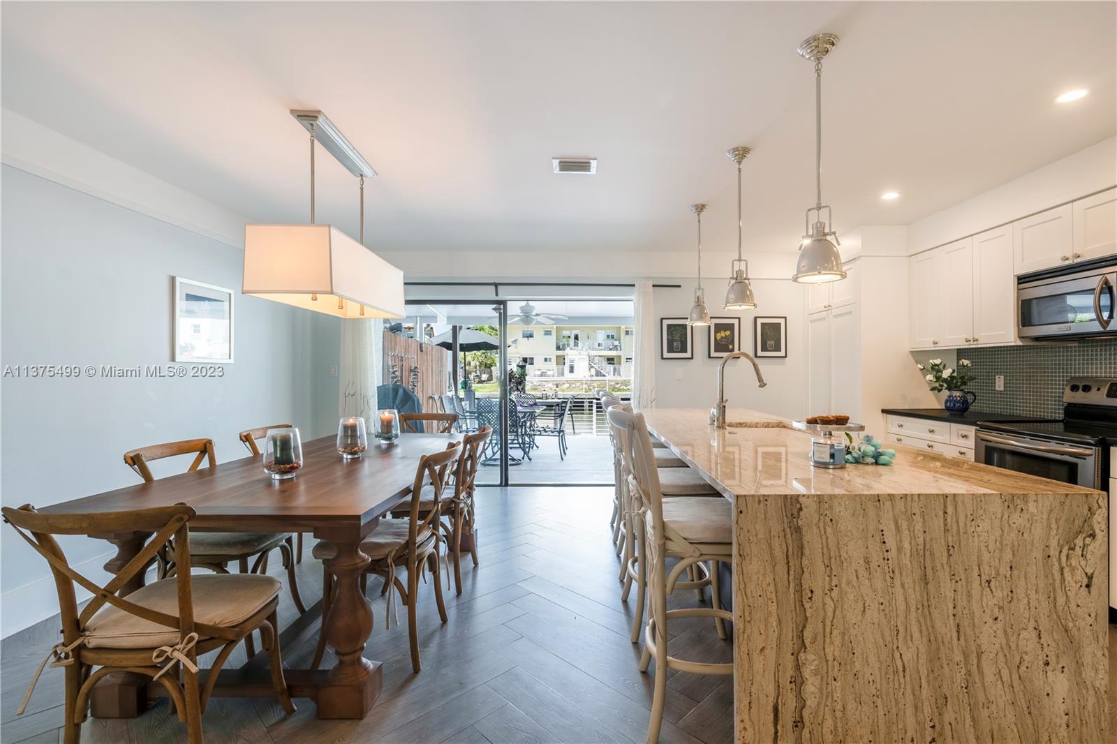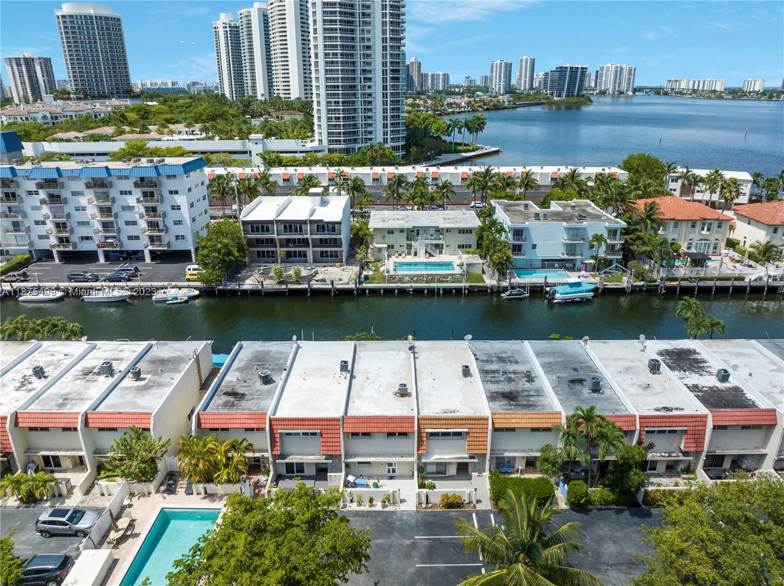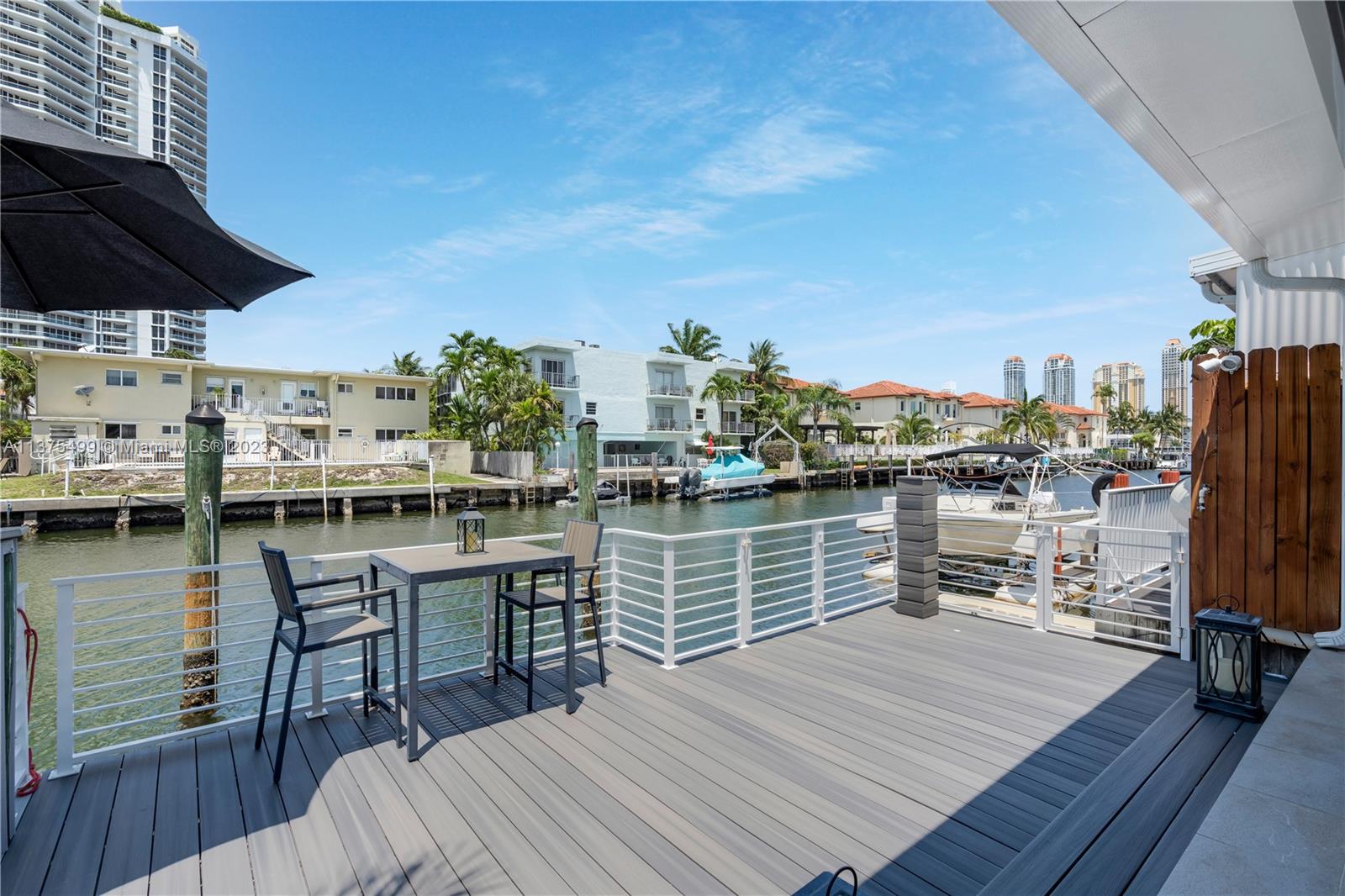 Boat Lovers!!! An amazing townhouse in the canal with a dock for boat up to 25 feet right behind the unit, with a beautiful and ample deck for entertaining, is a dream! There is open access to the ocean without fixed bridges. This townhouse is very spacious and was substantially remodeled leaving a cozy and contemporary look, with an open floor plan, 1st level with tiles on the floor, stainless steel appliances and large quartz countertop in the kitchen. There are 2 master suites in the upper level(vinyl floor), plenty of storage spaces, 2 assigned parking spaces and the location is prime. Close to the beach, restaurants, Aventura Mall, and much more. VACANT!