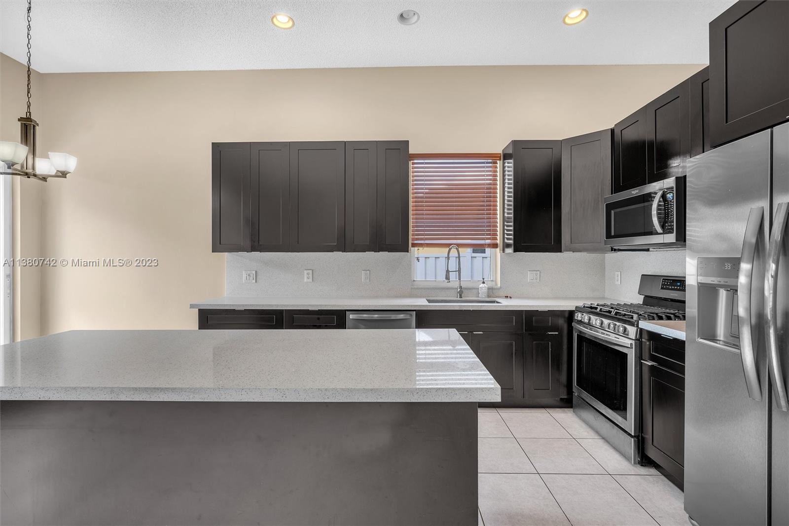 Welcome to your dream home in the resort style community of Pembroke Falls. Boasting an array of sleek finishes and a beautiful open plan layout. This 3/2.5 upgraded home features a functional entryway space, high ceilings, and flows into a luminous, open- concept living, dining, and kitchen area. The remodeled kitchen is equipped with stainless steel appliances, a gas stove, quartz countertops, and a large kitchen island and pantry. The expansive and fully fenced backyard allows for room for a pool. The master bedroom features wood floors, a large walk-in closet and double sink, tub and shower in the bathroom. The location is one that you cannot recreate. The recreational area tops all in the area (includes community pool, tennis courts, ballroom, basketball courts and much more).