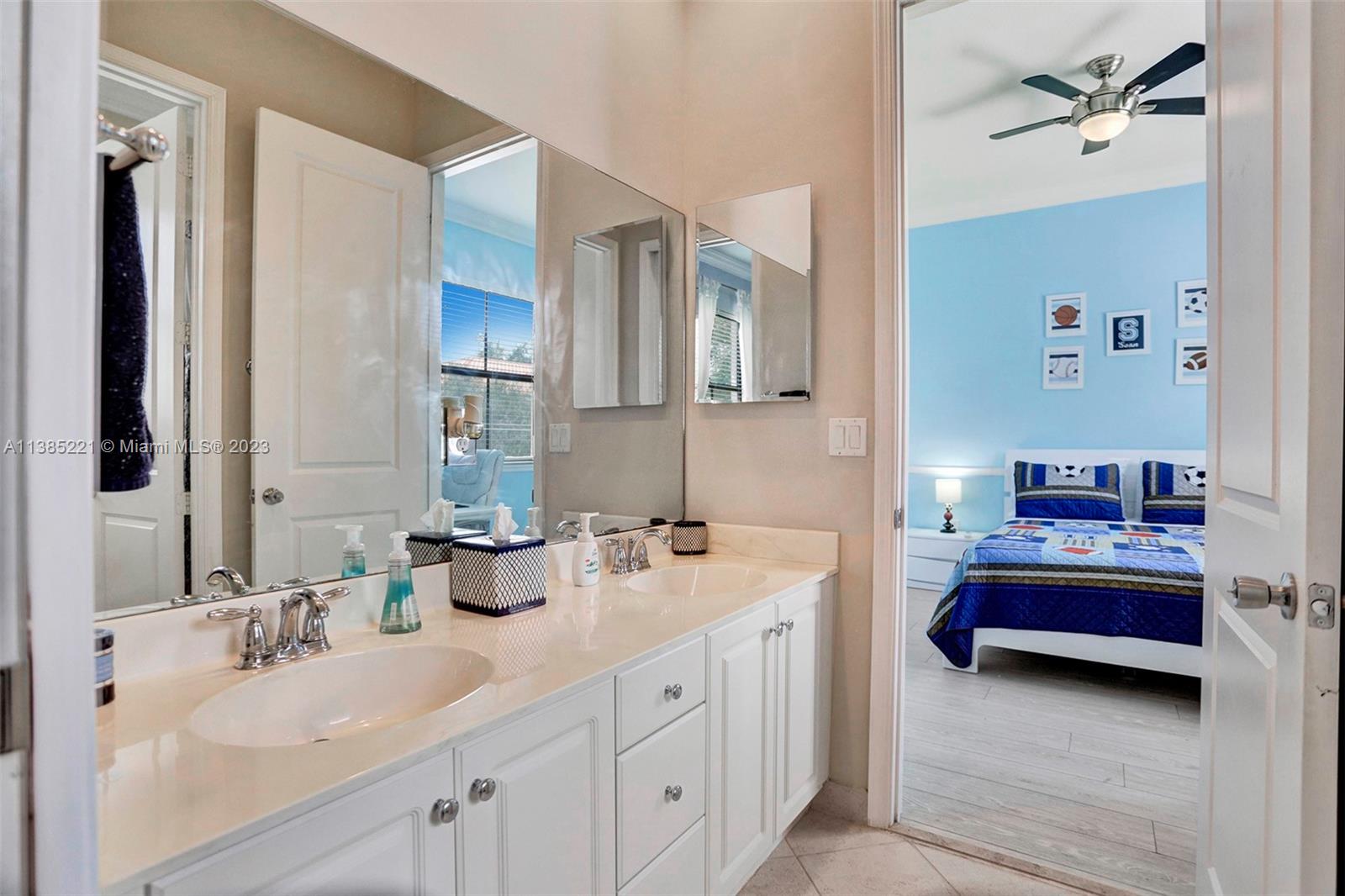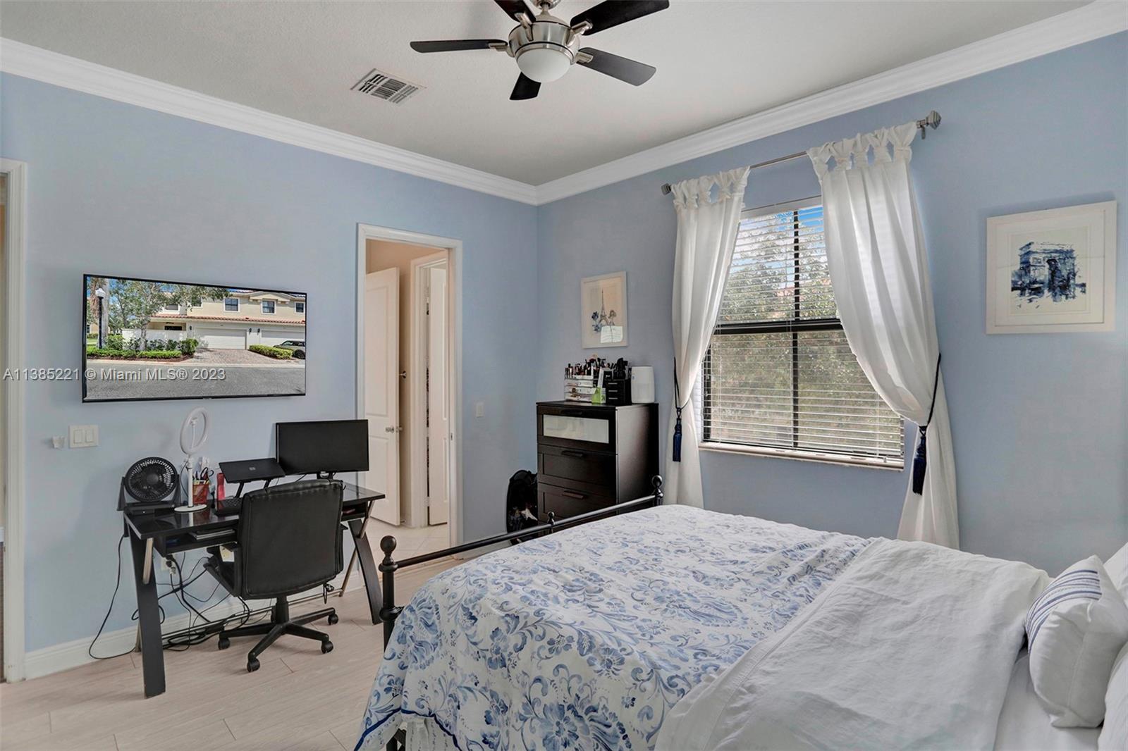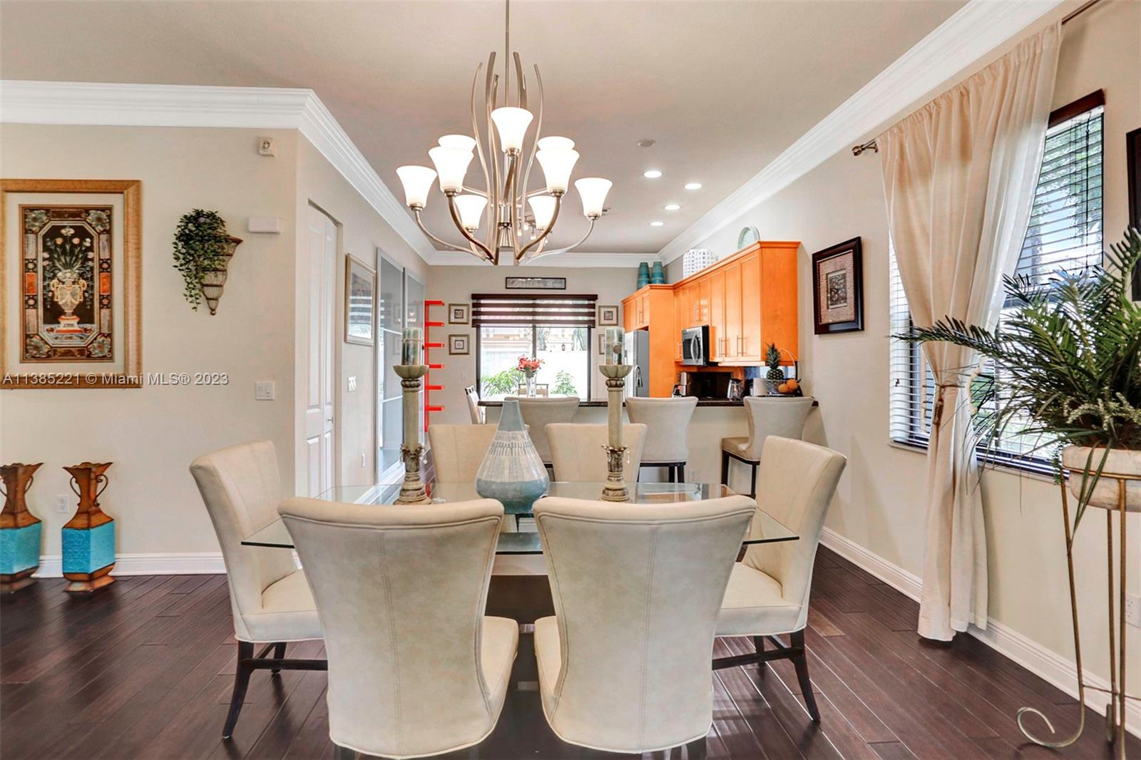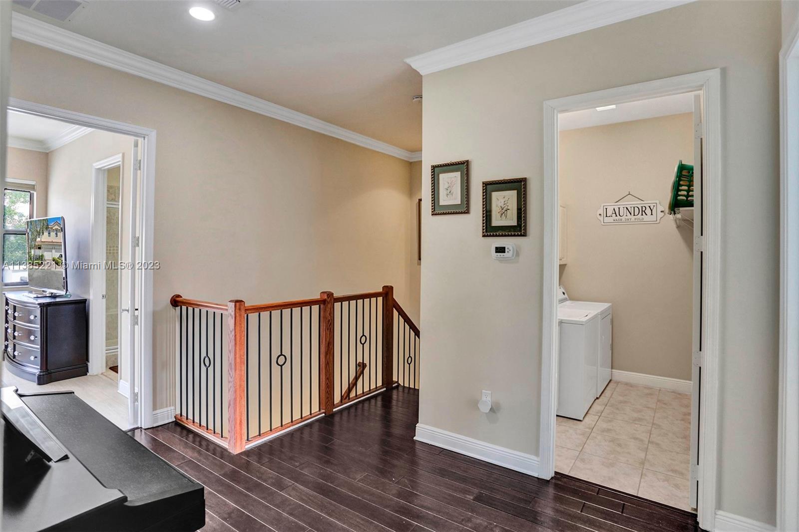 Wonderful Corner Home and Great Community with Resort Style amenities. Three bedrooms upstairs and one bedroom downstairs. Kitchen with island and gas stove and Granite Counter-Tops. Large pantry with sliding doors. Living Room and Dining Room are open to the Kitchen for large open area with plenty of natural light. Relaxing front porch, or enclosed back patio for grilling. Or relax outside of the MBR on the balcony. Separate Laundry Room upstairs. Artesia offers Resort Style Clubhouse, Billiard Room, Pool, Gym, Indoor Basketball Court, Tennis, Child Play Ground and More. Wood and Tile Floors throughout. Impact Windows for safety and security. 2 car garage. Artesia, a gated community with 24-hour Guard. Living Room Furniture is included except the large picture near the garage door.