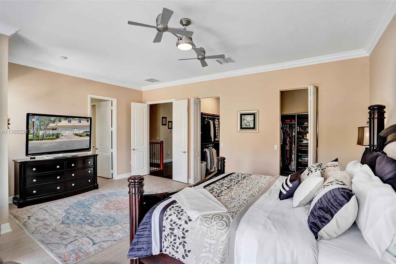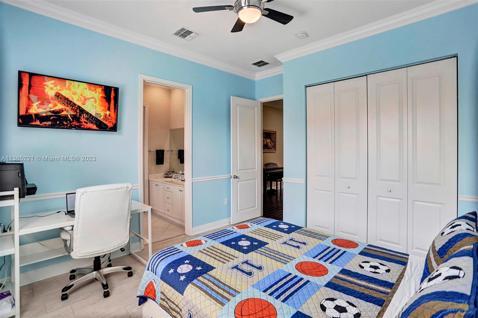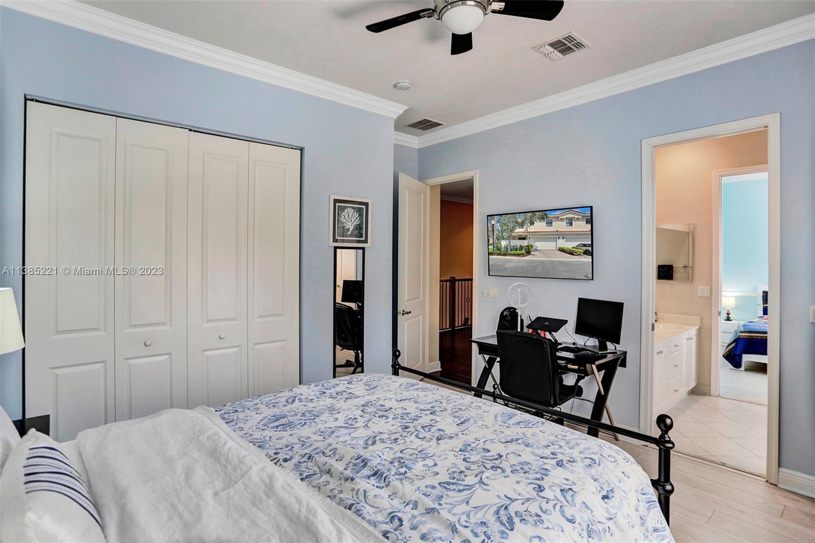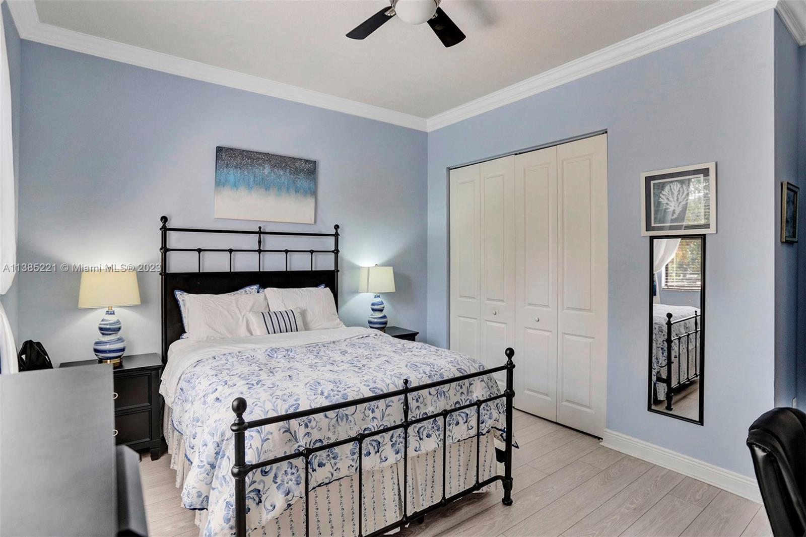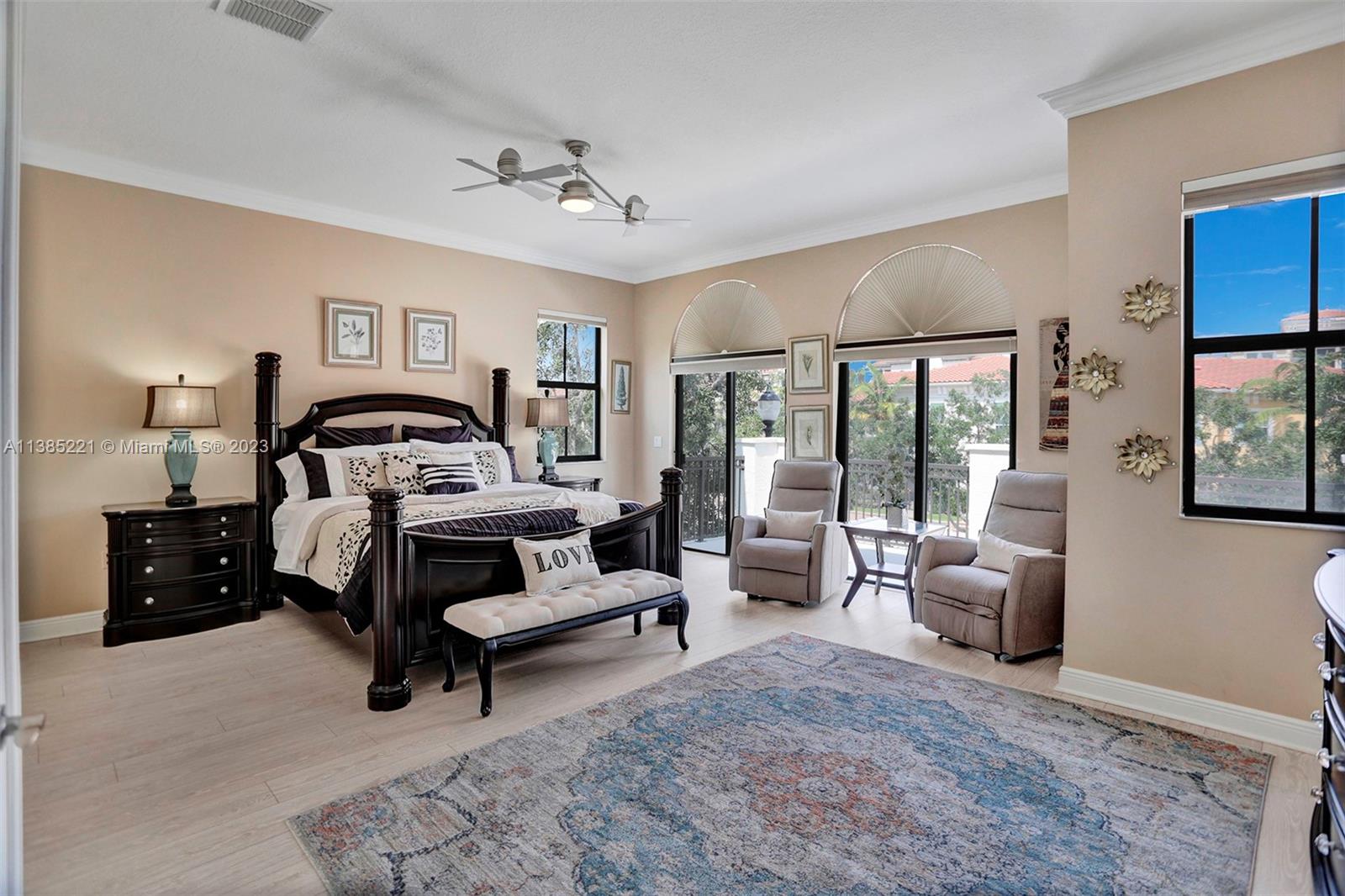Wonderful Corner Home and Great Community with Resort Style amenities. Three bedrooms upstairs and one bedroom downstairs. Kitchen with island and gas stove and Granite Counter-Tops. Large pantry with sliding doors. Living Room and Dining Room are open to the Kitchen for large open area with plenty of natural light. Relaxing front porch, or enclosed back patio for grilling. Or relax outside of the MBR on the balcony. Separate Laundry Room upstairs. Artesia offers Resort Style Clubhouse, Billiard Room, Pool, Gym, Indoor Basketball Court, Tennis, Child Play Ground and More. Wood and Tile Floors throughout. Impact Windows for safety and security. 2 car garage. Artesia, a gated community with 24-hour Guard. Living Room Furniture is included except the large picture near the garage door.
