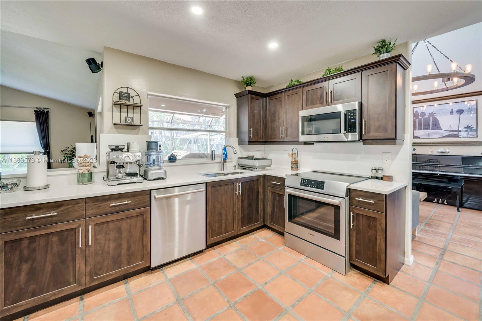 Rare Silver Lakes cul-de-sac gem with an oversized lot. This great 4 bedroom family home has a very large backyard with large pool. Fenced yard surrounded by lush tropical landscaping including palms, mango, banana, sugar apple, and an avocado tree. It has a large screened in patio..great for entertaining. A true 4 bedroom w/ first floor master bedroom, formal dining area, two living areas, loft/gaming area, large breakfast dining area, modern kitchen w/ all stainless steel appliances.Quartz counters. Top of the line Bosch convection oven w/ induction stove, as well as, quiet Bosch dishwasher. 2 car garage. 2 zone AC. The larger unit installed last year and is a high end Lennox Elite variable speed unit with 9 years left on its warranty. Automated 2 zone sprinkler system. Great schools.
