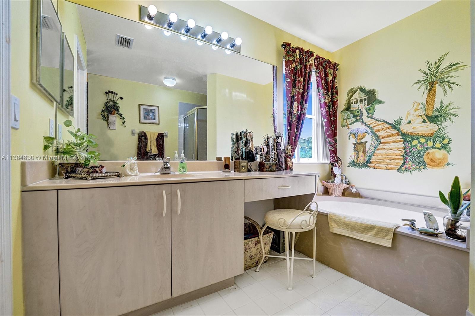 Spacious, bright, beautiful 2 story, high ceiling 4B/4b home ready for new family! Brand new kitchen with quartz countertops island. One full bedroom/bathroom downstairs. Master Bedroom Suite offers sitting area, 2 complete Master Bathrooms with separate soaking tub, dual door shower, and walk in closets. Spacious family room, separate laundry room. Two car garage. Panels on the 1st floor and accordion shutters on the 2nd Floor. Fenced backyard with fruit trees. Gated community with security, amenities include, 2 pools, tennis courts, basketball court, gym, playground, and much more! Close to Schools, Shopping, Dining and Highways! Price to sell! Easy to show.