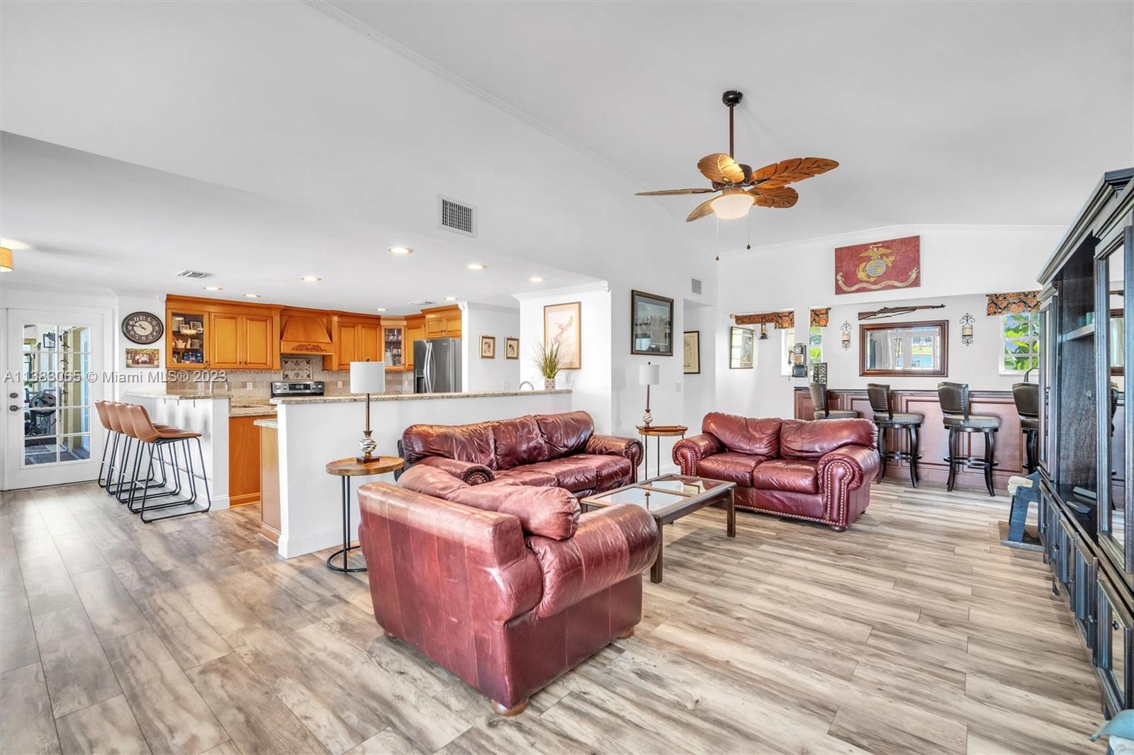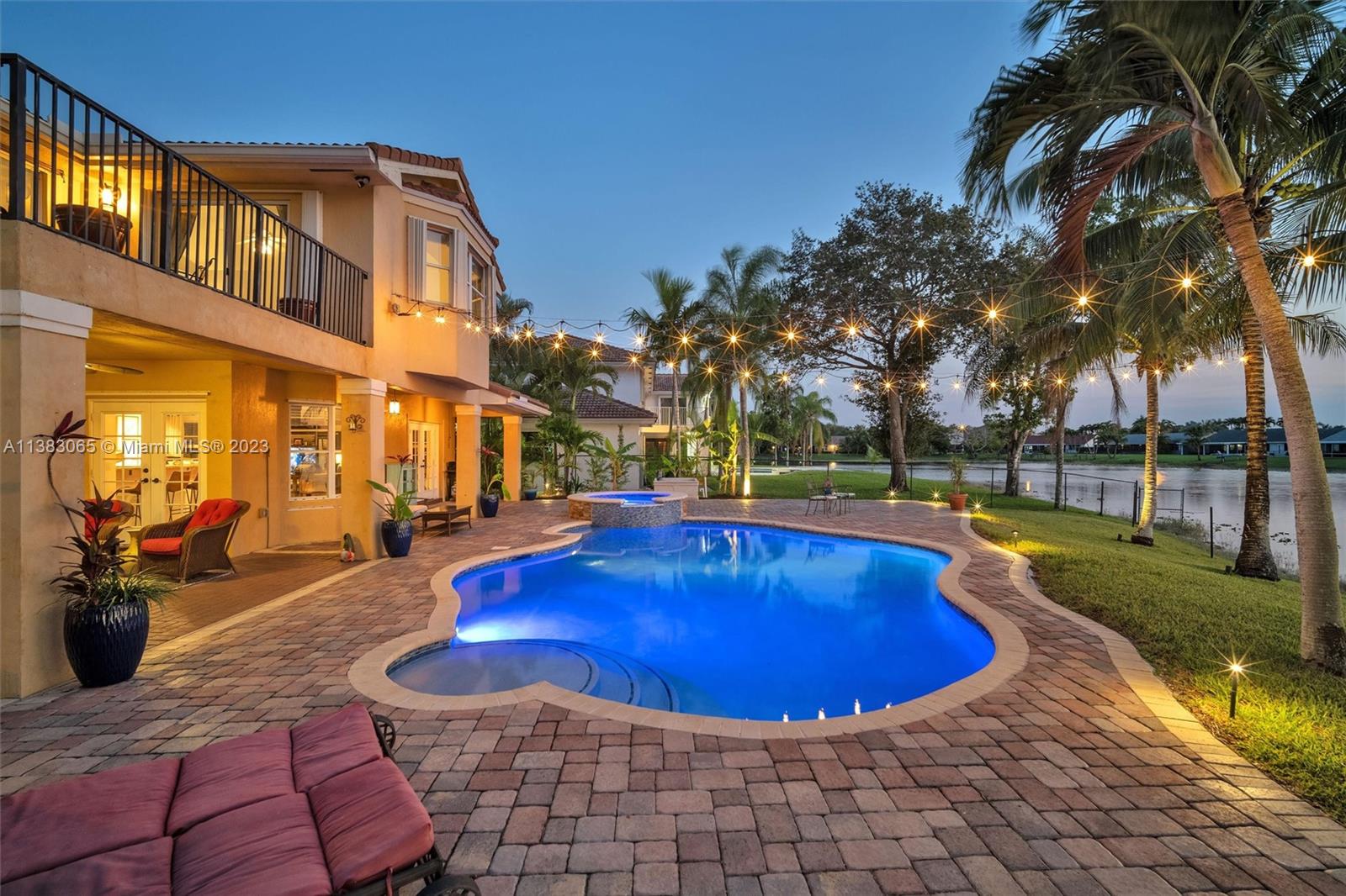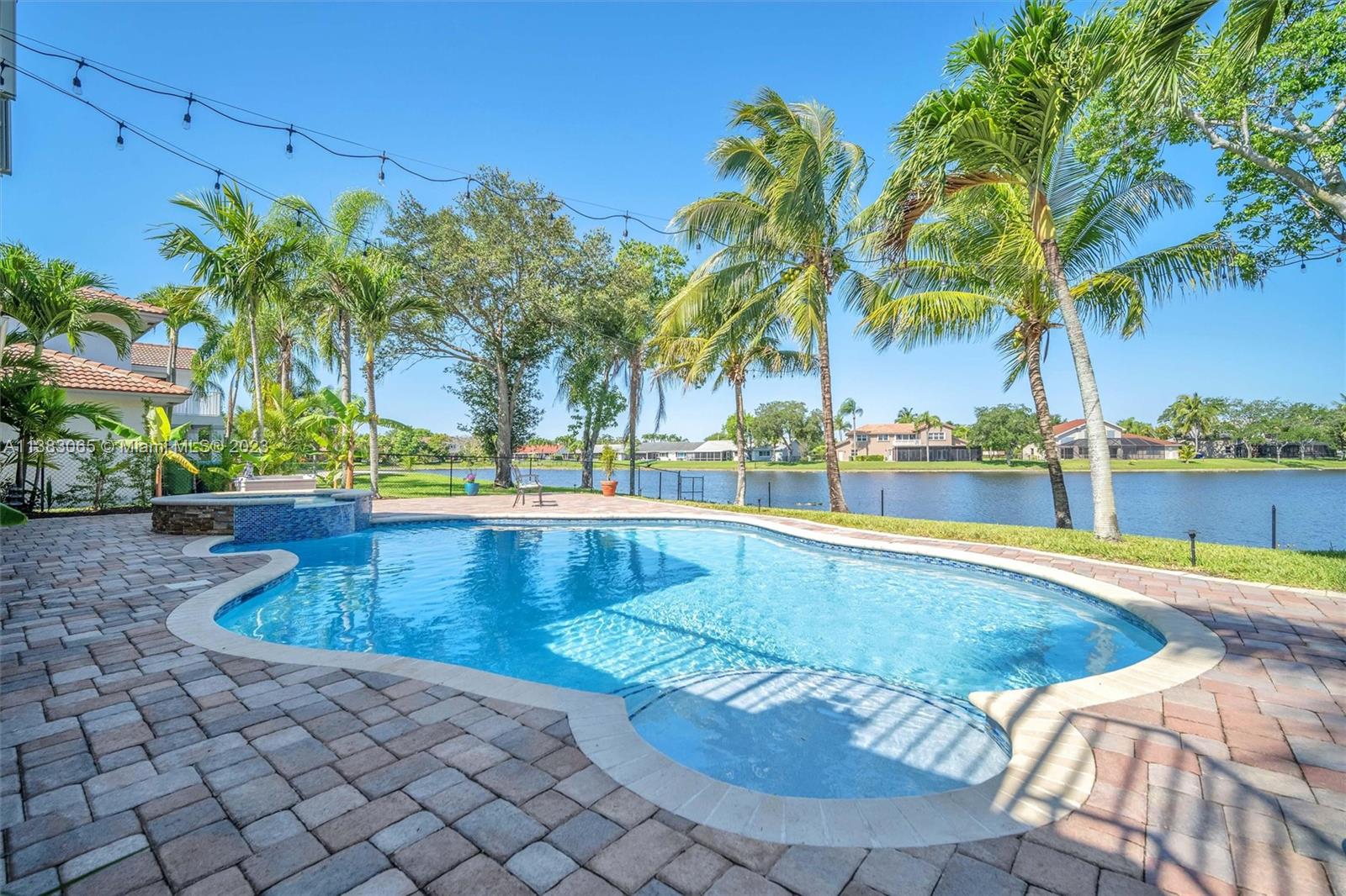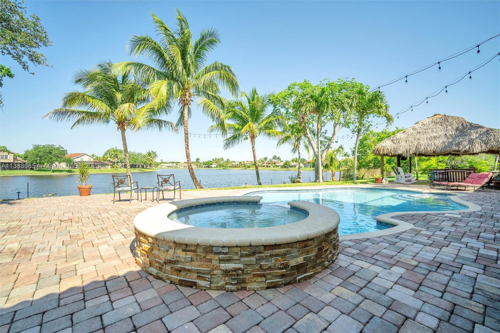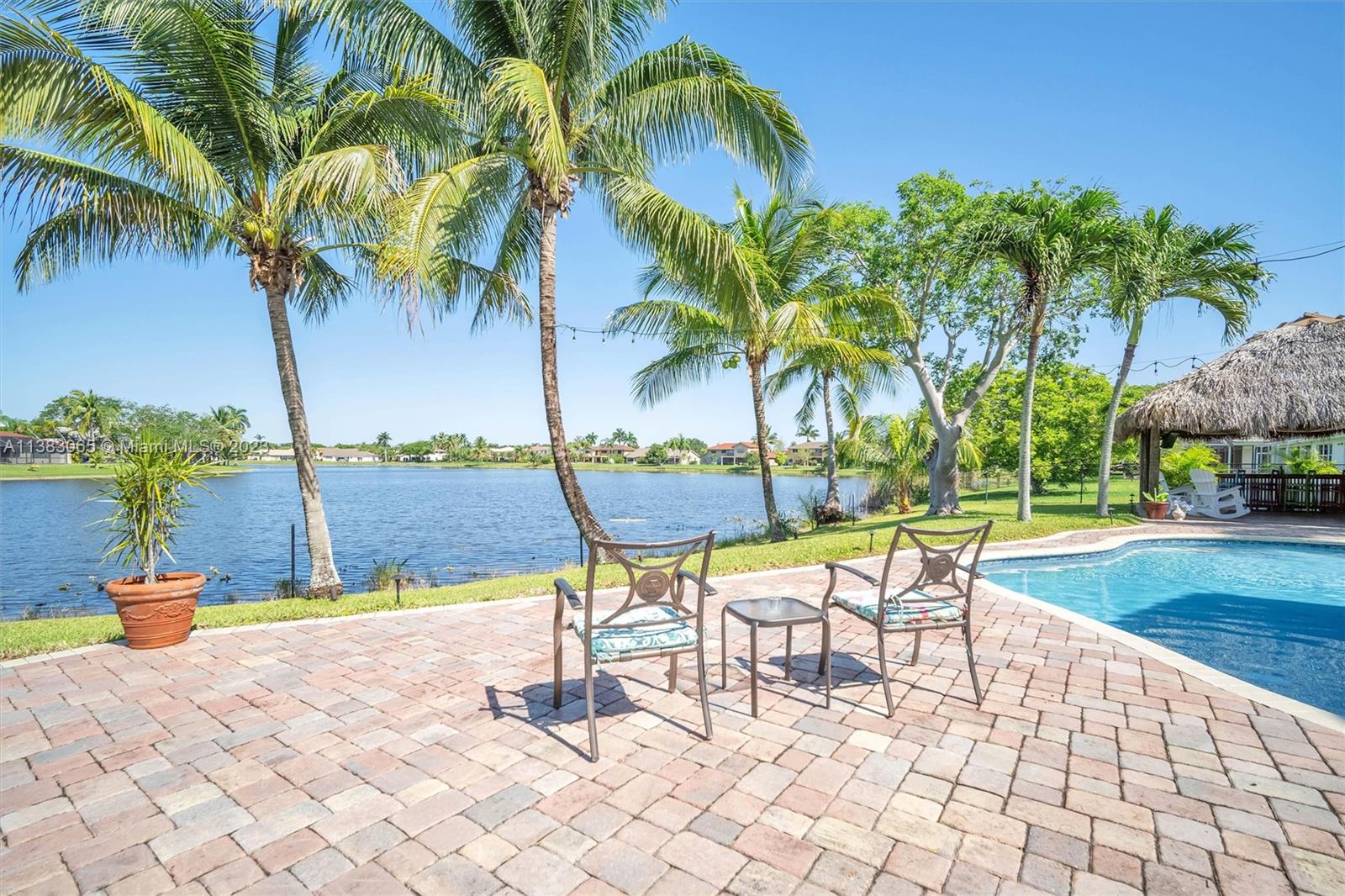 Priced $100k below appraised value, this beautiful home boasts stunning lake views, a free form pool, and a tiki hut making it the perfect oasis for relaxation and entertainment. You'll find a full bed and cabana bath downstairs in addition to recently installed plank laminate flooring, a family room with custom wet bar, a formal dining room, and a generous living room with soaring ceilings. Exterior features include a 10-year new roof, a partially covered patio, a fenced-in oversized yard, and ACCORDION SHUTTER protection on the 2nd story. This home is the epitome of comfort, offering a perfect blend of indoor and outdoor living in a picturesque setting. Pasadena Estates II has a low HOA fee that includes cable, internet, and free access to all of the amenities at nearby Rose Price Park.