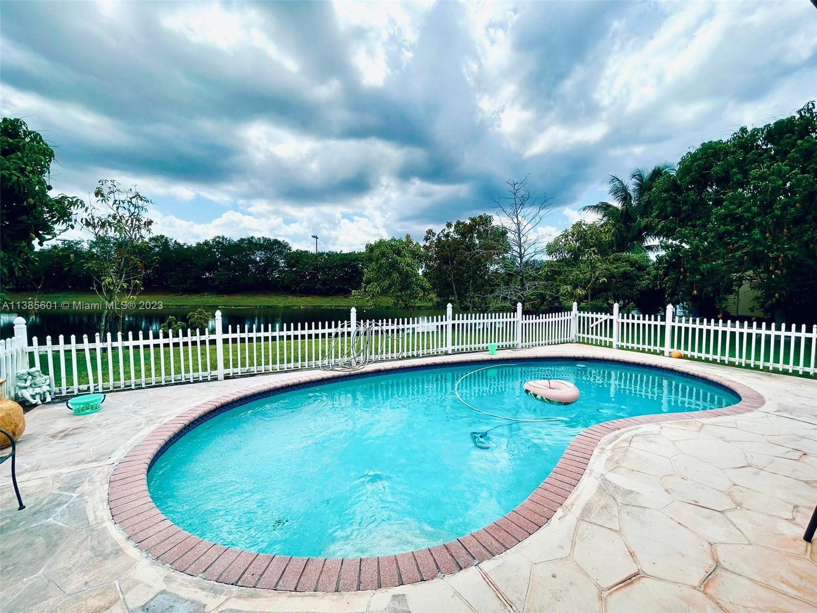 Beautiful 4/3 single family home with pool. Located on a cul de sac. High ceilings and nice open spaces. It has an additional open room that can be an office or family/tv room. Large master bedroom with walk in closets and large bathroom. Second bedroom with full bath that serves also for private access to the pool. Central AC in excellent conditions and new water heater. New remodeled kitchen with brand new appliances and granite counter tops. Formal dining room and a casual dining area. The backyard overlooks to a beautiful lake, giving amazing sunsets. The home offers a spacious two car garage and space for four cars on driveway. Walking distance to two strip malls, supermarkets and the Coral Square Mall. Located in a great school district.