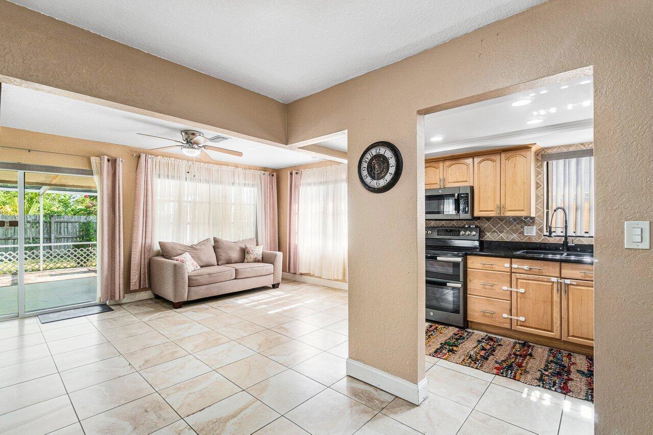 Location! Location! INVESTORS DREAM! NO HOA!! Perfect renovated Single-Family Home. This home features roof built 2015, two separate kitchens, two separate living areas, two separate entrance areas. 20x24 renovated family room with kitchen, newer appliances. 2017 a/c unit, newly built 2019 8x20 Front Entrance hurricane proof enclosure for house appeal with permits, extra-large driveway with over 10 parking spaces, air-conditioned controlled private access, functional two car garage converted with marble countertops inlaid in garage, hurricane impact glass sliding door and front door, hurricane shutters, extra-large screen patio 20x30 with sun shading in the back & privacy fence. A+rated school, close to fire station, safe neighborhood, 30 sec to I95 & excellent investment property.