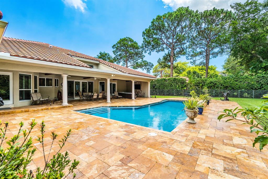 Absolutely MINT! This stunning property sited on nearly half an acre ultra-private lot in the coveted Woodfield Hunt Club is ready for its new & proud owner. Sprawling across a very functional, one level split-floorplan and 3795 living square feet w/ 5 beds and 4 full baths - the pride of ownership is truly exhibited throughout this home. As you enter through your modern double-door entry, you are greeted with voluminous ceilings, an open and airy feel with tons of natural light. Completely outfitted with high impact windows and doors throughout, you have great egress w/ five access points to your dream backyard. Large French pattern travertine deck, oversized private pool & fantastic outdoor living space with your 55 foot overhang w/ exposed wood beams and (click more)