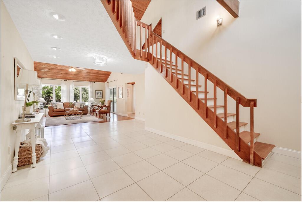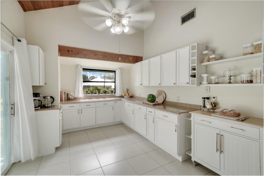 Welcome to this charming home nestled in Palm Beach Country Estates, where you can experience the tranquility of the countryside minutes from the Alton Town Center which offers amenities including dining, entertainment, and recreational activities. Situated on an expansive 1.15-acre lot, this property offers the perfect blend of spaciousness and convenience, all without the constraints of an HOA.Boasting 4 bedrooms and 3.5 baths, this home welcomes you with a warm and inviting atmosphere the moment you step inside. The open floor plan creates an airy and seamless flow throughout, ensuring both comfort and functional everyday living. One of the distinctive features of this residence is the stunning decorated imported wooden ceilings, which
