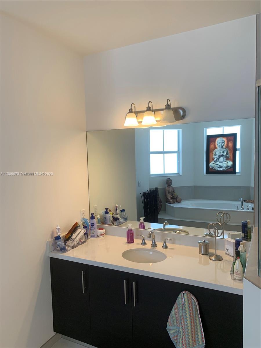 Welcome to Vintage Estates beautiful lake front single family home located in one of Doral's most sought after gated communities. This gorgeous 2,945 sqft home features 4 bedrooms and 4 bathrooms with stainless steel appliances and wood cabinetry throughout the kitchen and bathrooms. Master suite and two additional bedrooms located upstairs. 4th bedroom conveniently located on the main floor. This home is perfect for entertainment. The patio includes an outdoor barbecue kitchen and bar under a covered terrace and much more. Home may be sold with furnishings. Community Club House has pool, bar, gym, party room and more.