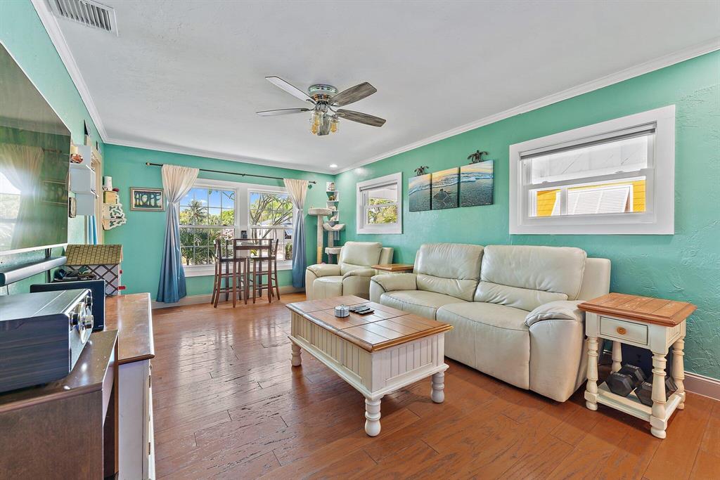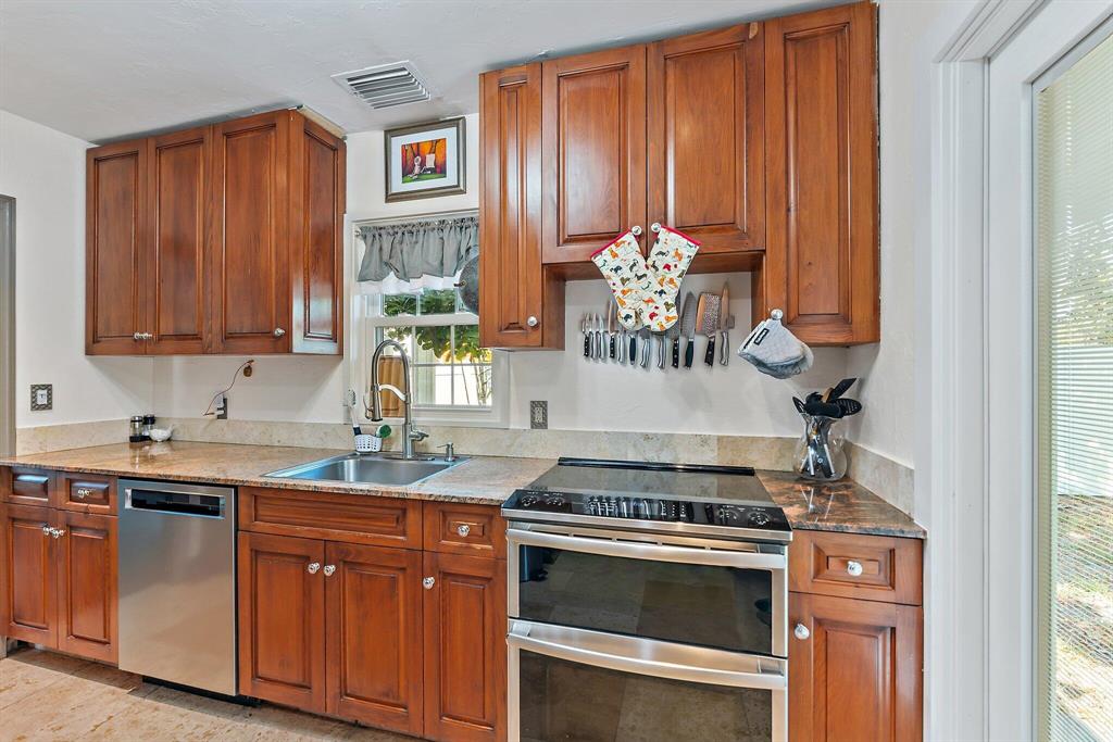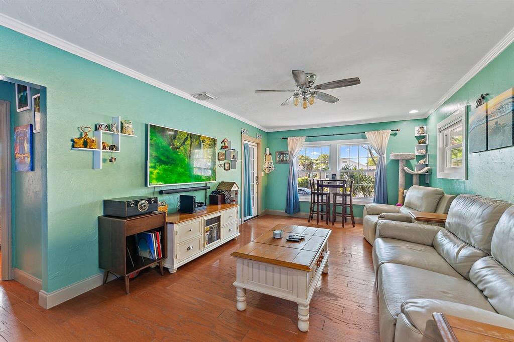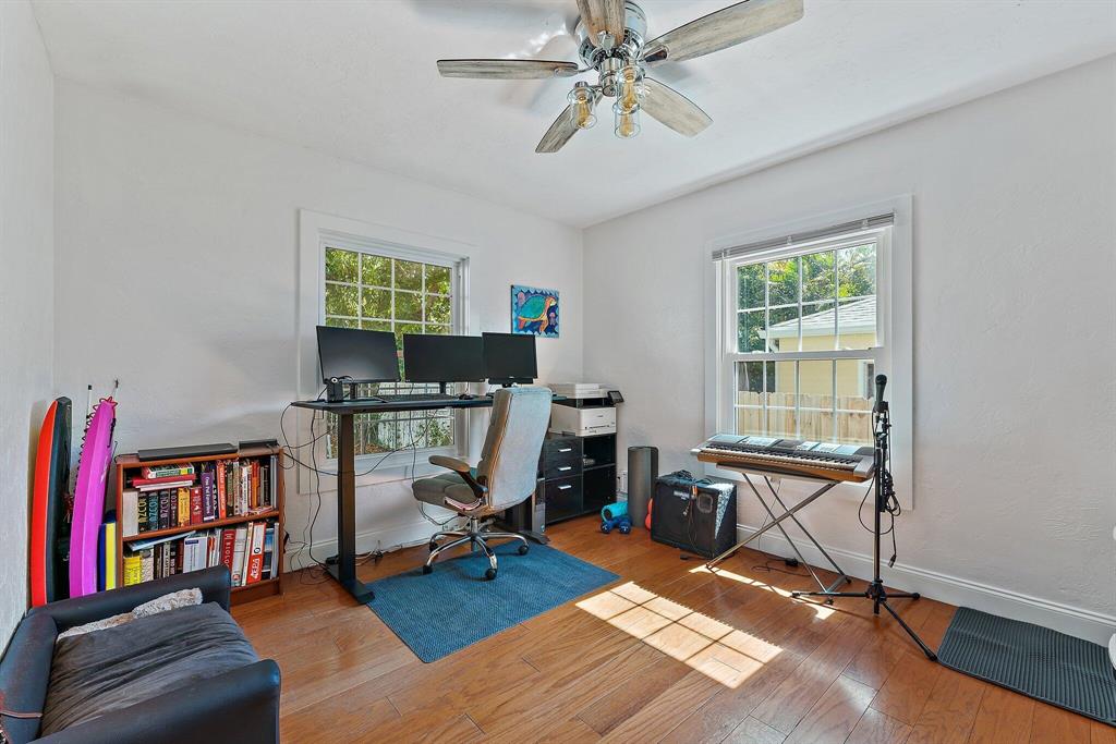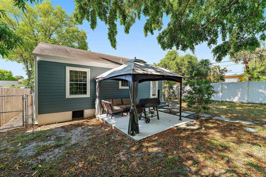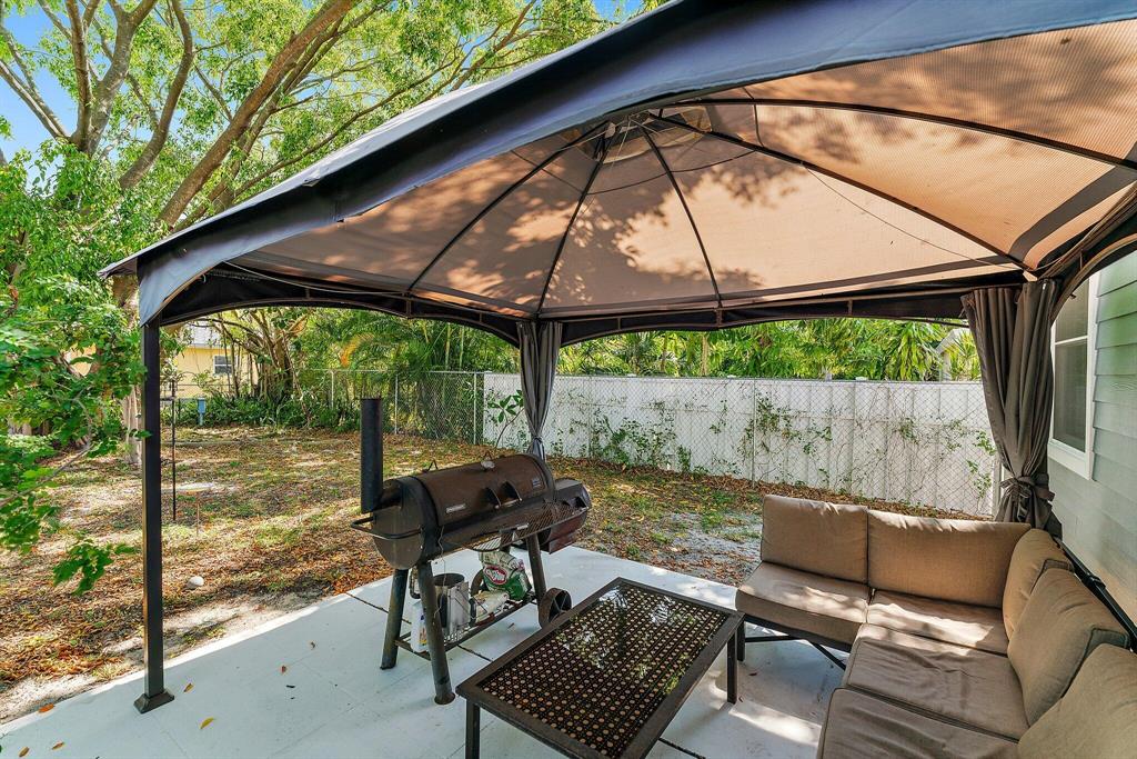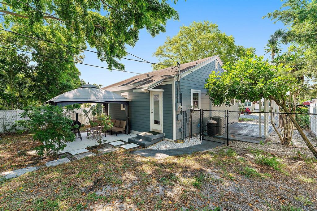 Charmer, welcoming front porch, hardwood floors in living area, lovely wood cabinetry, granite in kitchen, SS appliances, newer vanity in bath., W/D closet. new light fans, TV in living room remains. Bonus of impact glass windows, easy maintenance Hardy Plank exterior, tankless Hot Water, fenced in yard with huge shade tree, gazebo canopy on patio. Great location close to highway and US 1 with all the new restaurants and shops along Antique Row and new Joseph's Market. Short drive to Rosemary Square, Clematis St, green market, theater, Norton Art Museum and walkway along the beautiful intracoastal waterway. NO HOA, No restrictions