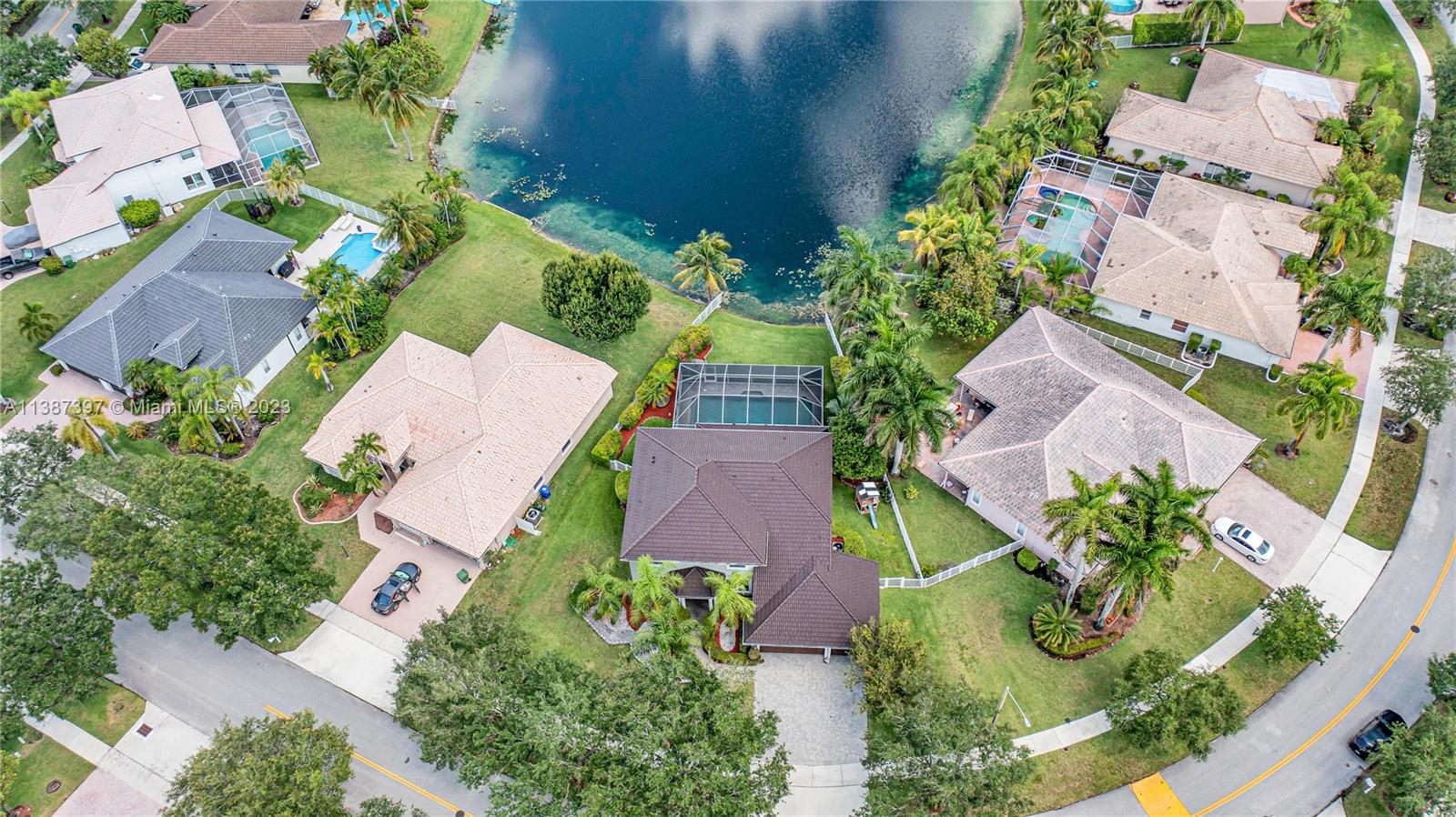 Unique home in Stoneridge Lake Estates Gated Community. Beautiful point lot home with extensive unobstructed lake front view. Perfectly appointed to radiate natural light and private outdoor living. Enjoy year long, outdoor Florida Life in your screened-in sparkling pool with with all day sunshine. One bedroom is located on the ground floor for ease and comfort. Open plan gourmet Kitchen, Casual Dining and Family Room. Separate Living Room and Formal Dining Room. Excellent Large Laundry Room. Updates can be seen throughout. Crown molding, impact windows and doors with newer appliances. 2 Newer ACs, Newer Water heater and Recently Sealed Roof. 3 car garage! This home is move in ready! The community boasts gated guard house, 2 tennis courts, a basketball court and park.Make it yours today!