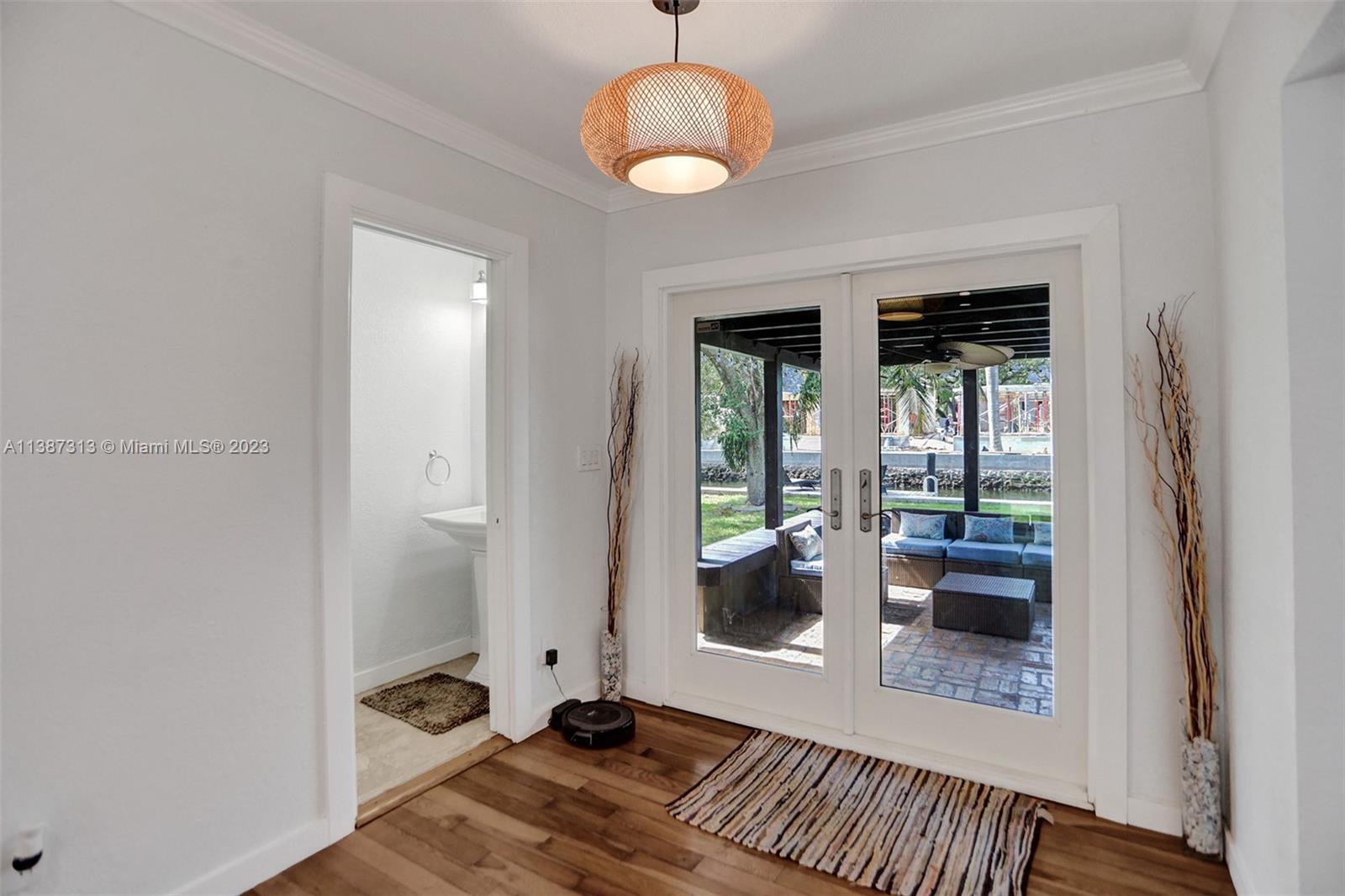 79' waterfront on Tarpon River! Beautifully updated 2 bedrooms 1 1/2 w/office/den single family home in sought after Croissant Park River! There is only 1 fixed bridge. The foyer & office/den are tiled. Real wood floors throughout the main living area, kitchen & bedrooms. Large living/dining area with gas burning fire place. Kitchen has been updated w/white shaker cabinets, white quartz countertops ,gray glass subway tiles, stainless steel appliances, gas range & eat in area. Nice size bedrooms w/walk in closets. Updated main bathroom w/spa feel. Updated 1/2 bath! Covered patio w/Chicago brick tiles. Outdoor kitchen! Firepit! Dock redone in 2016! Seawall redone 2018! Reinforced foundation 2020! New washer, dryer, gas water heater & microwave! Hurricane impact doors & windows! 1 car garage
