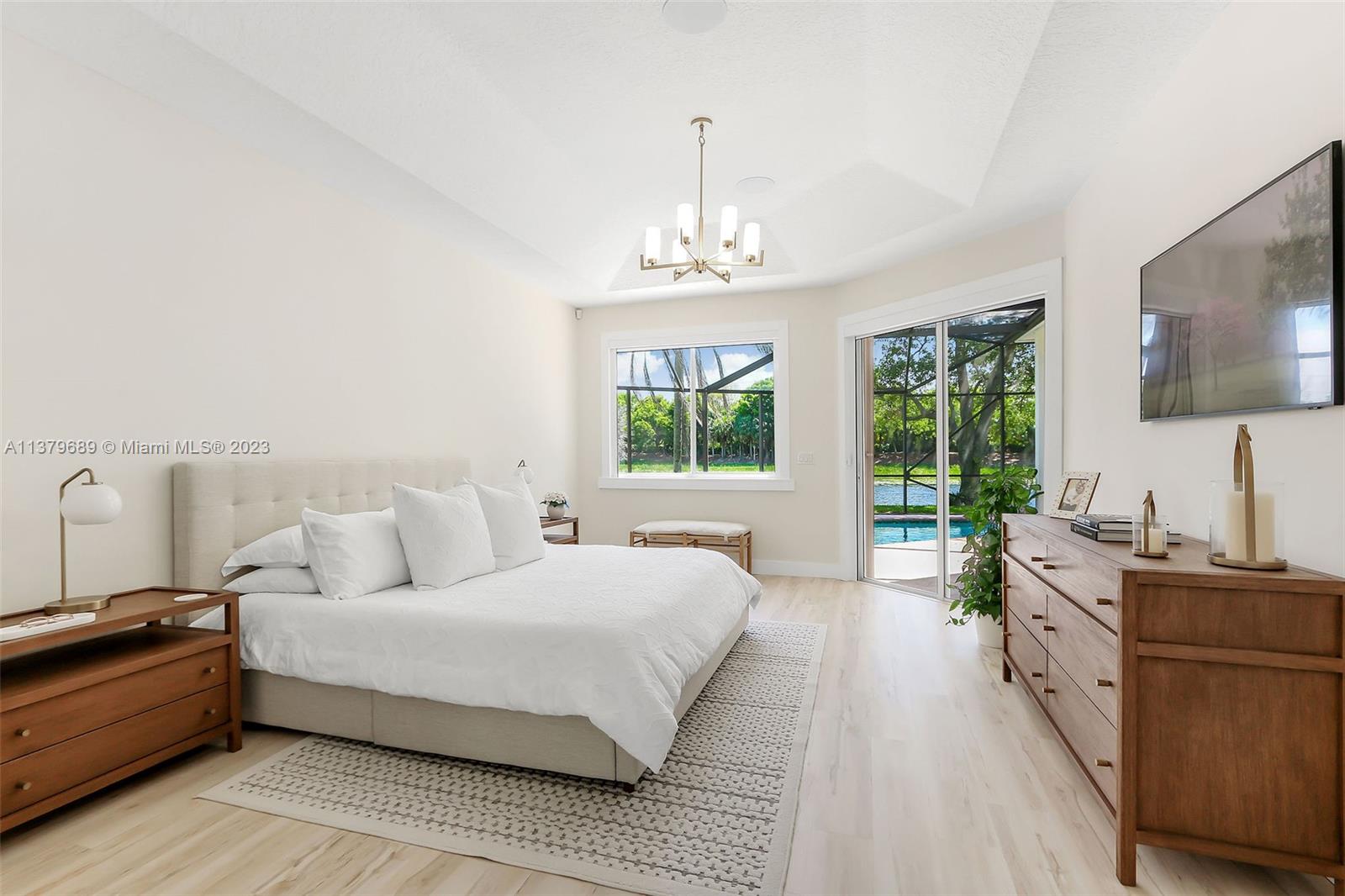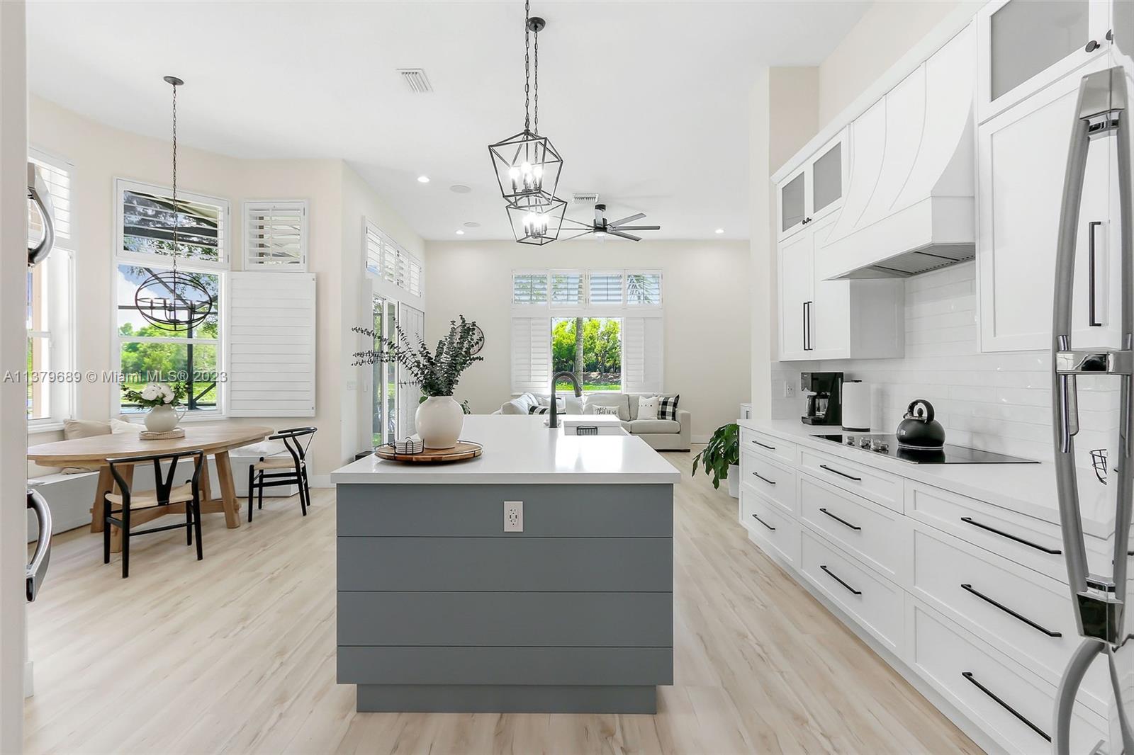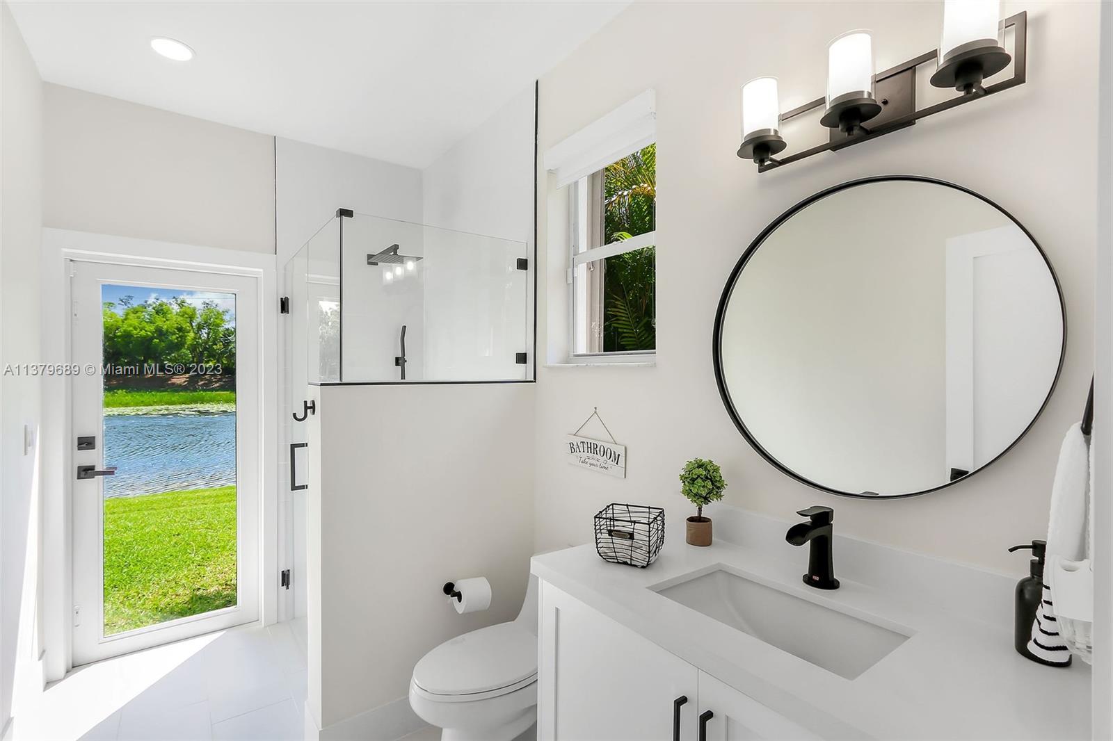 Located on a peaceful cul-de-sac in the prestigious Weston Hills sub, this home is filled with modern farmhouse touches with ultimate privacy and tranquility. It sits on a pointe lakefront lot with panoramic lake views in all rooms. Recently renovated, every fixture in this home was carefully curated for each space. The living room has access to a minibar and sliding doors that open out onto the screened-in back patio bringing the outdoors in. The kitchen is bright with custom cabinets built on-site, subway tile backsplash, new SS appliances, black fixtures throughout with a breakfast nook overlooking the lake. The primary suite features backyard-facing windows and a huge ensuite spa bathroom. Secondary bedrooms are also generously sized with closet storage, and custom plantation shutters.