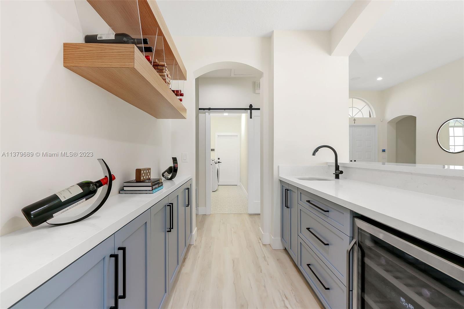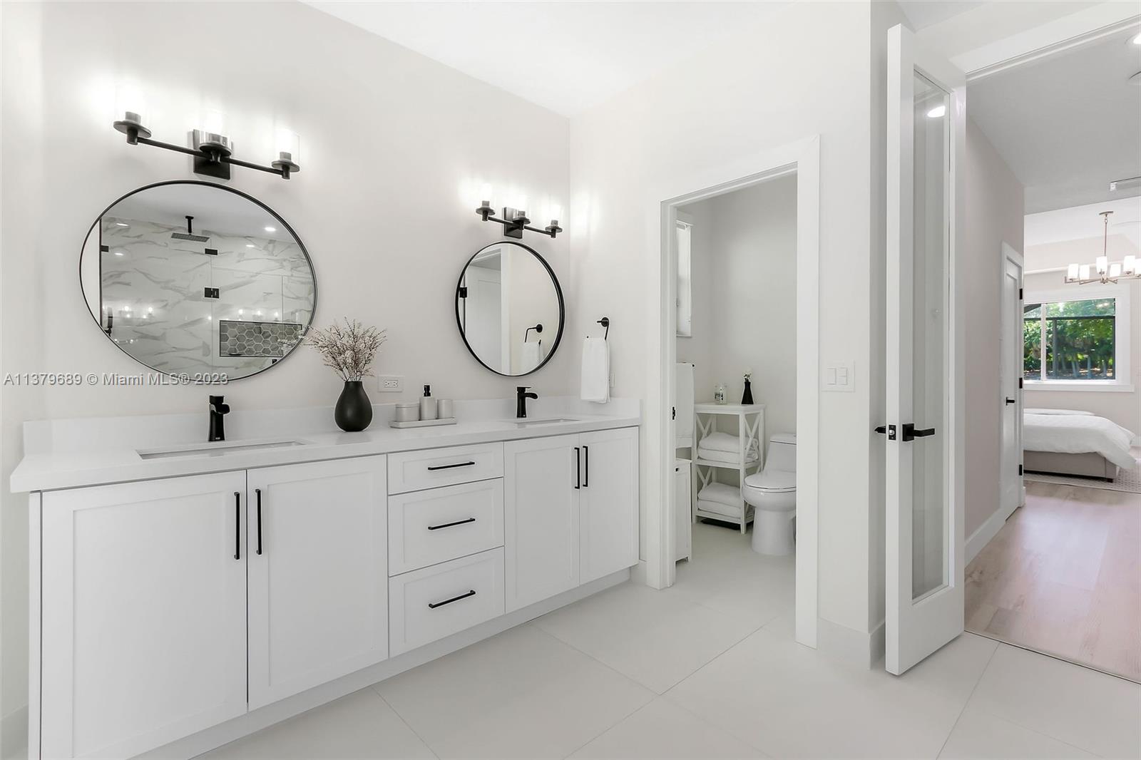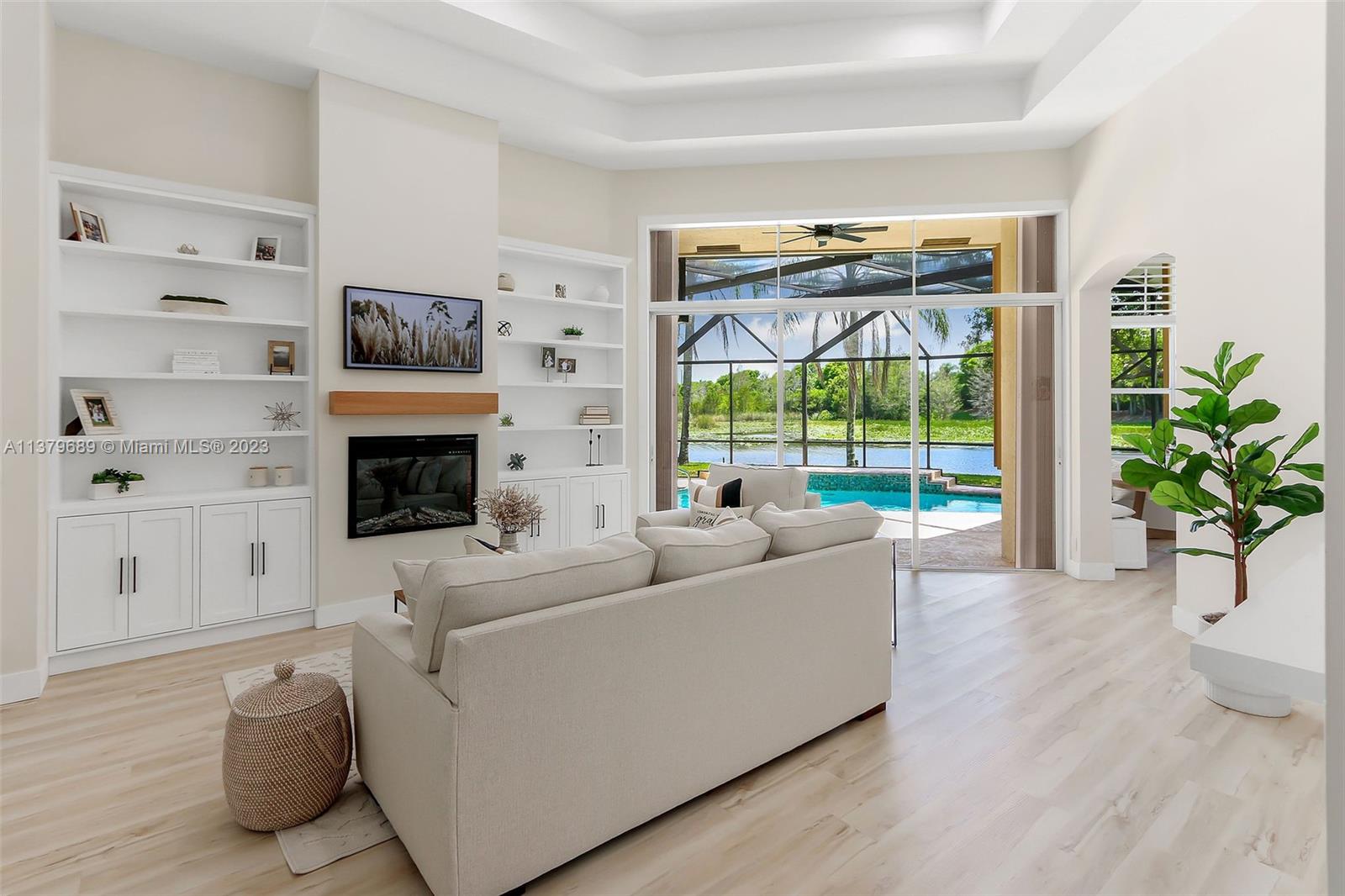 Located on a peaceful cul-de-sac in the prestigious Weston Hills sub, this home is filled with modern farmhouse touches with ultimate privacy and tranquility. It sits on a pointe lakefront lot with panoramic lake views in all rooms. Recently renovated, every fixture in this home was carefully curated for each space. The living room has access to a minibar and sliding doors that open out onto the screened-in back patio bringing the outdoors in. The kitchen is bright with custom cabinets built on-site, subway tile backsplash, new SS appliances, black fixtures throughout with a breakfast nook overlooking the lake. The primary suite features backyard-facing windows and a huge ensuite spa bathroom. Secondary bedrooms are also generously sized with closet storage, and custom plantation shutters.