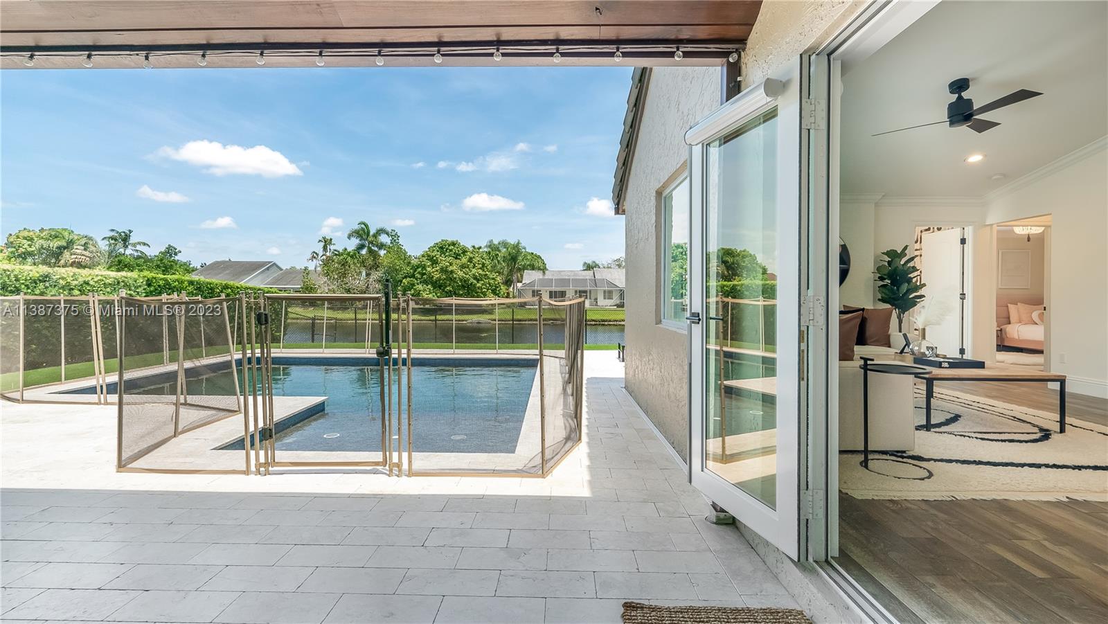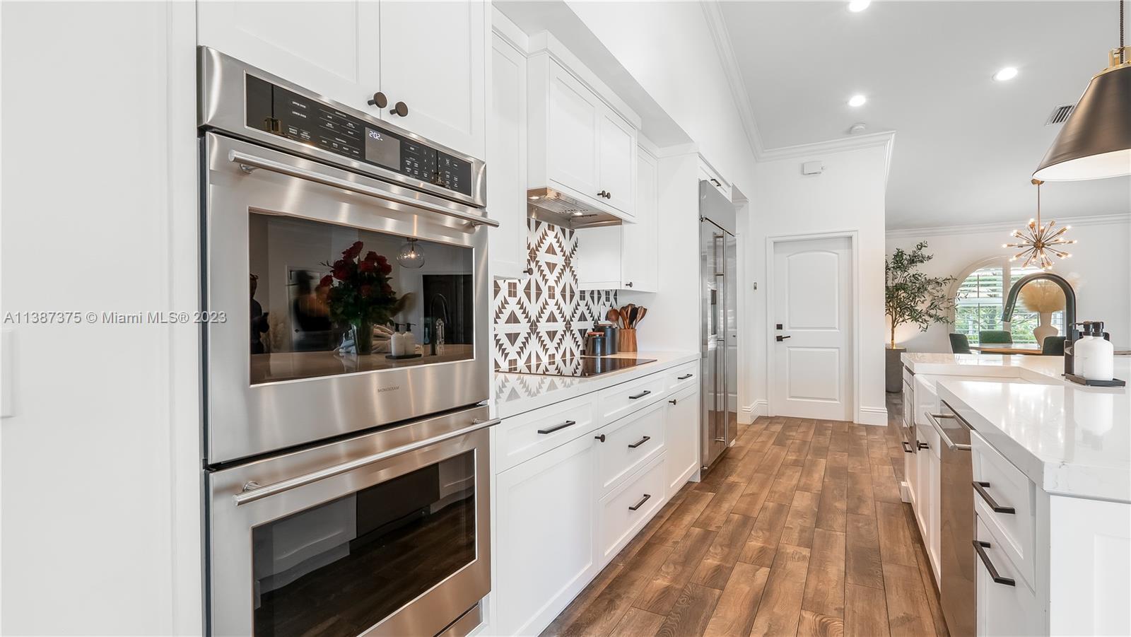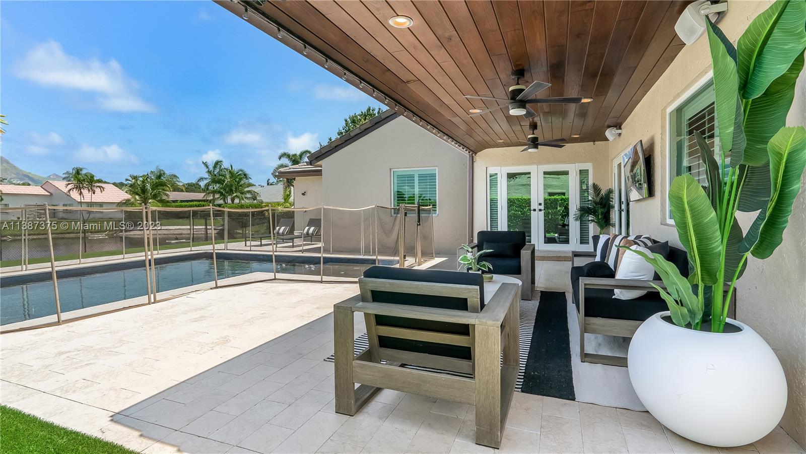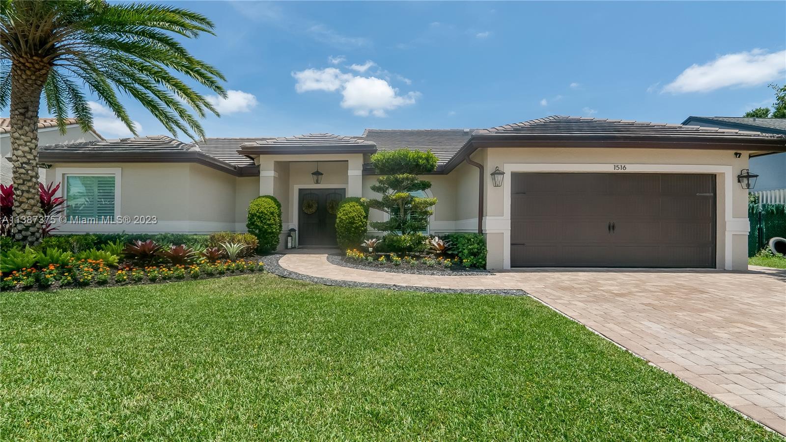 Marvelously Stylish and Upgraded Home with Heated Swimming Pool! Situated in a coveted community only ½ mile from excellent schools, this 4BR/3BA, 2,300+sqft property dazzles with lush tropical greenery and a custom paver driveway. Only updated by licensed contractors with appropriate permits, the interior features an open concept floorplan, plantation shutters, automatic blinds, and a gourmet kitchen with highly-rated GE Monogram appliances. Gather outdoors in the fenced-in and fully-turfed backyard, which has a heated PebbleTec pool with LED lights (controlled by app) and a covered lanai. Find tranquility in the primary bedroom with a California closet and chic en suite. Other features: insulated 2-car garage w/built-ins, newer roof (2018), near shops, and more! Call now for your tour!