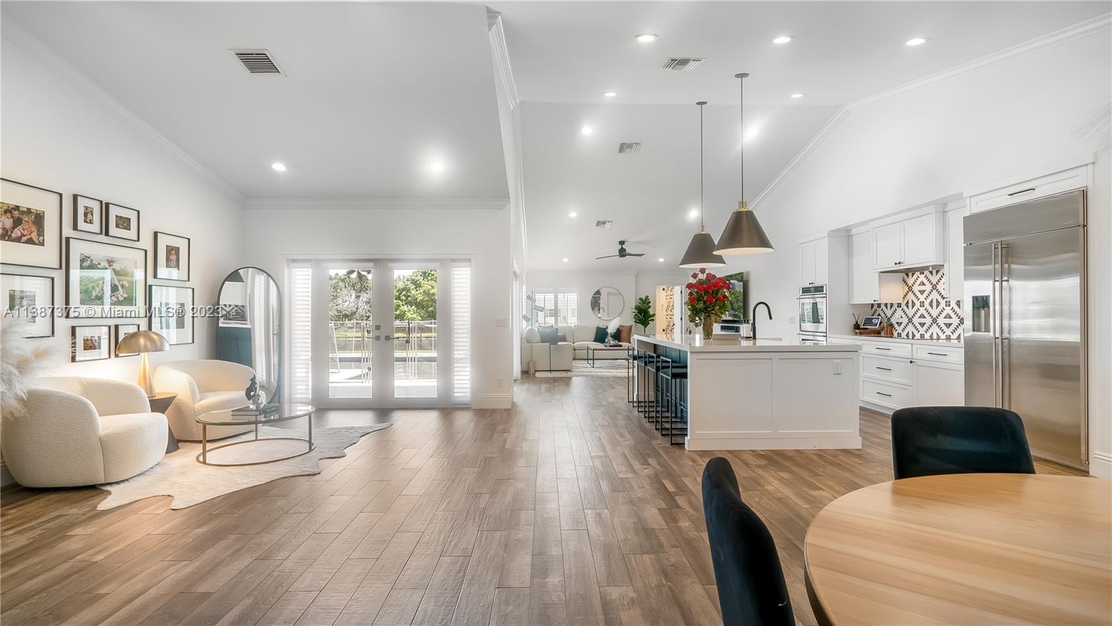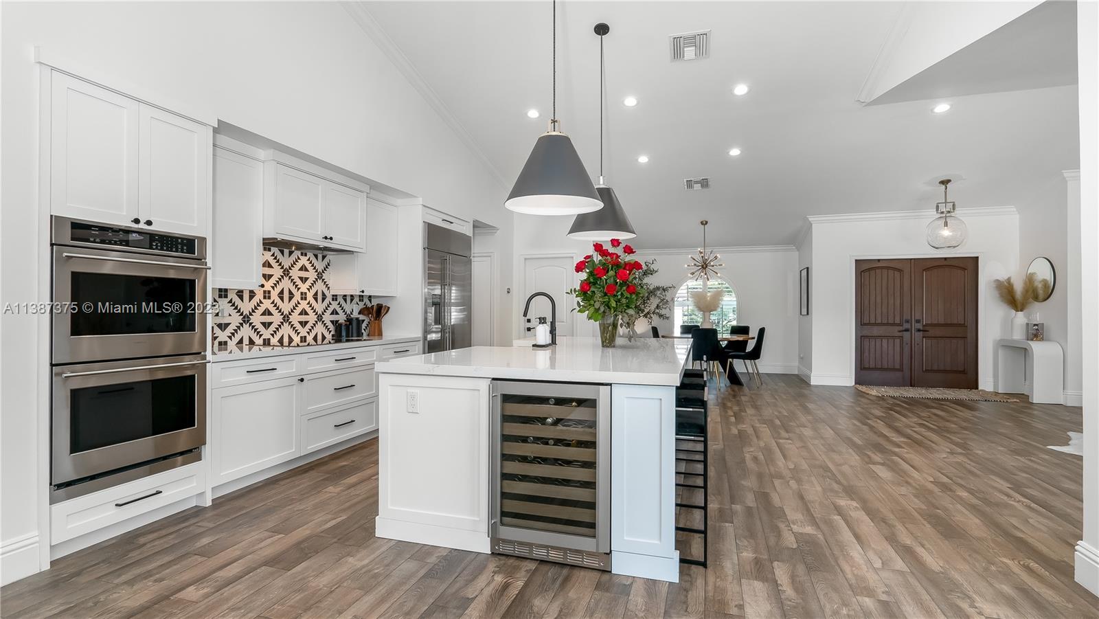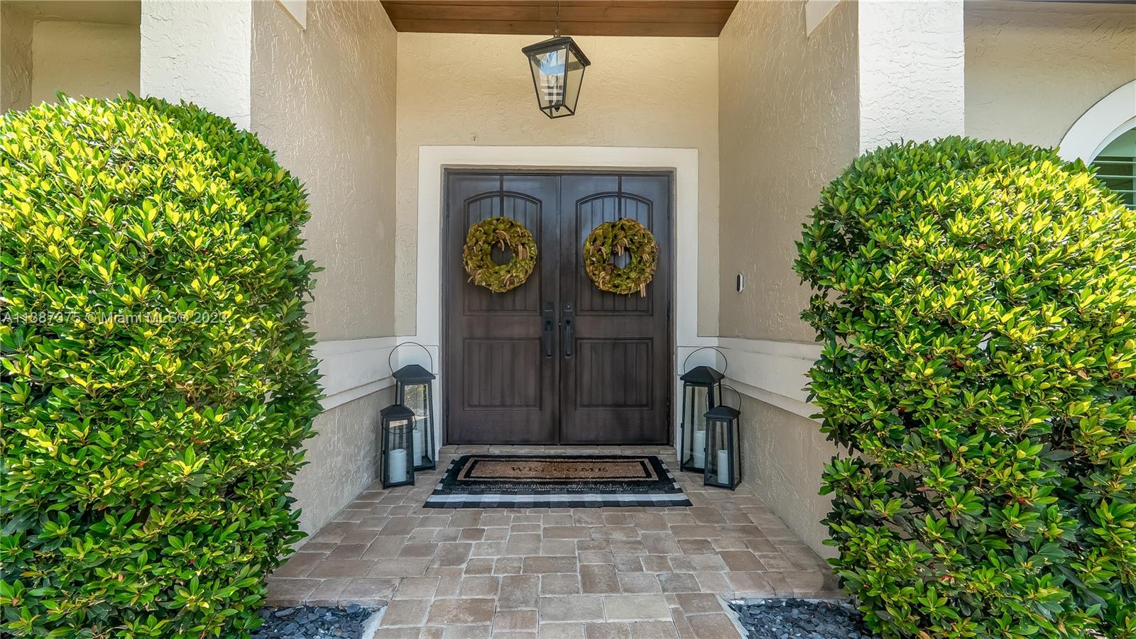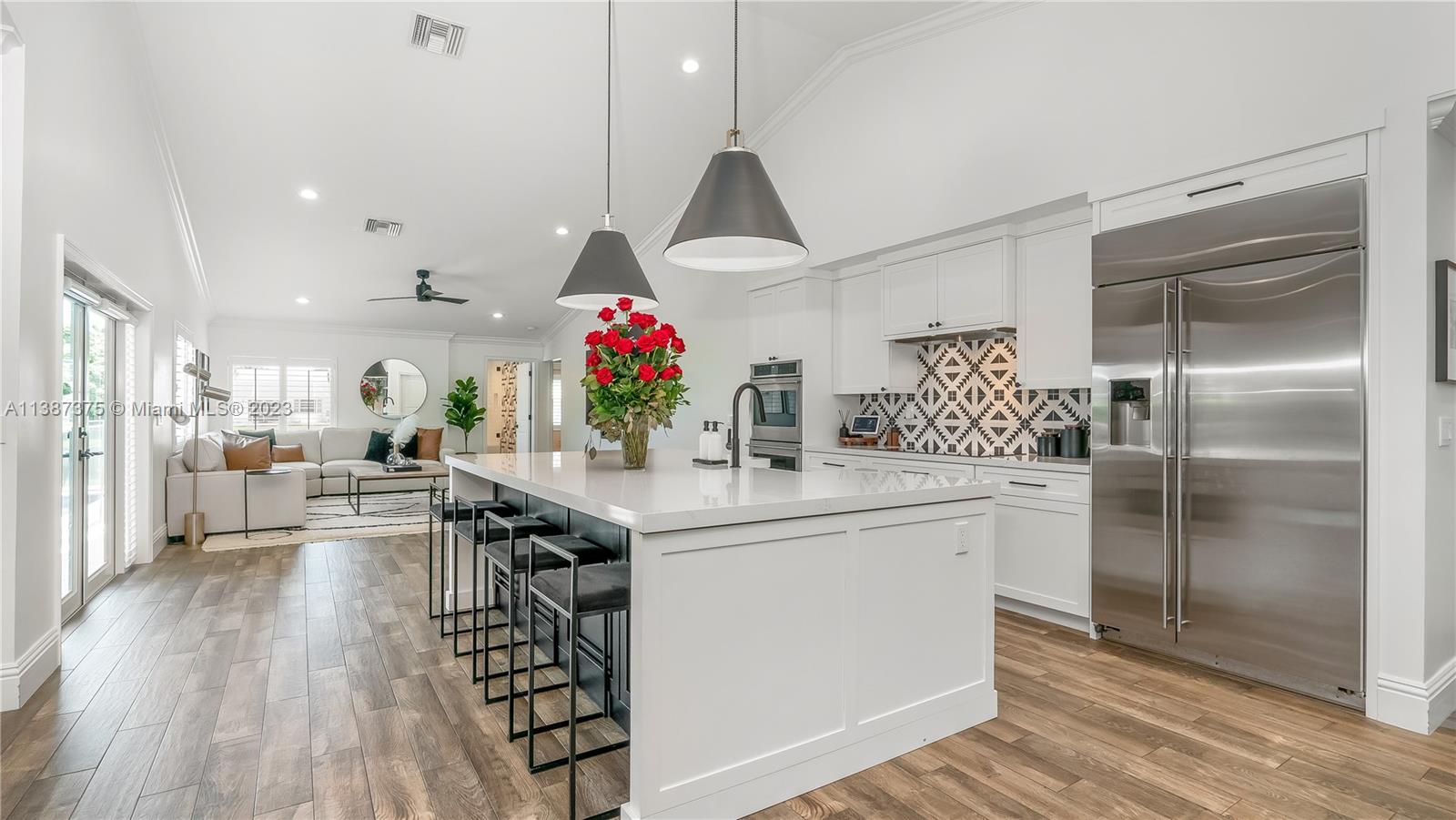 Marvelously Stylish and Upgraded Home with Heated Swimming Pool! Situated in a coveted community only ½ mile from excellent schools, this 4BR/3BA, 2,300+sqft property dazzles with lush tropical greenery and a custom paver driveway. Only updated by licensed contractors with appropriate permits, the interior features an open concept floorplan, plantation shutters, automatic blinds, and a gourmet kitchen with highly-rated GE Monogram appliances. Gather outdoors in the fenced-in and fully-turfed backyard, which has a heated PebbleTec pool with LED lights (controlled by app) and a covered lanai. Find tranquility in the primary bedroom with a California closet and chic en suite. Other features: insulated 2-car garage w/built-ins, newer roof (2018), near shops, and more! Call now for your tour!