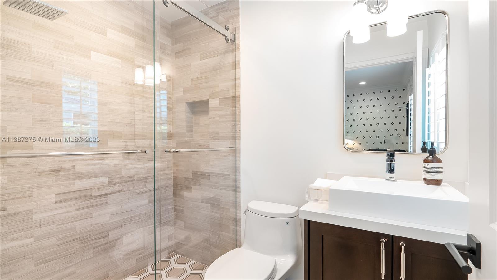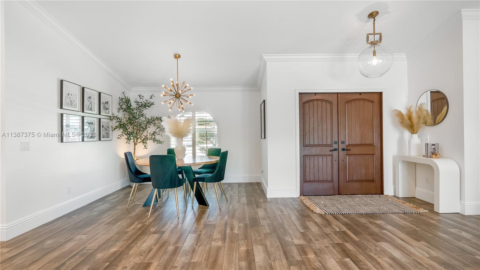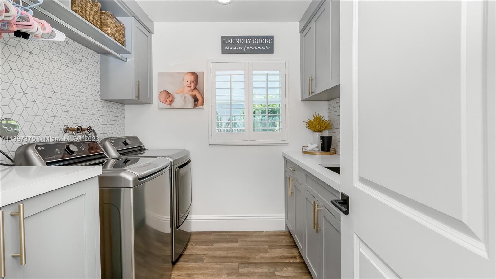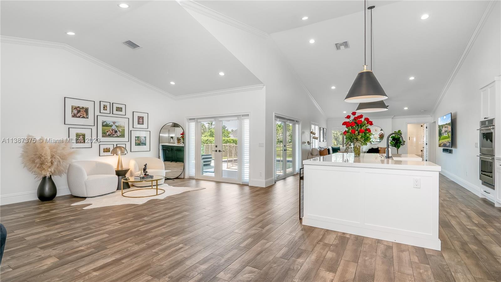 Marvelously Stylish and Upgraded Home with Heated Swimming Pool! Situated in a coveted community only ½ mile from excellent schools, this 4BR/3BA, 2,300+sqft property dazzles with lush tropical greenery and a custom paver driveway. Only updated by licensed contractors with appropriate permits, the interior features an open concept floorplan, plantation shutters, automatic blinds, and a gourmet kitchen with highly-rated GE Monogram appliances. Gather outdoors in the fenced-in and fully-turfed backyard, which has a heated PebbleTec pool with LED lights (controlled by app) and a covered lanai. Find tranquility in the primary bedroom with a California closet and chic en suite. Other features: insulated 2-car garage w/built-ins, newer roof (2018), near shops, and more! Call now for your tour!