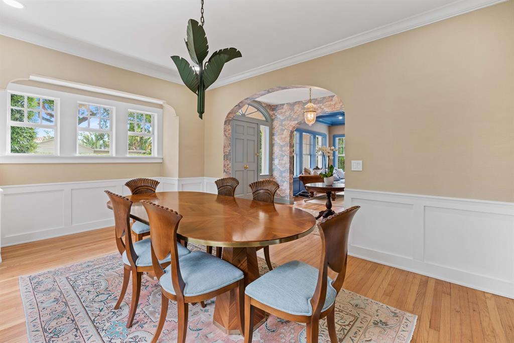 The perfect family compound awaits in prestigious El Cid. One-of-a-kind in both architecture and opportunity, this gorgeous Dutch colonial is nestled on a quarter-acre of lush gardens. Mature palms and trees create pockets of shade and privacy throughout the estate, lining brick walking paths and inviting entertaining spaces. Fully remodeled for modern comfort without sacrificing any historic charm, the custom appliances and immaculate finishes elevate everyday living to an extraordinary experience. Grand arched doorways stretch between coffered ceilings and gleaming hardwood floors as you enter the main house. Gather with friend
