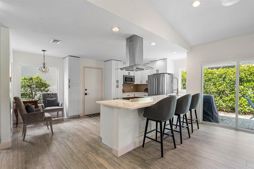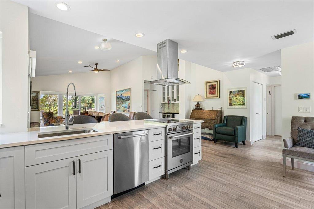Fully renovated 3-bedroom, 2-bath house is situated in a picturesque location directly on the 6th hole of the West course, offering stunning views and a serene atmosphere. The open floor plan creates a spacious and inviting ambiance throughout the home.As you step inside, you are greeted by a bright and welcoming living area. Open floor plan with high ceilings. Large windows allow plenty of natural light to flood the space, accentuating the beauty of the surrounding landscape.The kitchen is a highlight of the home, featuring Italian made Bertazzoni appliances, sleek quartz countertops, and ample storage space. It seamlessly flows into the dining area, creating an ideal space for entertaining guests or enjoying family meals. Two bedrooms in the front of the house share a full bath