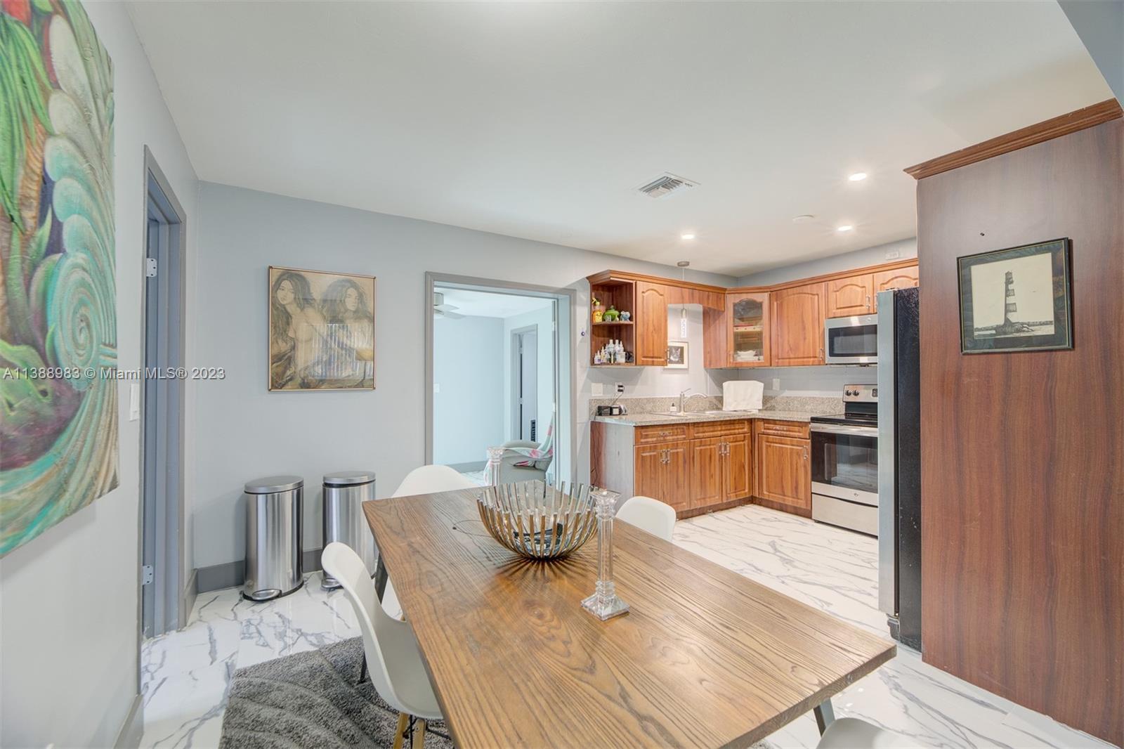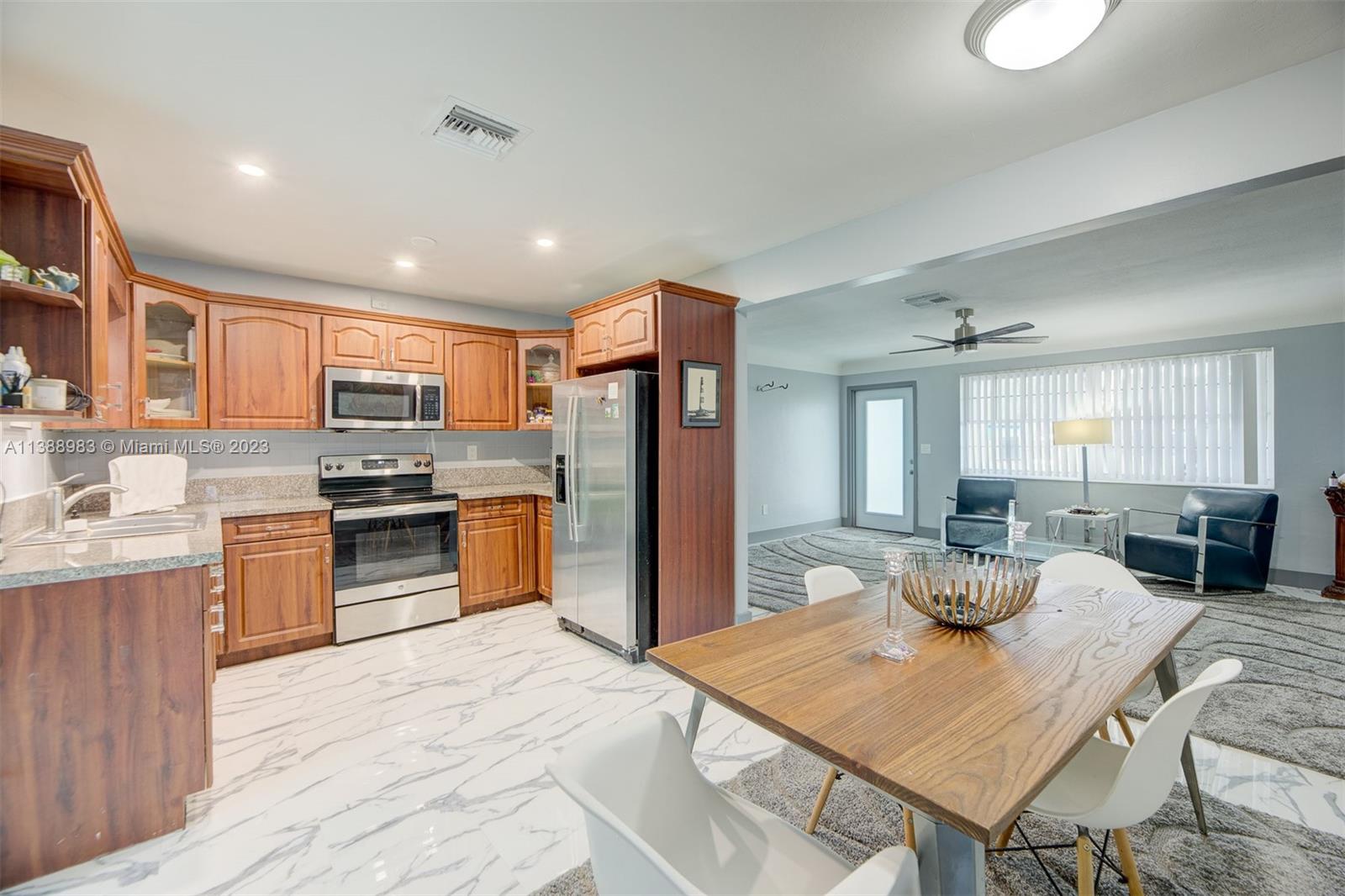 Nicely done 4 bedroom, 2 bath home with a garage. This home has many features including; oversized corner lot, stainless steel appliances, modern bathrooms, spacious open floor plan, large utility room, mature landscaping, new energy efficient A/C, separate living and dining area, no HOA fees, and lots of parking. Great home in a great East Pompano Location. New 6 feet privacy fence. New A/C including complete duc work replacement. LOTS OF NEW IMPACT GLASS Easy to Show!! Actual Living Sqft 1,500 as per Owner