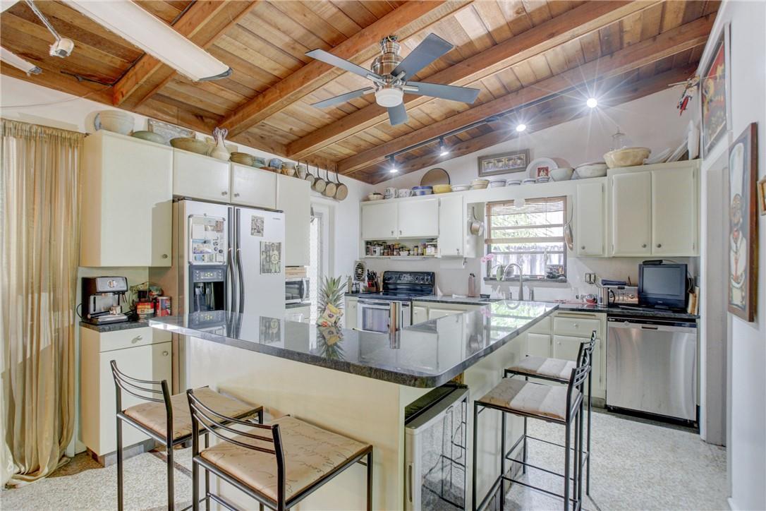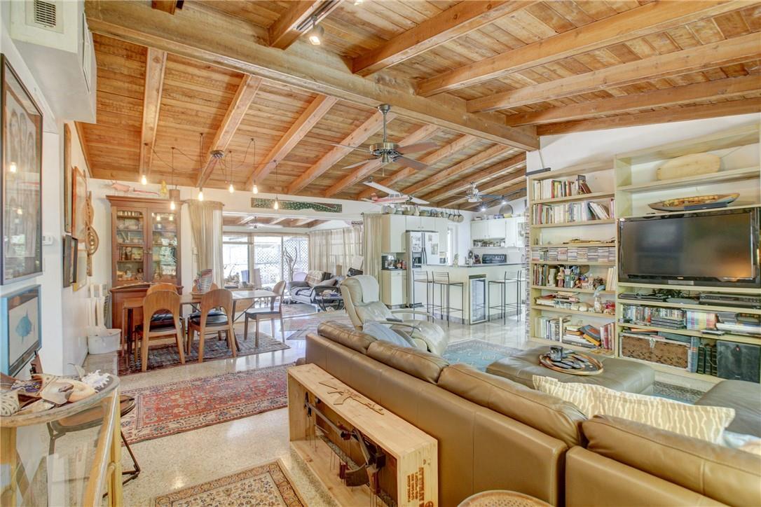 Welcome to the highly sought after Lauderdale Isles. This 2-bed, 2-bath gem is a coastal paradise, highlighting 95 feet of waterfront ocean access without any fixed bridges and a stunning river view. Its open, bright, and airy interior creates a welcoming atmosphere. The pool area features a bar and seating area, ideal for entertaining, south side yard sports a bocce court, while the private dock invites you to explore the waterways at your leisure. Inside features charming terrazzo floors and cedar ceilings. Conveniently located close to major highways, roads, shopping, entertainment, and much more, this home offers convenience and elegance in one. Any / all measurements are estimates and should be verified by the buyer. SURVEY ATTACHED.
