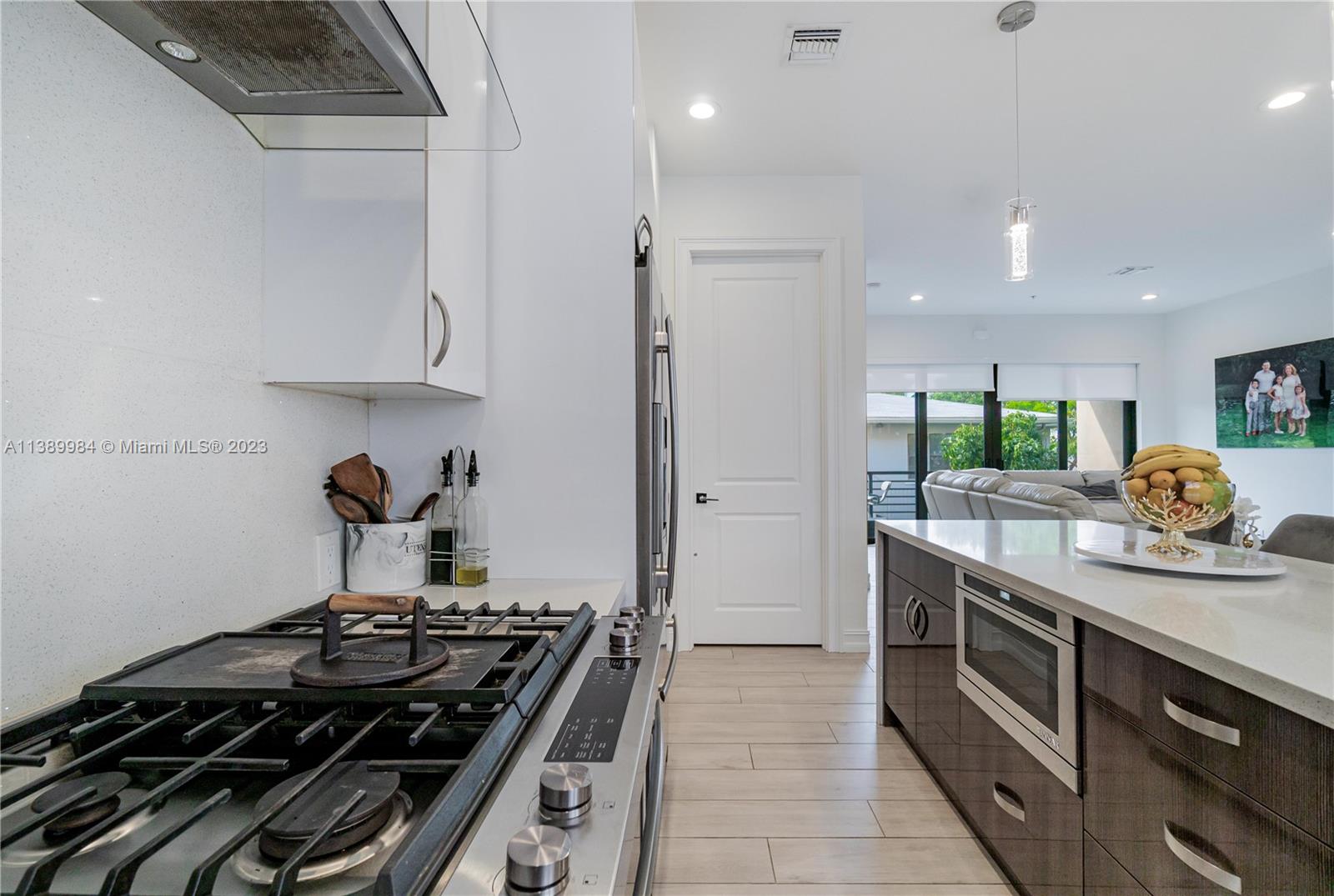 This newer construction FURNISHED townhome is located in the boutique Victoria Park community of The Mandarin. On the second floor, there is a generous open living area and kitchen, a master bedroom, a third bedroom, a bonus open den area, and a laundry room. An impressive turnkey property, this property is equipped with impact windows, an impact garage door, a tankless water heater, a private fenced yard, and designer-selected light gray Montana Maple 8"x45" plank tile flooring, high ceilings, custom laminated lacquer cabinetry in the kitchen and bathrooms, JennAire stainless steel appliances, quartz countertops, 8 foot solid core interior doors with 2-panels, Ecobee air conditioning controls, and ultra high-end bathroom finishes.