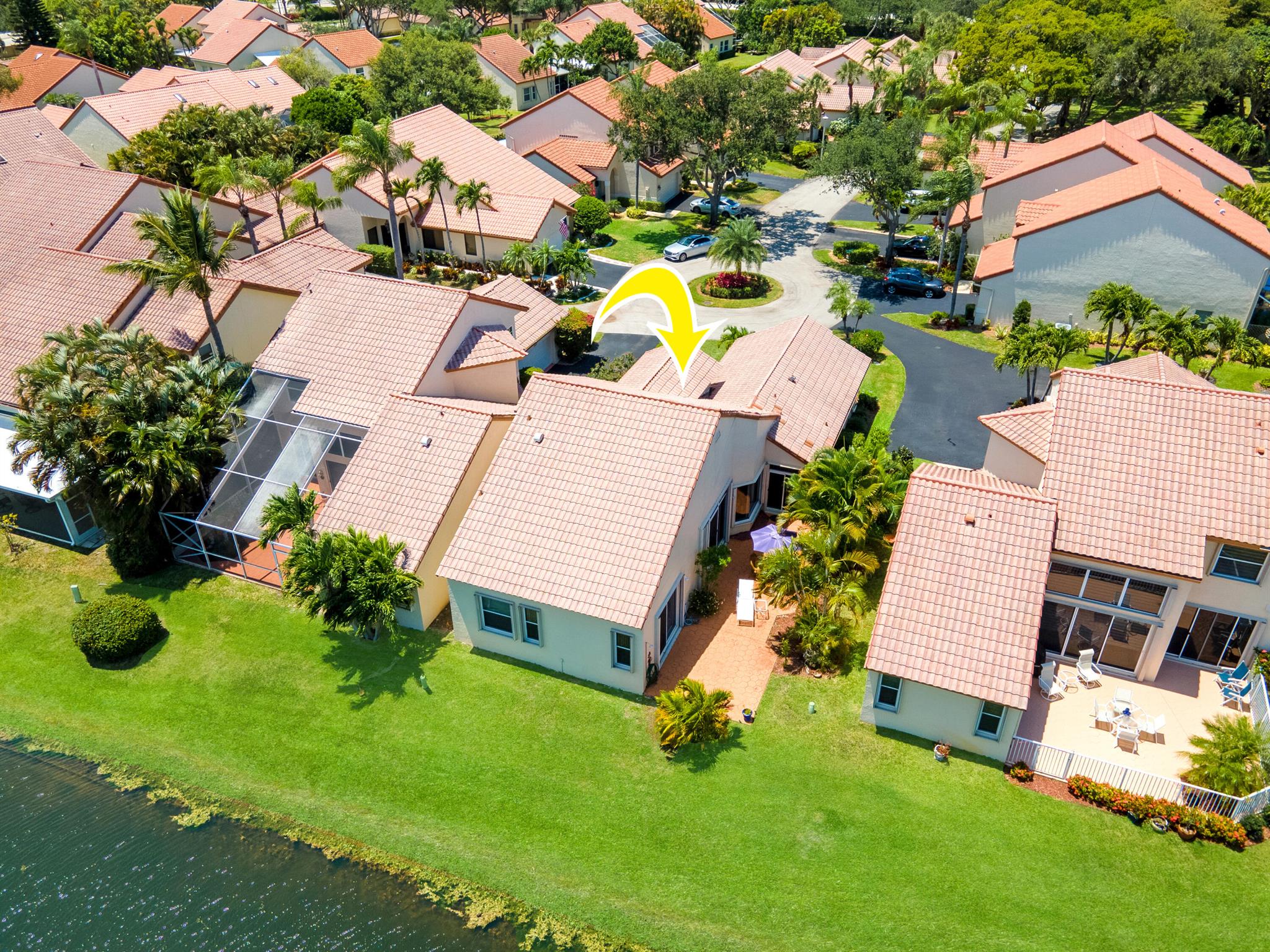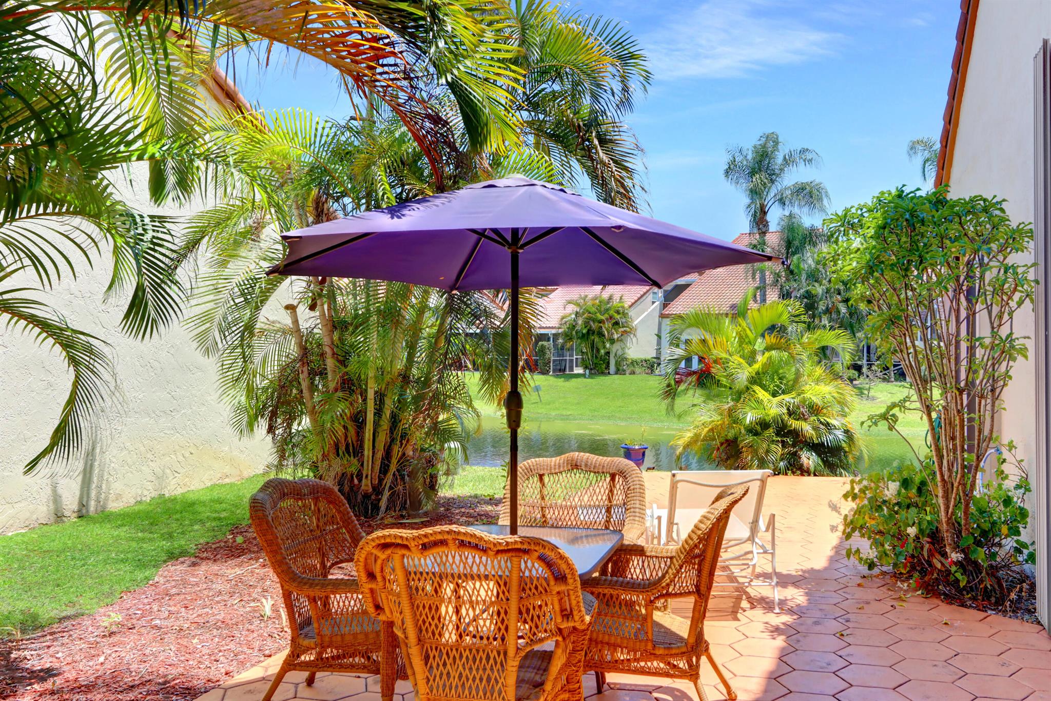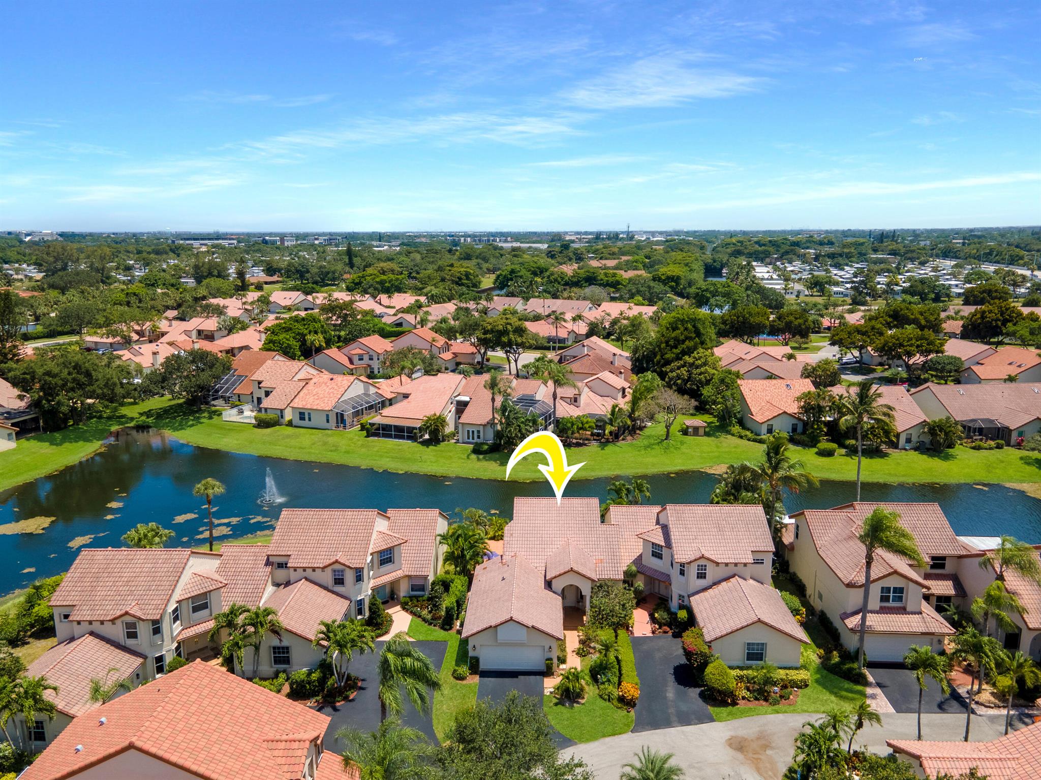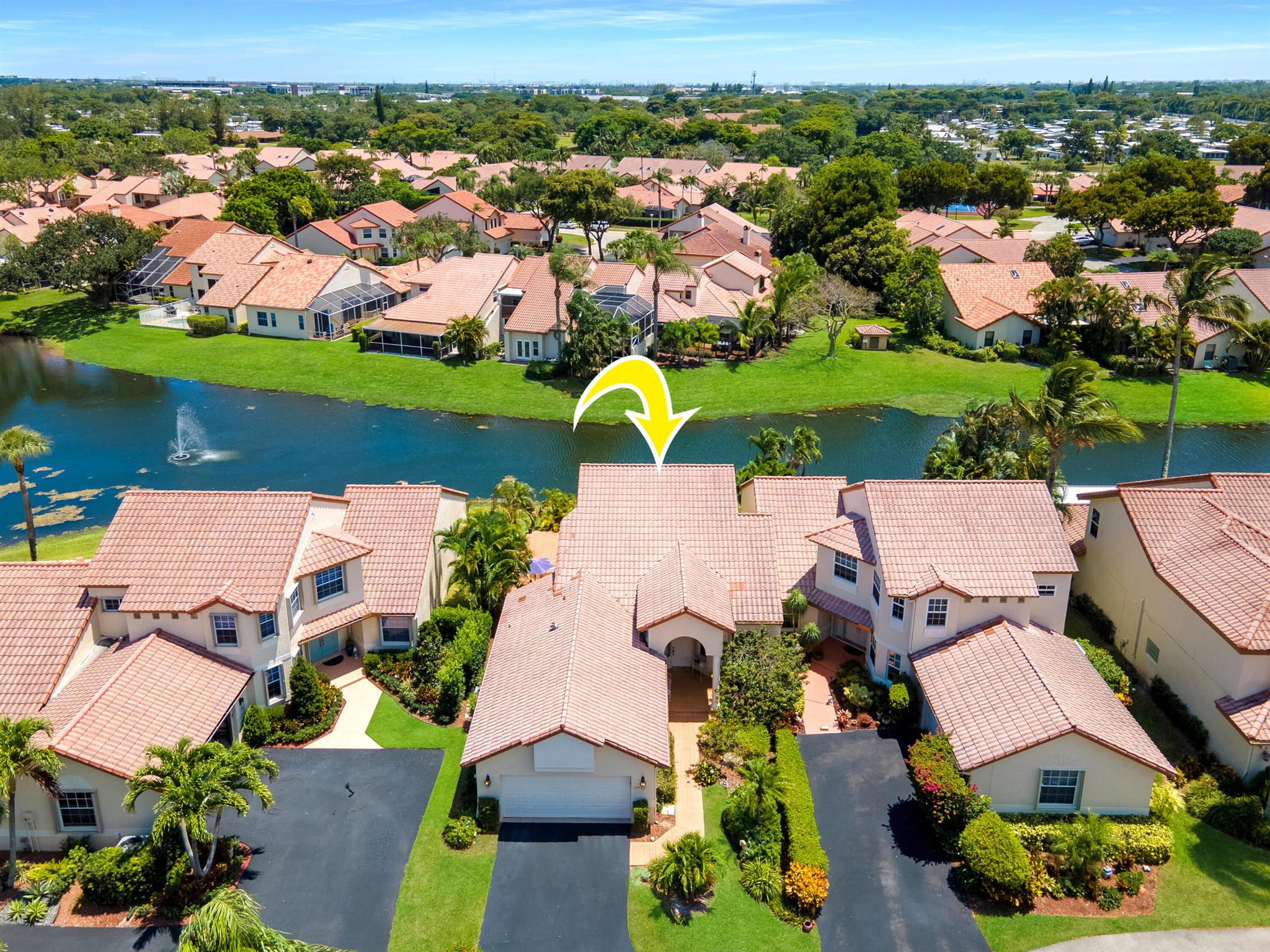 Welcome to your warm and inviting lakefront townhouse! This property features three bedrooms, two baths, and a spacious two-car garage, providing ample space for your needs.Start your day with a beautiful water view right outside your window or unwind on the private water view patio with a glass of wine in hand. The open floor plan boasts laminate floors in the living room, while the separate bedrooms offer privacy and tranquility.The white cabinet kitchen with a breakfast area is both charming and functional, and a laundry room adds convenience to your daily routine. Accordion hurricane shutters ensure your safety and peace of mind.