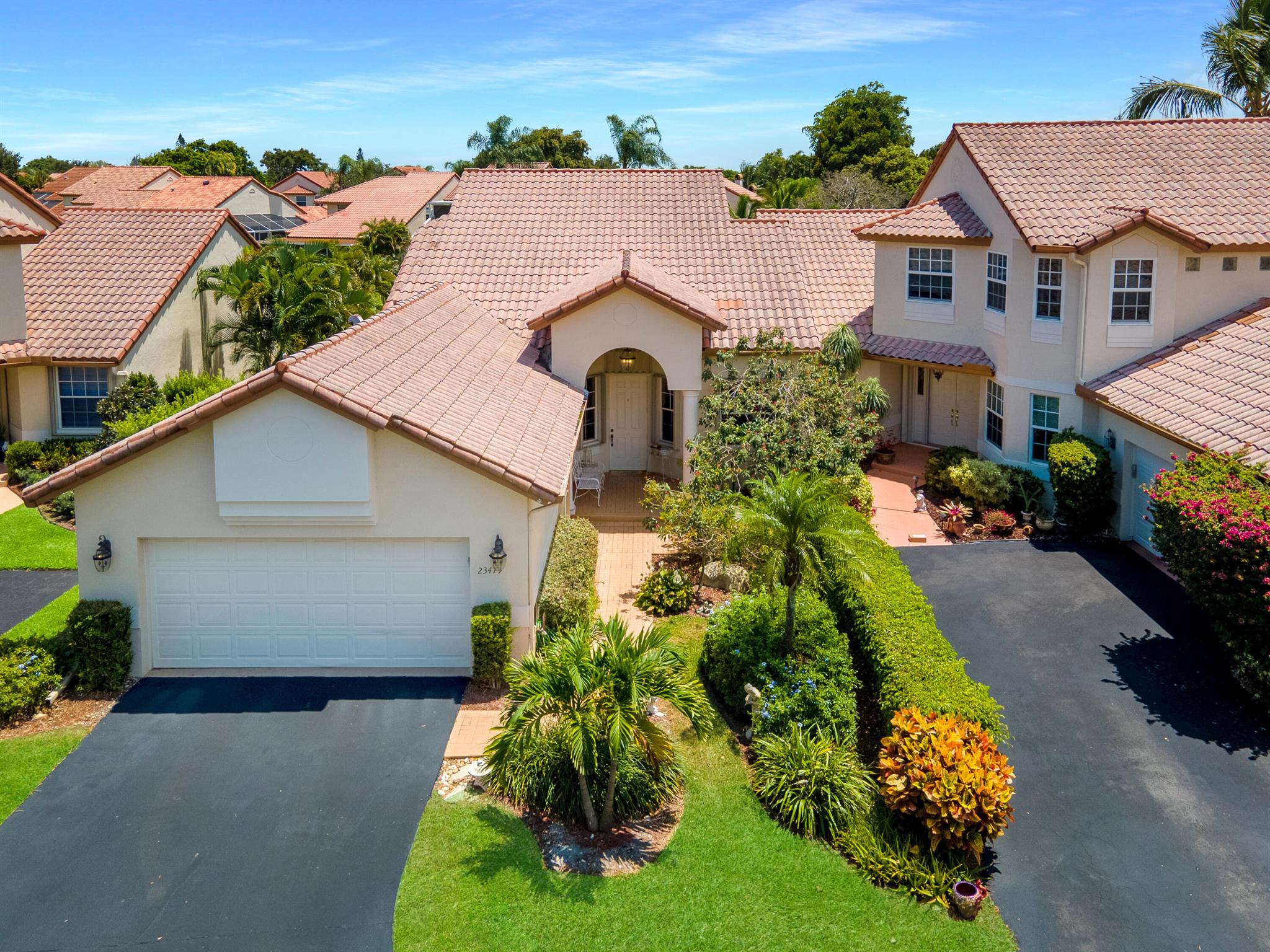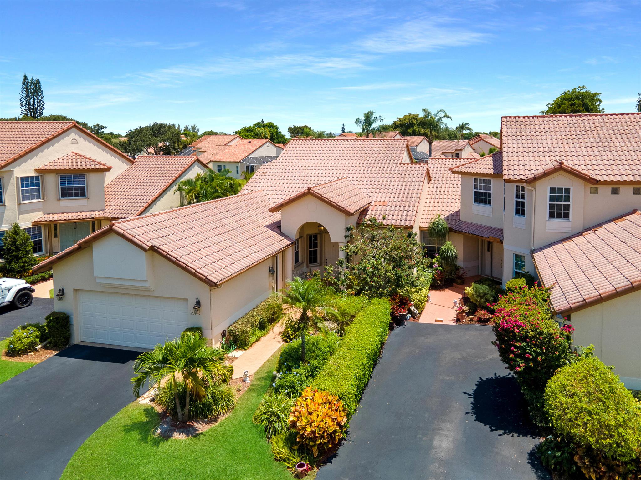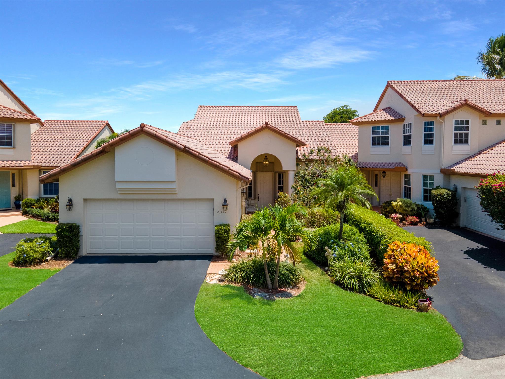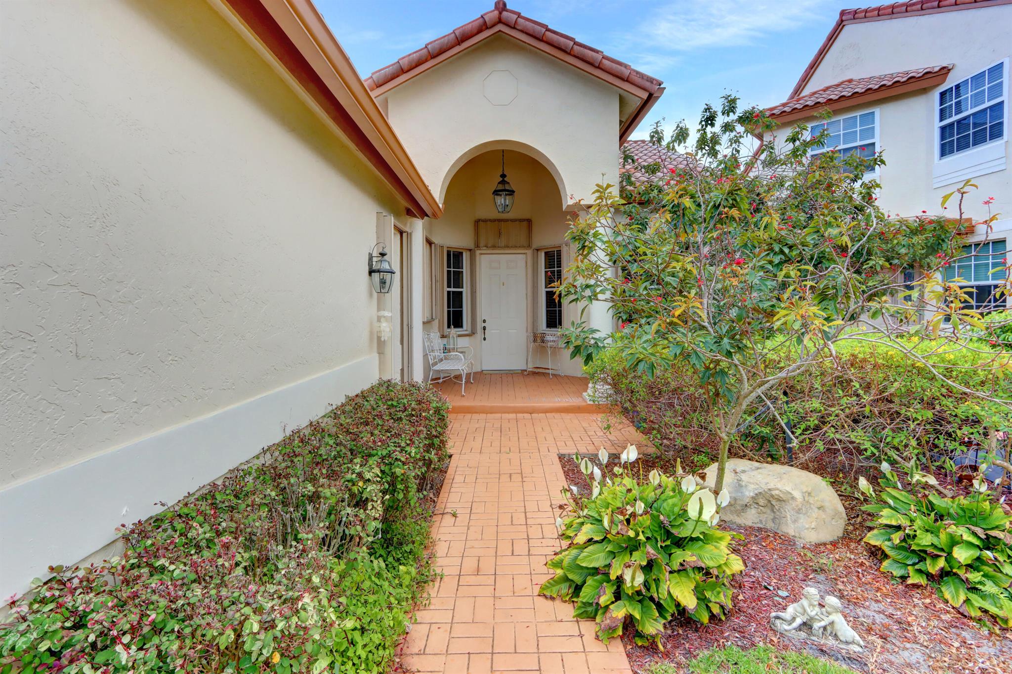 Welcome to your warm and inviting lakefront townhouse! This property features three bedrooms, two baths, and a spacious two-car garage, providing ample space for your needs.Start your day with a beautiful water view right outside your window or unwind on the private water view patio with a glass of wine in hand. The open floor plan boasts laminate floors in the living room, while the separate bedrooms offer privacy and tranquility.The white cabinet kitchen with a breakfast area is both charming and functional, and a laundry room adds convenience to your daily routine. Accordion hurricane shutters ensure your safety and peace of mind.