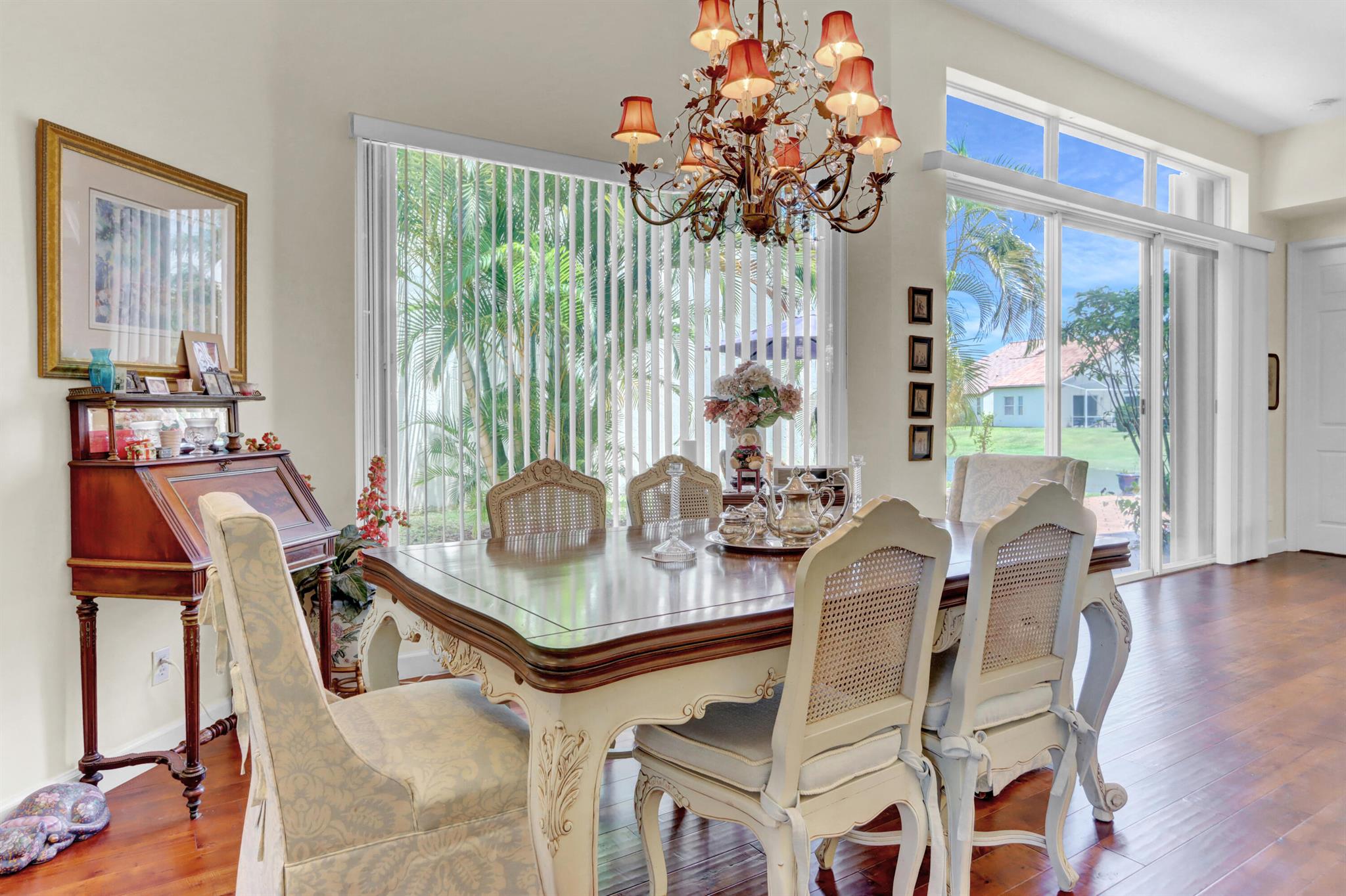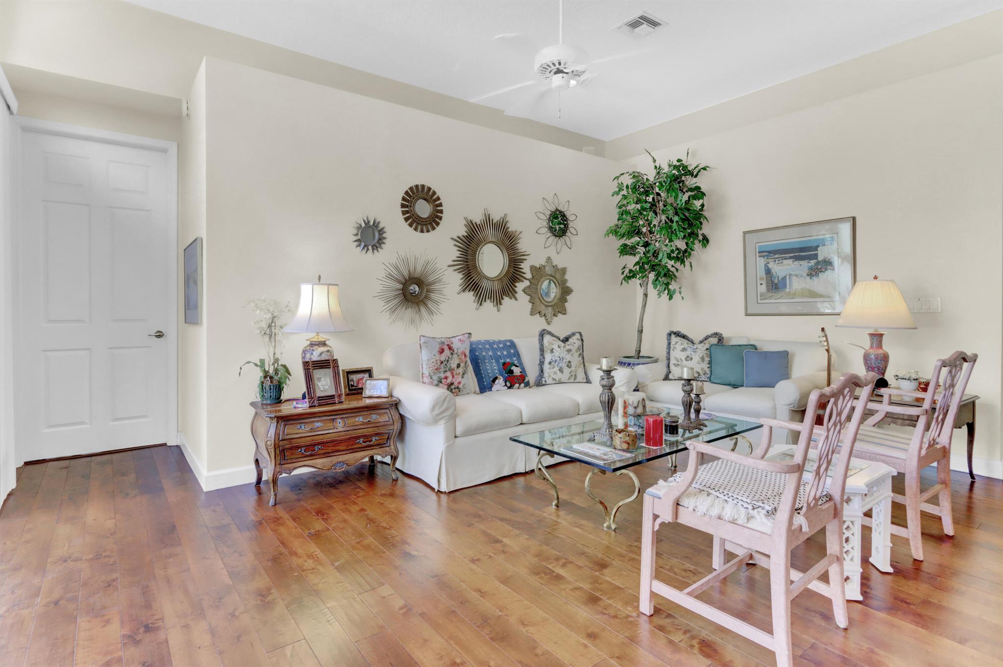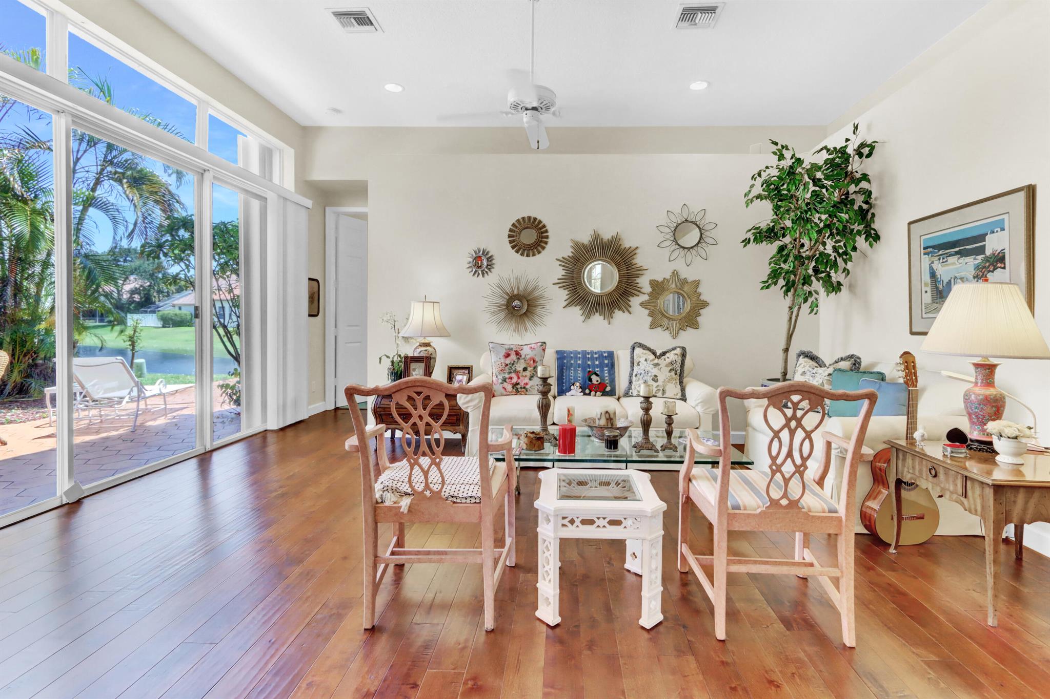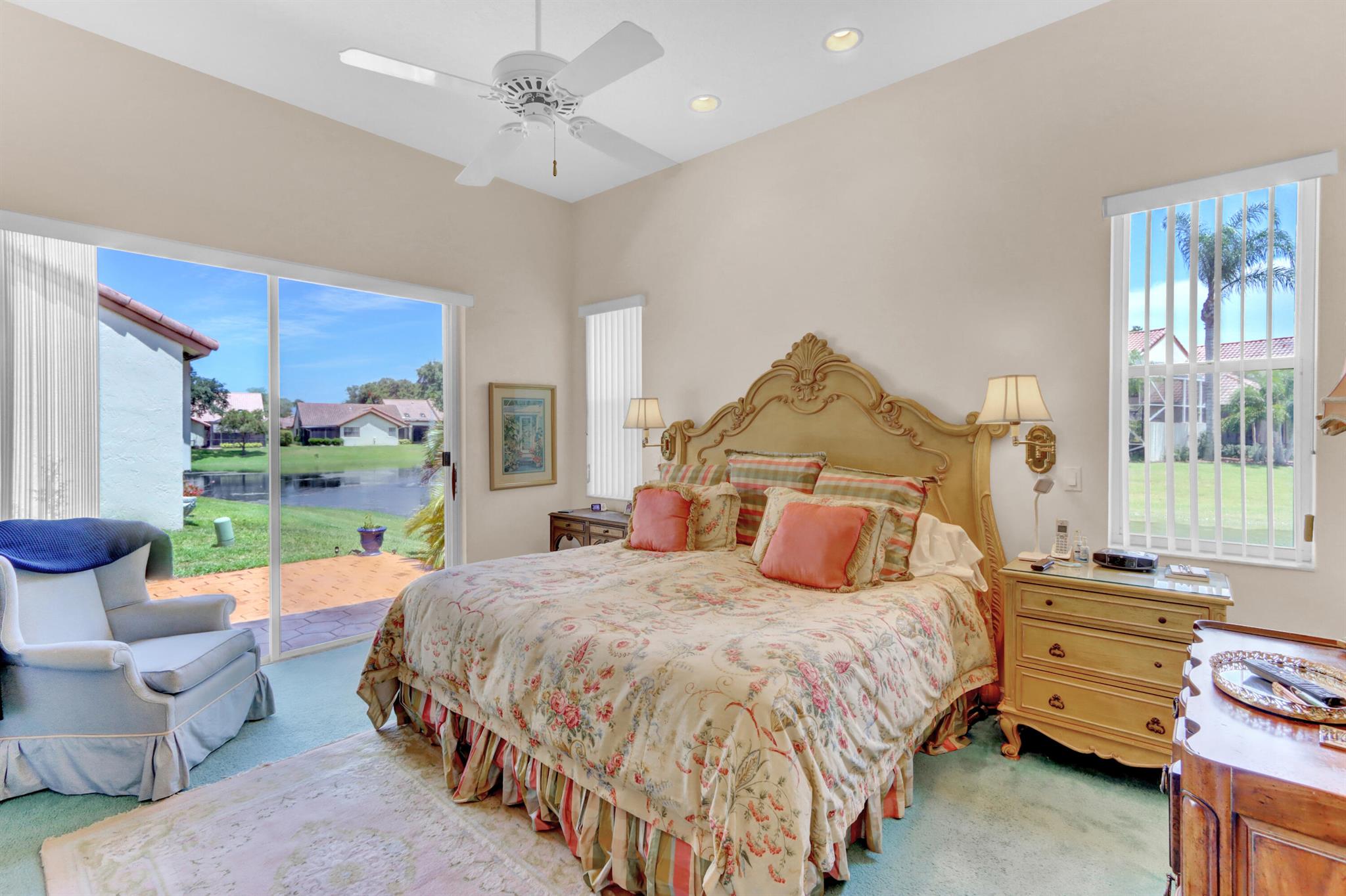 Welcome to your warm and inviting lakefront townhouse! This property features three bedrooms, two baths, and a spacious two-car garage, providing ample space for your needs.Start your day with a beautiful water view right outside your window or unwind on the private water view patio with a glass of wine in hand. The open floor plan boasts laminate floors in the living room, while the separate bedrooms offer privacy and tranquility.The white cabinet kitchen with a breakfast area is both charming and functional, and a laundry room adds convenience to your daily routine. Accordion hurricane shutters ensure your safety and peace of mind.